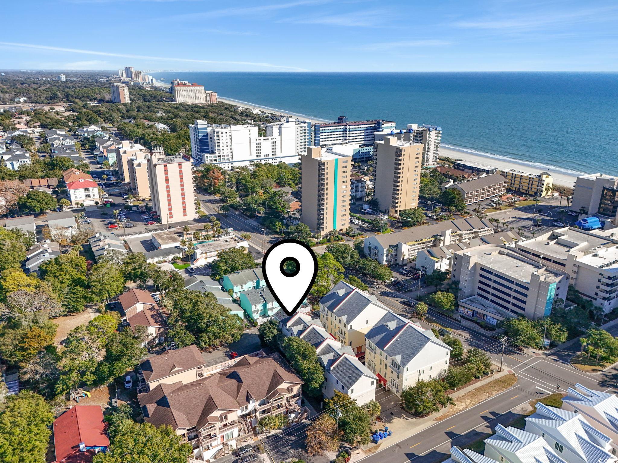 Located just one block from the pristine Golden Mile beach in Myrtle Beach, this spectacular, fully furnished 4-bedroom, 3.5-bath townhome offers the perfect blend of coastal charm and modern convenience. The main floor open-concept living space is brightened by natural light and flows seamlessly into the dining area and gourmet kitchen, which features granite countertops, custom cabinetry, a dual-oven range, and stainless steel appliances. A rare and luxurious amenity, a private interior elevator provides effortless access between all levels. The spacious primary suite, on its own private floor, serves as a tranquil sanctuary with French doors that open to an expansive balcony and a spa-inspired en suite boasting a jetted garden tub and separate walk-in shower. Three additional guest suites with two full bathrooms complete the top floors layout. The ground floor features a spacious entry way and private 2 car garage with extra storage and golf cart parking. This home features a low-maintenance, lock-and-leave lifestyle, and the unbeatable location provides easy access to the oceanfront, world class golfing, dining, boutique shopping, and entertainment, making it an excellent choice for a lucrative investment property, a vacation getaway, or a luxurious primary residence. This is a rare opportunity to own paradise in one of the area's most coveted neighborhoods!