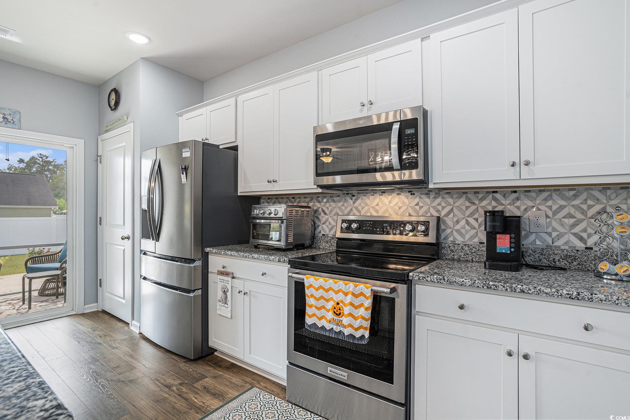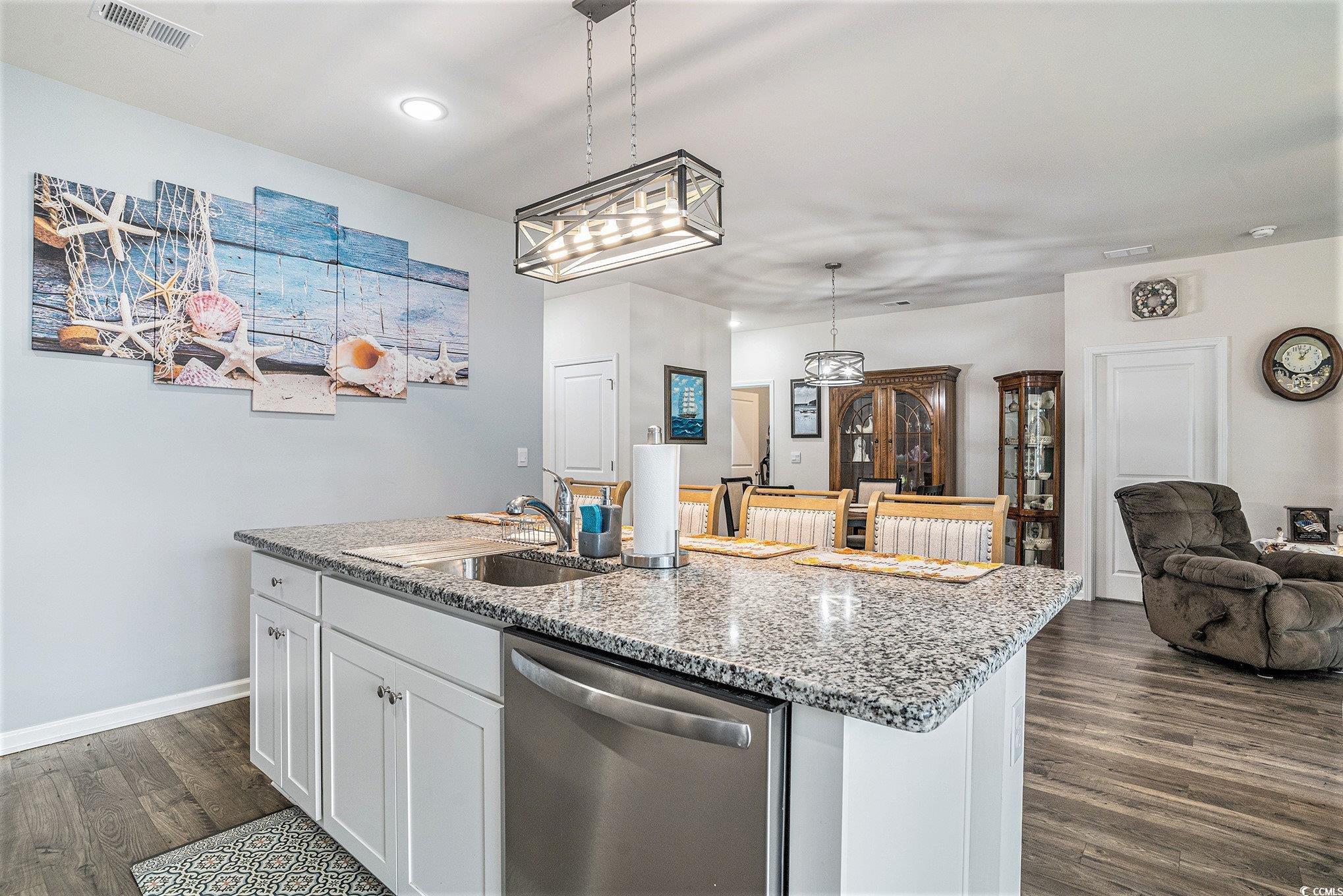 This 3-bedroom, 2-bath home features a spacious open kitchen with granite countertops, a large island with breakfast bar, and a pantry. The master suite includes a walk-in closet, double vanity, and a luxurious tiled shower. LVP flooring runs through the main living areas, with carpet in the bedrooms and tile in the bathrooms and laundry. Enjoy the fenced backyard and relax on the screened porch. Ideal as a primary residence, vacation home, or investment property. Located in the Lochaven neighborhood, this home offers convenient access to historic downtown Conway, local shops, restaurants, schools, and is just a short drive to Myrtle Beach.