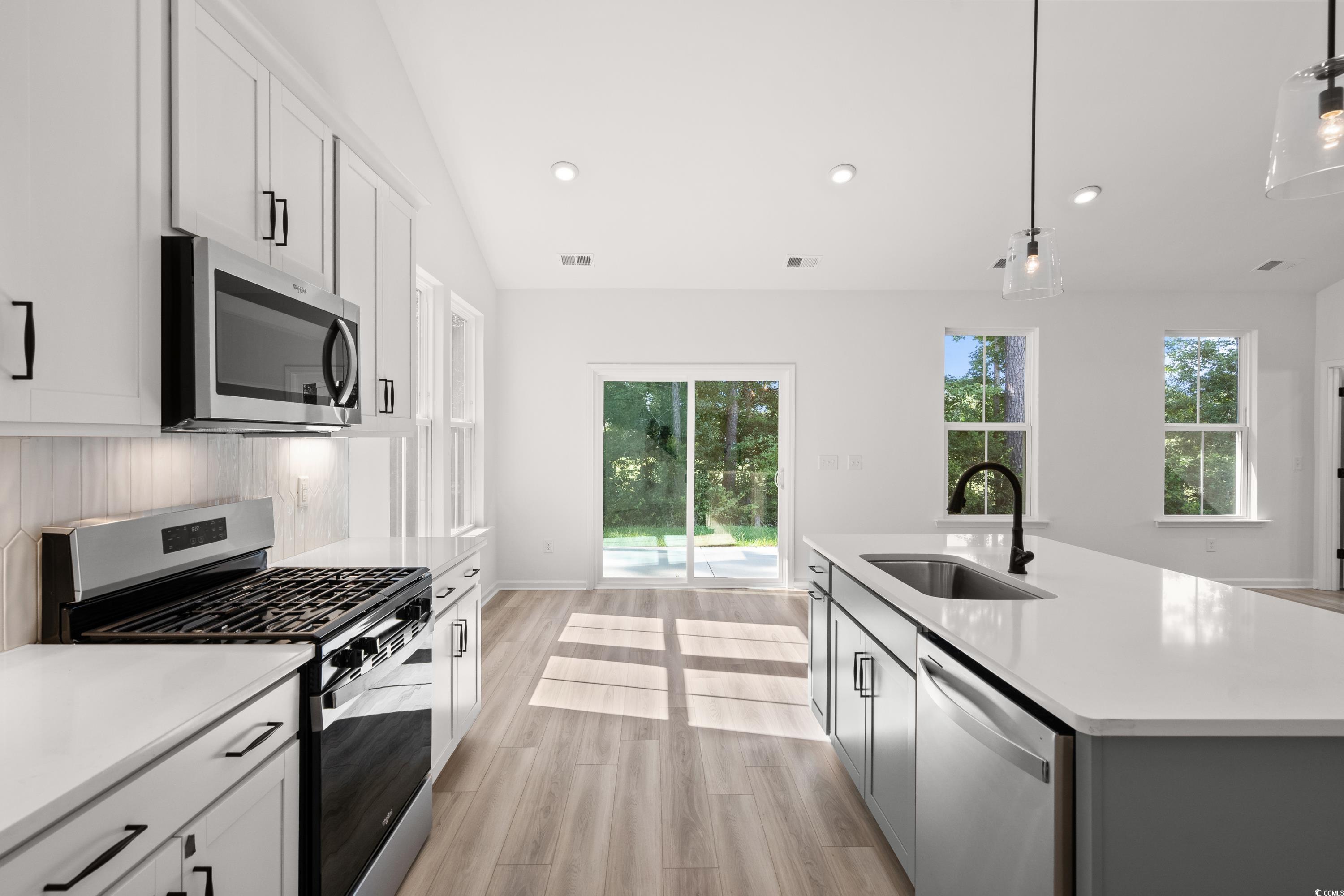 You'll fall in love with this ranch style home that will be ready January 2026! The Easton floorplan features six-foot windows and a vaulted ceiling that bring tons of natural light into this home. Quartz countertops, stainless steel gas appliances, a walk-in pantry, upgraded cabinets, and a generous island are features of the kitchen that overlook a spacious family room. Luxury vinyl plank flooring is featured throughout the whole home! The ensuite primary bathroom features a dual vanity with a fully tiled walk-in shower, private water closet, and large walk-in closet. Out back, enjoy your evenings on the spacious covered porch! Take advantage of this ideal location, just minutes from the best beaches, restaurants, and shopping the Grand Strand has to offer! ***Home is currently under construction and photos are of similar Easton floorplans. Photos are for marketing purposes only. Actual colors and design features may vary.***