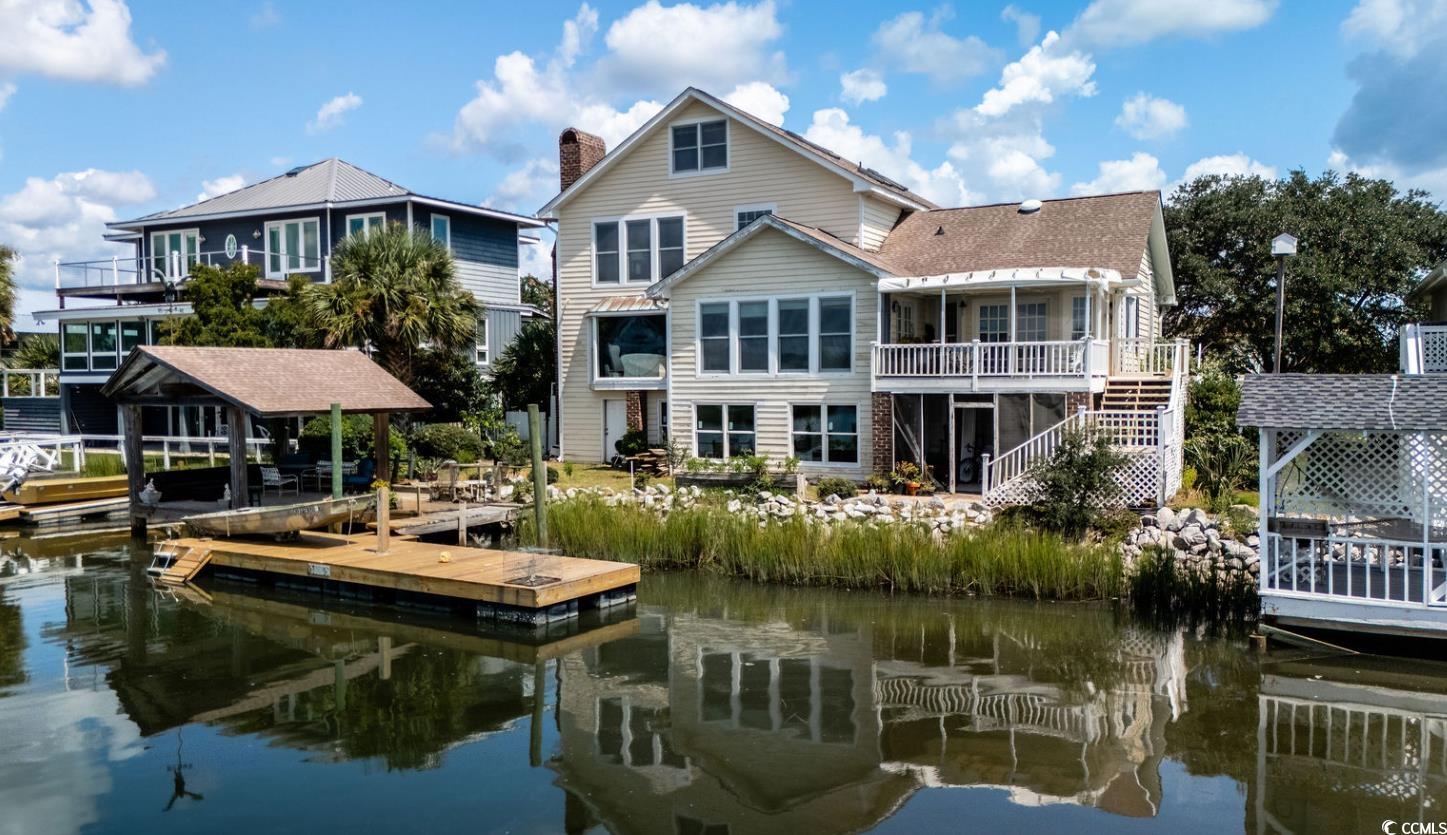 Welcome to 75 Marsh Hen Drive, a truly exceptional creekfront property in the very popular South Litchfield Beach area of Pawleys Island, SC. Here, direct creekfront access is yours 24/7, offering unmatched and unobstructed views of Litchfield Creek, stretching southward towards Pawleys Island and Midway Inlet. Imagine fishing directly from your dock for flounder, redfish, black drum, and trout, or setting out your crab traps for a fresh catch! From your floating dock, jump into your boat and embark on explorations of one of South Carolina's most pristine saltwater estuaries. Enjoy amazing sunrises and sunsets that create special, unforgettable moments. The beach and Atlantic Ocean is just a short walk or golf cart ride away, inviting you to bask in paradise. Conveniently located, you're just a short drive from the Intracoastal Waterway (ICW), diverse shopping, exquisite dining, lively entertainment, essential medical facilities, and charming boutique shops. Major destinations like Charleston, Historic Georgetown, and Myrtle Beach are also easily accessible, making this location ideal for both tranquil retreats and exciting excursions. This large home offers 4 stories, 5 bedrooms, and 4 full bathrooms. Multiple areas of the interior showcase the most amazing views. The house needs some cosmetic repair and updating. The owner is selling the property in "as is" condition. This is your opportunity to enhance this property the way you want and to your heart’s content. The boat dock is partially covered, providing a spacious area out of the sun, and the floating dock gives plenty of room to moor a couple of creek boats. Step out of your home, then a few steps across the backyard and you are on your dock ready to enjoy everything the creek has to offer. Make this property yours and wake up every day feeling like you are on vacation. Nothing could be finer!