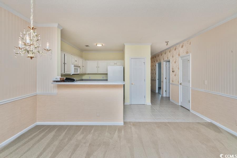 Come see this large 3 bedroom 2 bath condo! Condo is located in the golf community of Colonial Charters. Open concept living room, dining room, and kitchen. LVP installed in 2 of the bedrooms. The HVAC and the water heater were replaced in 2019. Enjoy days and nights on the updated porch to a multi-use room with LVP and windows. Enjoy the large pool right across the parking lot. Short drive to North Myrtle to enjoy restaurants, entertainment, groceries, and THE BEACH!