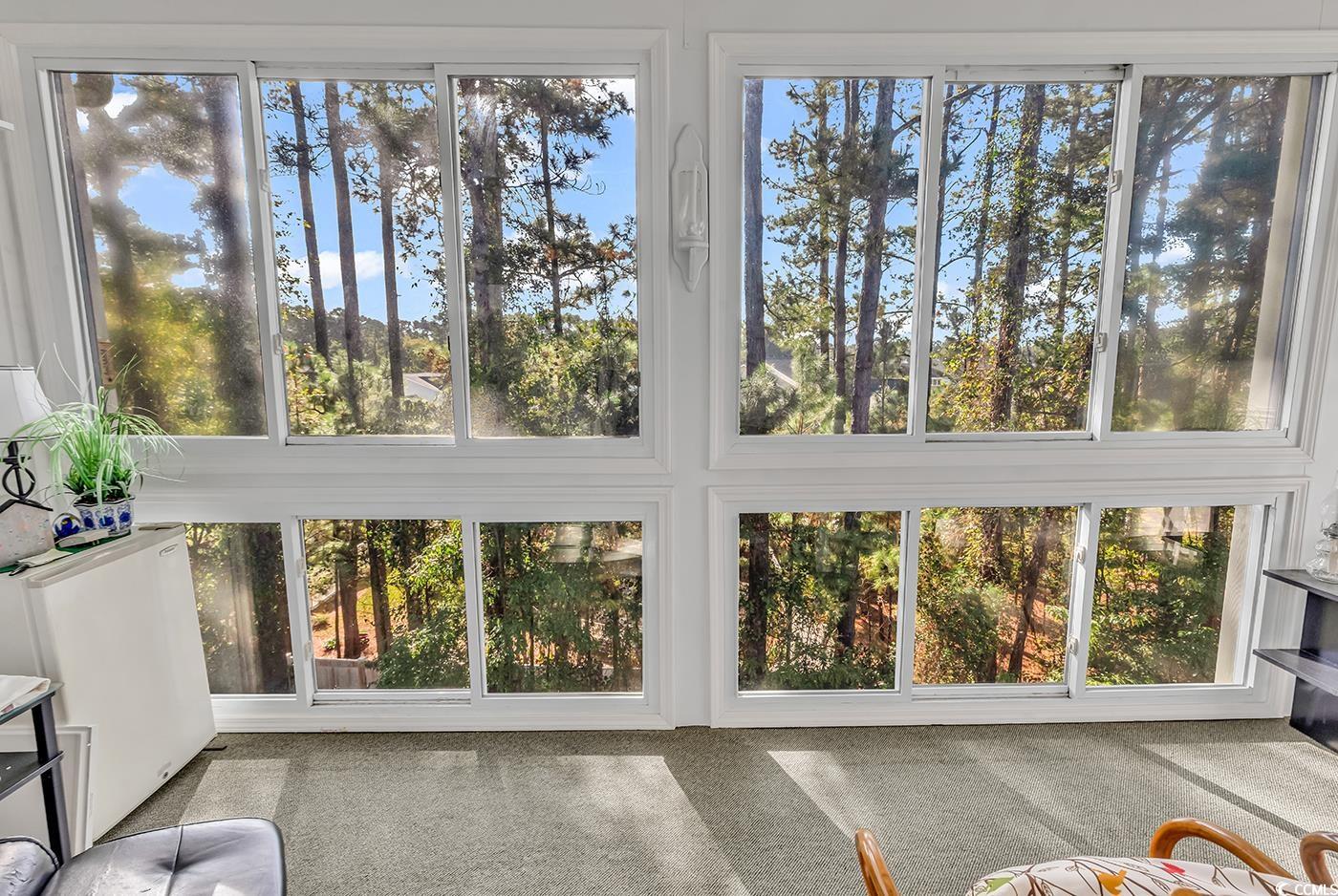Welcome to Colonial Villas II, a peaceful and well-maintained community offering comfort, convenience, and coastal charm. This beautifully FURNISHED 2 bedroom/2 bath condo is move-in ready and perfect for fulltime living, a second home, or great investment property. Located within an elevator-accessible building, this top floor unit features vaulted ceiling and a cozy fireplace in the spacious living room, creating a warm and inviting atmosphere. The open concept layout flows seamlessly into a well-appointed kitchen and dining area, while the enclosed Carolina Room overlooks a serene, wooded area that is ideal for relaxing year around. Both bedrooms offer generous closet space and comfortable accommodations. With tasteful furnishings included and low maintenance living, this is a rare turnkey opportunity in a community that is close to shopping, restaurants, and the beach. Don't miss your chance to own a piece of tranquility at Colonial Villas II!