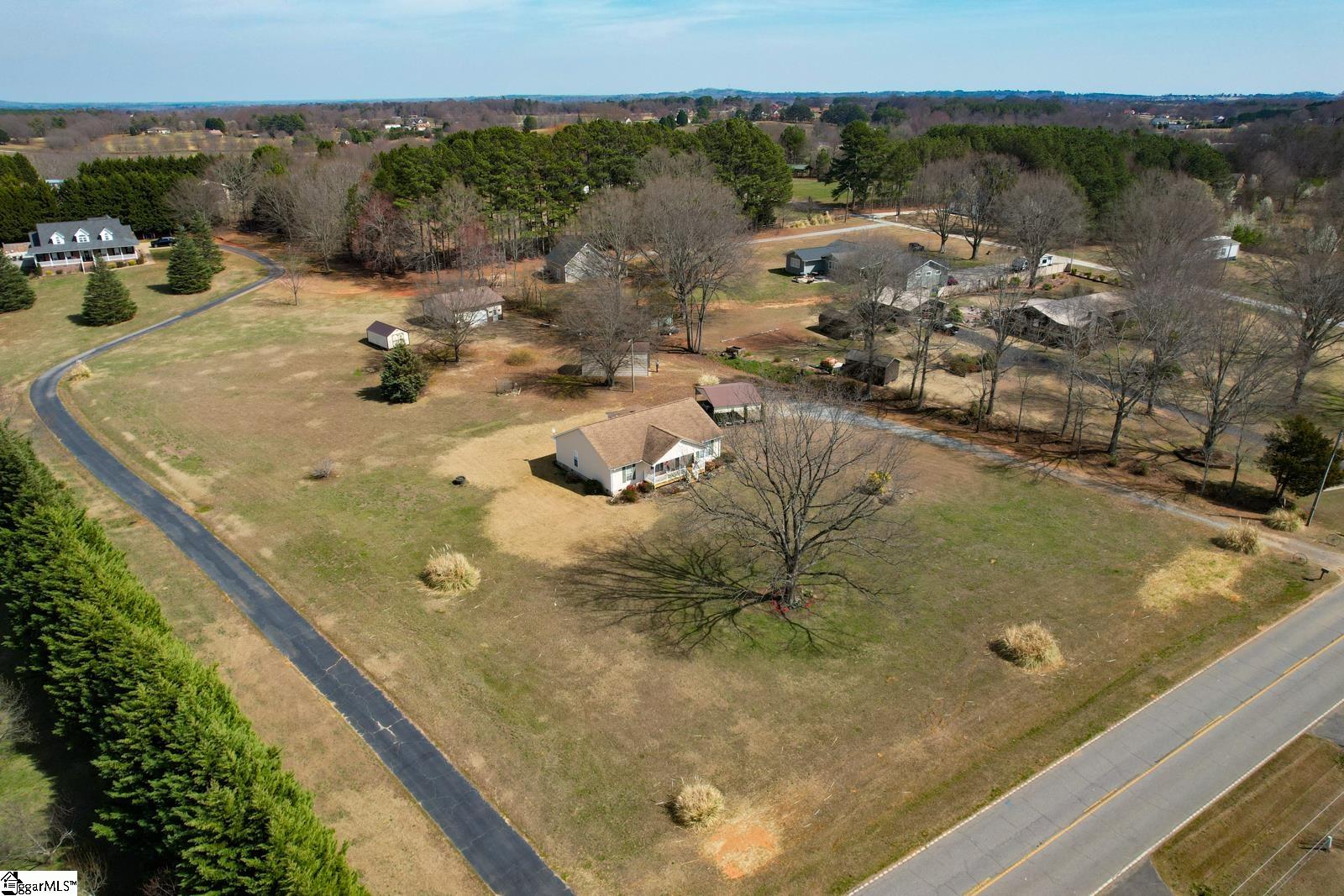 WELCOME HOME to 2.26 Acres in the Dist. 1 school area. This beautiful traditional ranch style home has a ton to offer with 3Br 2 baths, single story home and located on level acreage. Convenient to Greenville and Spartanburg. The large family room is cozy and inviting with the gas log fireplace, and it overlooks the kitchen with beautiful wood cabinets and eat in dining area. All stainless-steel appliances remain with the home. The washer and dryer remain too. There is a perfect place to sit and drink your morning coffee in the sunroom and view the huge back yard. A big walk in laundry room, and the oversized owner's bedroom is some of its great features. If you need a workshop or extra storage, this is the home! 30.6 x 30.6 Workshop with electricity, a large storage shed that is 20.2 x 12.3 to store all your yard tools, and there is a 30 x 12 covered RV parking. Also, a 22 x 20 Double carport is great for covered parking. Come and take a look! You will love the rural location, and all this nice home has to offer its new owners. Room sizes are estimated, if sq feet important buyer to measure.