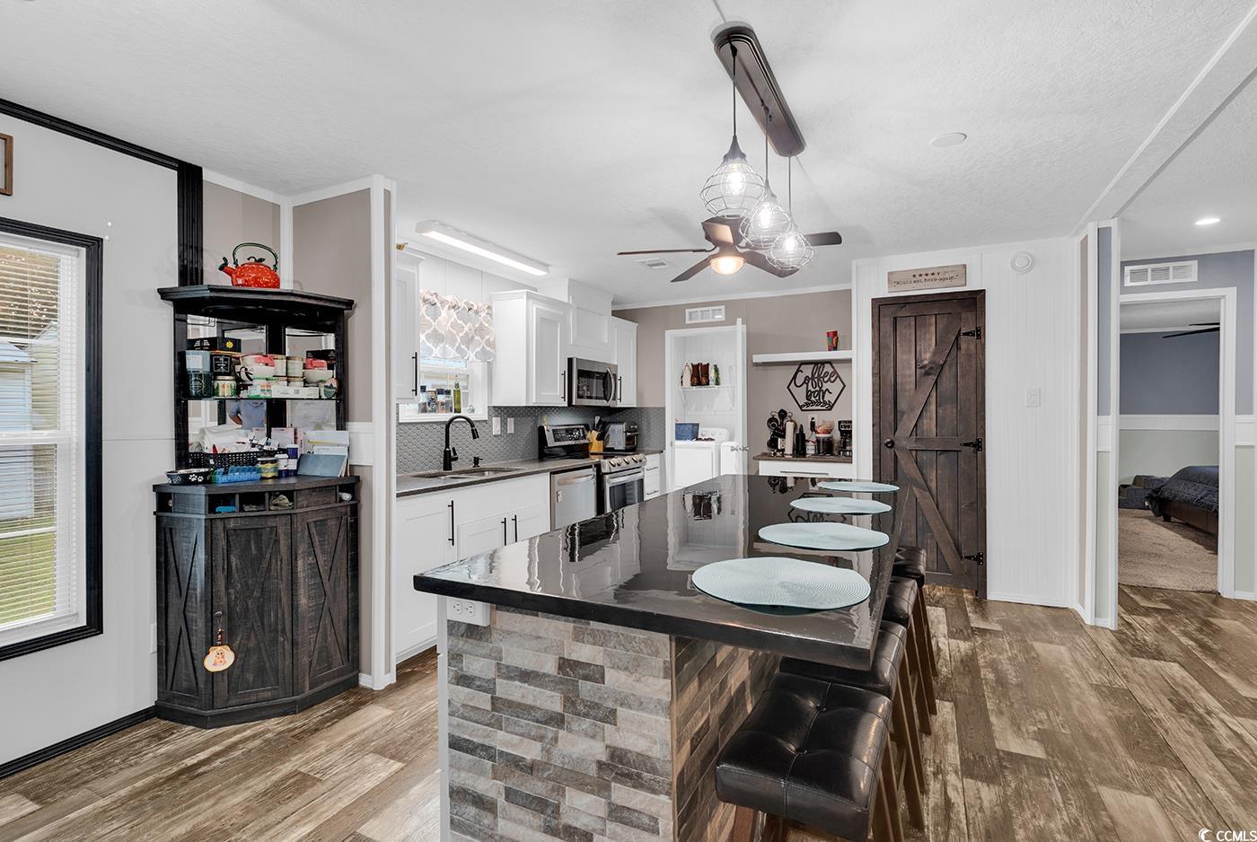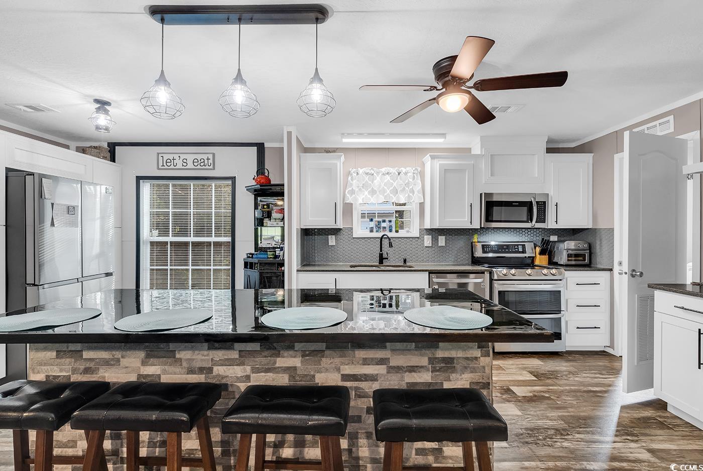 Immaculate 2022 Doublewide on Cul-de-Sac in Old Mill Park. Welcome to this beautifully maintained 3-bedroom, 2-bath home offering approximately 1,456 square feet of comfortable living space—perfectly situated at the end of a quiet cul-de-sac in the desirable Old Mill Park community. Step inside to a light and inviting open floor plan, highlighted by a stunning kitchen complete with stainless steel appliances, a double oven, a large breakfast bar/work island, and a spacious pantry. The kitchen flows seamlessly into a generously sized living room featuring a cozy fireplace and plenty of room to entertain family and friends. The split-bedroom layout offers privacy and functionality. The spacious primary suite includes a walk-in closet and a luxurious ensuite bath with double sinks, a large shower, and a relaxing garden tub. Two additional bedrooms provide ample space for family, guests, or even a home office, and are serviced by an additional full bath. Outside, enjoy the serene cul-de-sac setting with ample parking and peaceful surroundings—ideal for those seeking a quiet retreat just a short drive from everything the Grand Strand has to offer. You're minutes from Myrtle Beach’s pristine beaches, top-rated golf courses, shopping, dining, and more. If you’re looking for a move-in ready home that has been lovingly cared for and packed with upgrades, this is it!