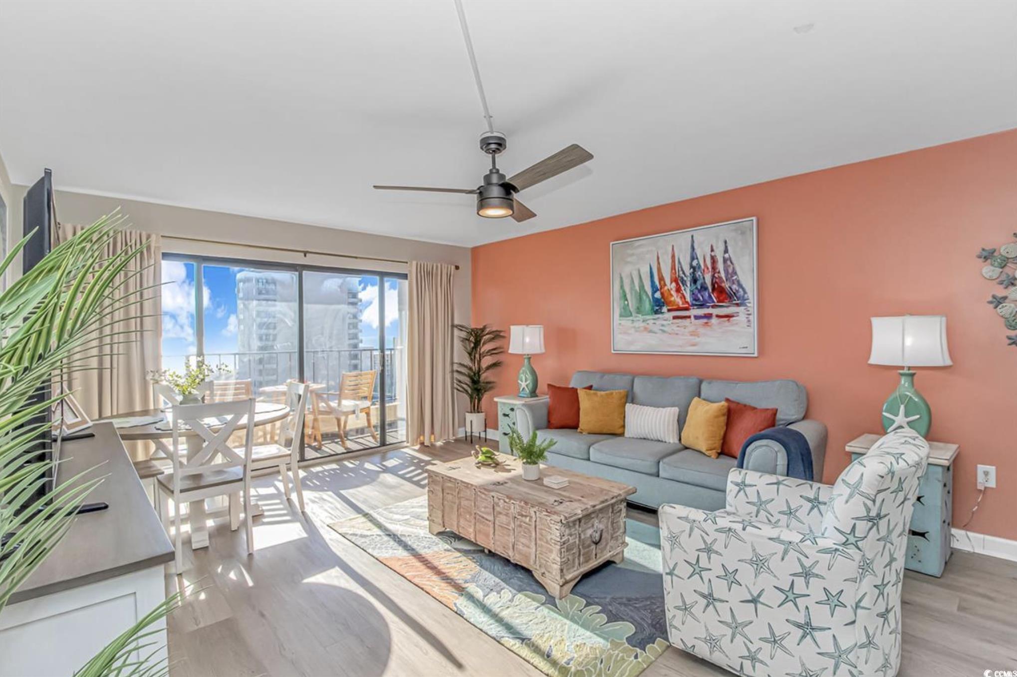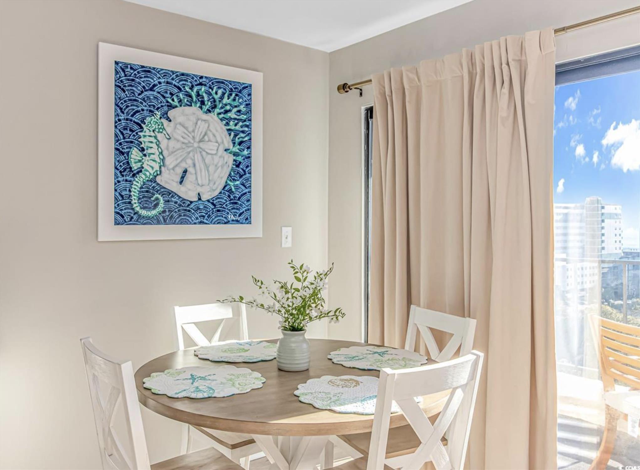 Presenting this stunning, fully renovated 1-bedroom, 1.5-bath ocean-view condo located on the 9th floor of the highly sought-after Ocean Villas Resort complex. Only a quick 3-minute stroll to get your feet in the sandy white beach. This delightful condo is a turnkey unit that features stylish decor & furnishings, upgrades include brand-new luxury vinyl plank flooring, lighting and ceiling fans along with fresh window treatments, a bright living room offers a comfortable sleeper sofa, a flat-screen TV, and showcases sliding-glass doors that open directly onto your private balcony with sweeping views of the sparkling Atlantic Ocean. The modern kitchen boasts granite counters, a stylish custom backsplash, elegant gold-accented cabinetry, and stainless-steel appliances. Discover a spacious private bedroom with its own en-suite full bath and wall-mounted flat-screen TV. This peaceful condo is ready for immediate occupancy or rental income and unlike a condotel, this property qualifies for traditional financing, and the low monthly HOA fees include water, sewer, cable, internet, and trash—leaving just electricity as the owner’s responsibility. For added enjoyment and security, the resort has recently installed beautiful new pavers around the pool deck and placed security cameras on every floor. Priced to sell and truly move-in ready—this is coastal living at its finest!