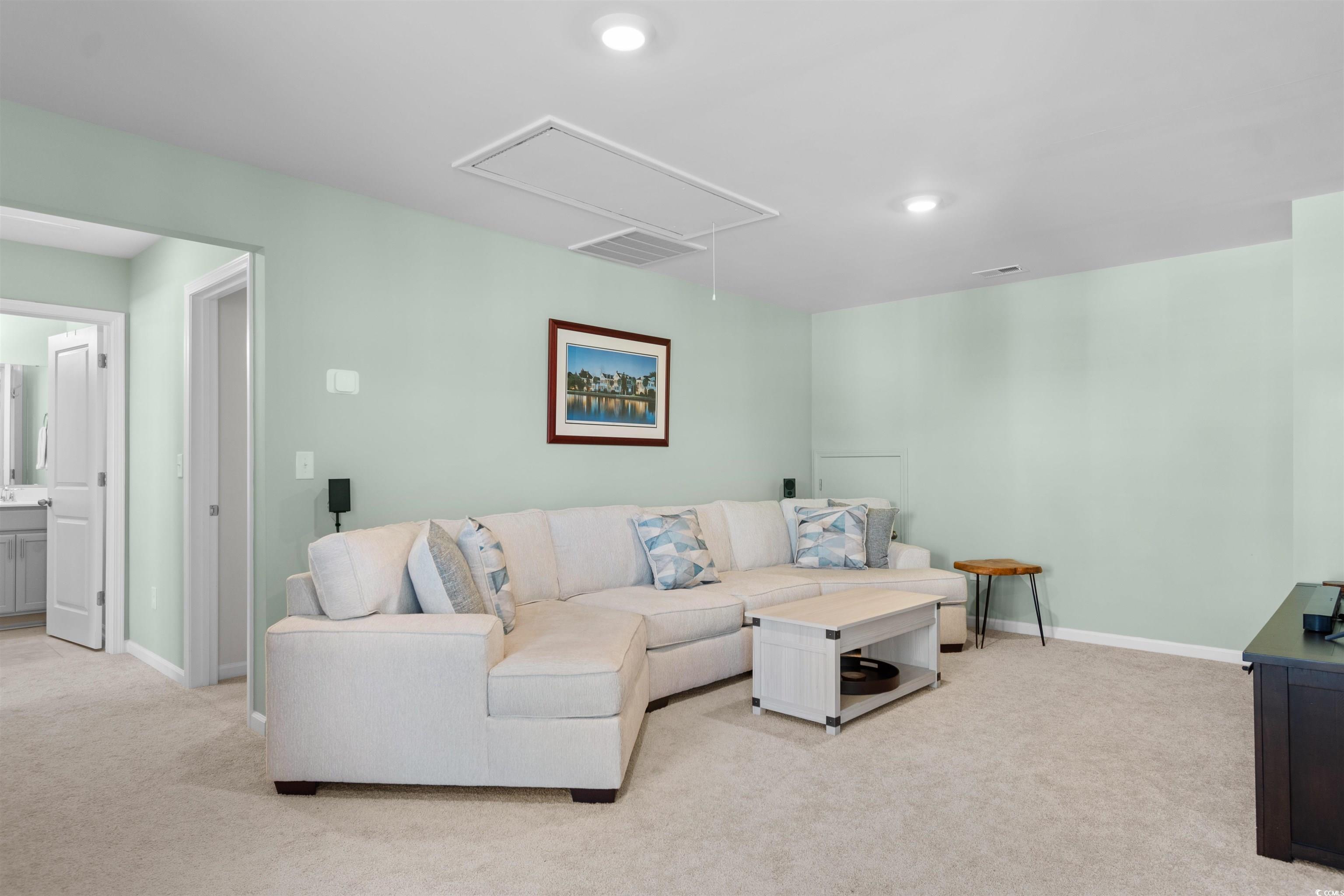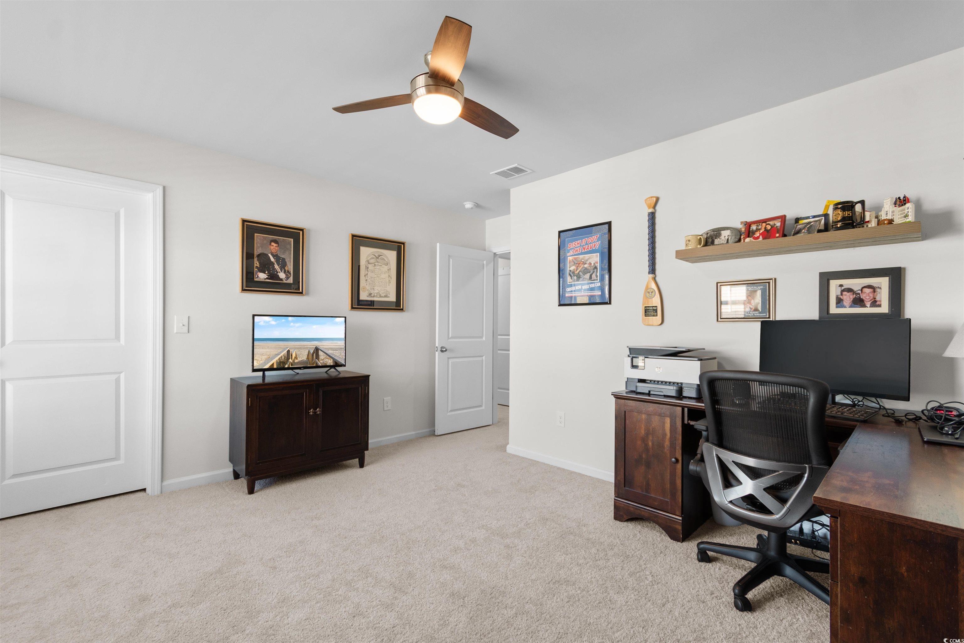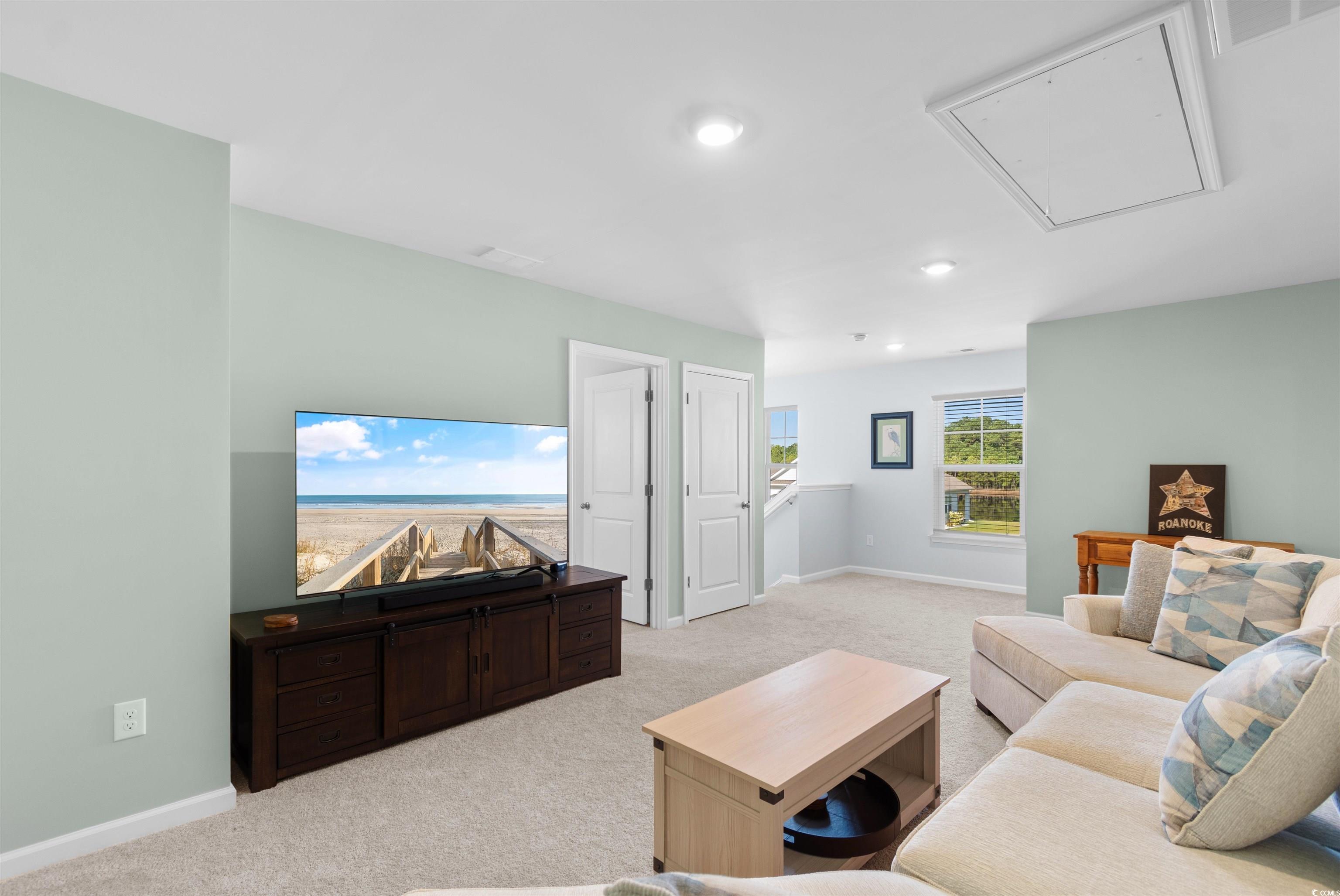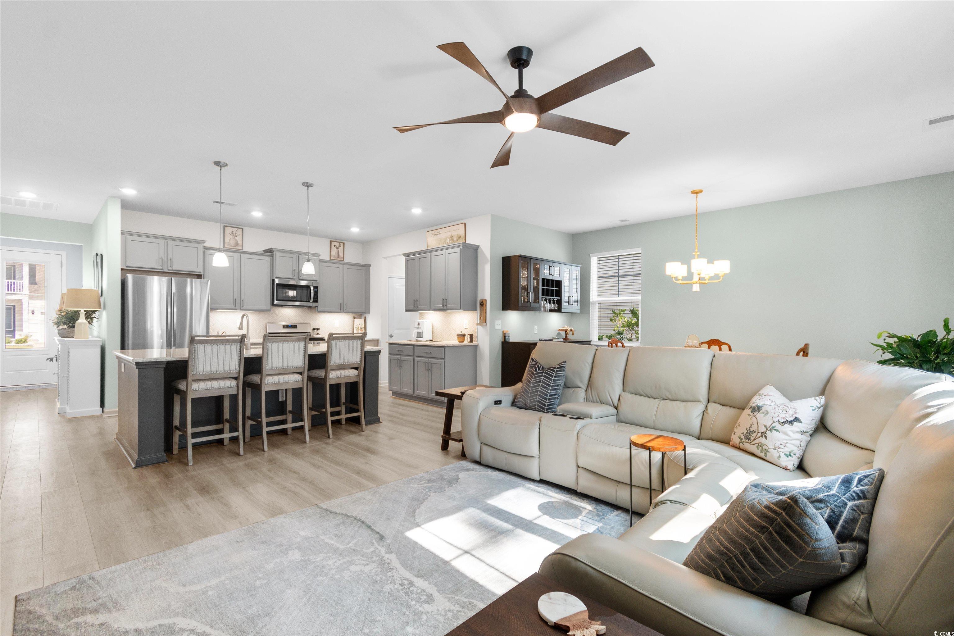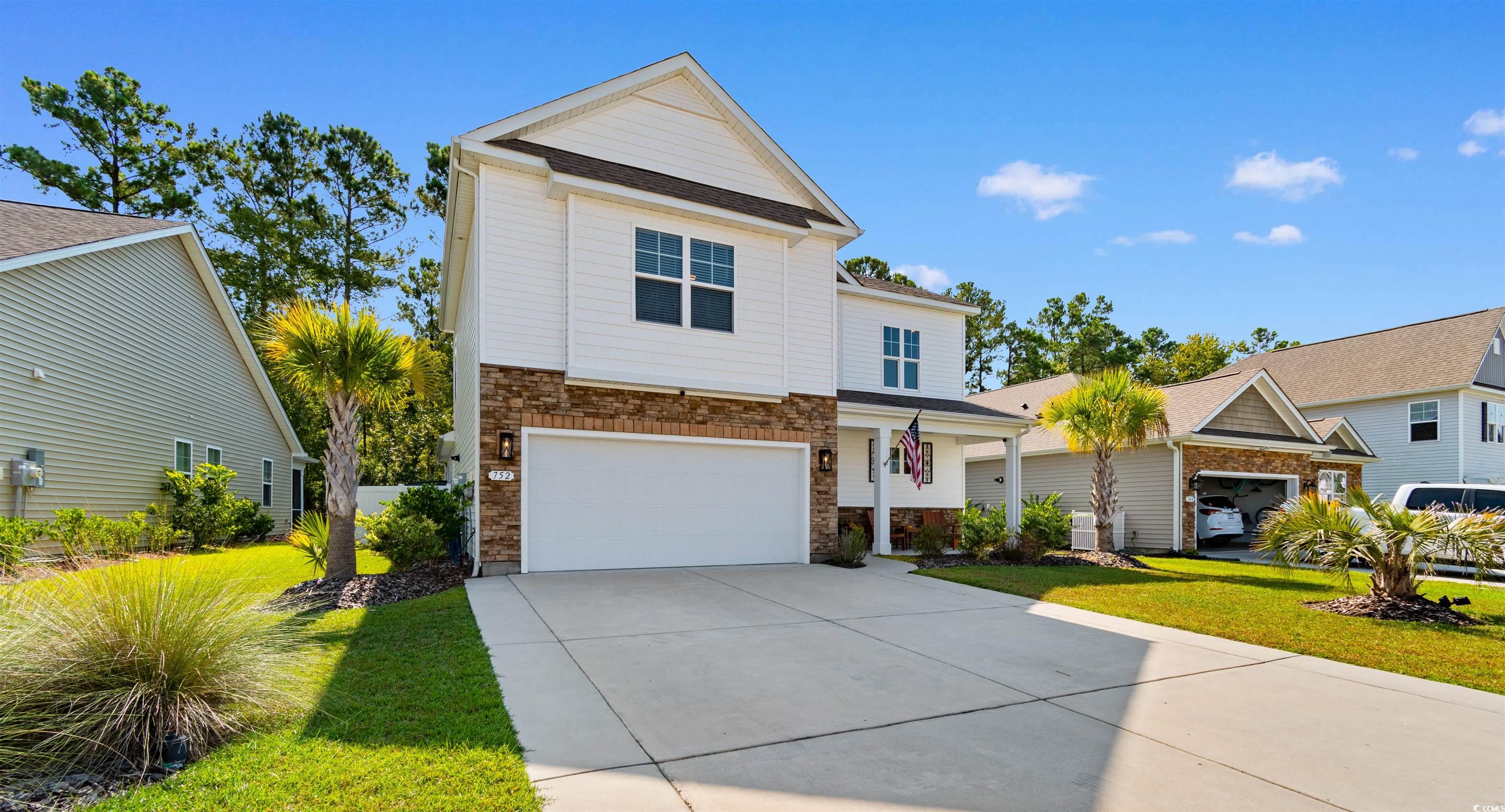 Move-in ready and furnished! Welcome to this beautifully designed two-story Belfort model home, nestled in the serene community of Hidden Brooke—known for its expansive green spaces, peaceful lakes, and inviting atmosphere. With its spacious layout and upscale finishes, this home offers comfort, convenience, and elegance throughout. Step on to the charming front porch where you'll enjoy tranquil lake and sunset views; perfect for greeting guests or relaxing at the end of the day. Inside, the main level is thoughtfully designed for everyday living and entertaining. As you enter the home, step into the welcoming foyer with a walk-in and under the stair closet, and stylish half bath. Your beautifully designed primary suite is a true retreat, featuring a sitting area, large walk-in closet with custom built-in, and a spa-like ensuite bath complete with a double vanity, glass-enclosed walk-in shower, and generous linen closet. The open-concept kitchen, dining, and living area seamlessly flows out to the screened-in porch with privacy blinds, and an extended patio complete with a large gas grill and built-in gas hookup—ideal for outdoor gatherings. The kitchen is a dream with a large work island, five burner gas stove, stainless steel appliances, beautiful quartz counters, tiled back splashes, plenty of cabinetry and large pantry. Conveniently located just off the kitchen is a drop zone leading to the garage and laundry room with more cabinetry. Upstairs, the home continues to impress with three additional spacious bedrooms, a full bath, and a large loft area that’s perfect for a second living space, office, or playroom and lots more storage! It’s all the little things that make this home special, updated lighting, ceiling fans, window treatments and blinds, fenced private back yard, irrigation system, whole house water filtration system with reverse osmosis at the kitchen sink, on-trend and soothing paint colors, stylish and comfortable furniture and all those storage spaces! Hidden Brooke offers beautiful amenity center with luxury pool, pool house with cabana, work-out room, fire pit and dock for fishing! The Hidden Brooke community is conveniently located to shopping, medical care, dining and just 4.9 miles to the beautiful beaches of North Myrtle Beach. It is conveniently located, within minutes of the commuter route – Highway 31. Why wait to build when you can move in now to this lovely home that already has everything! Very low rate assumable VA mortgage to qualified applicants.