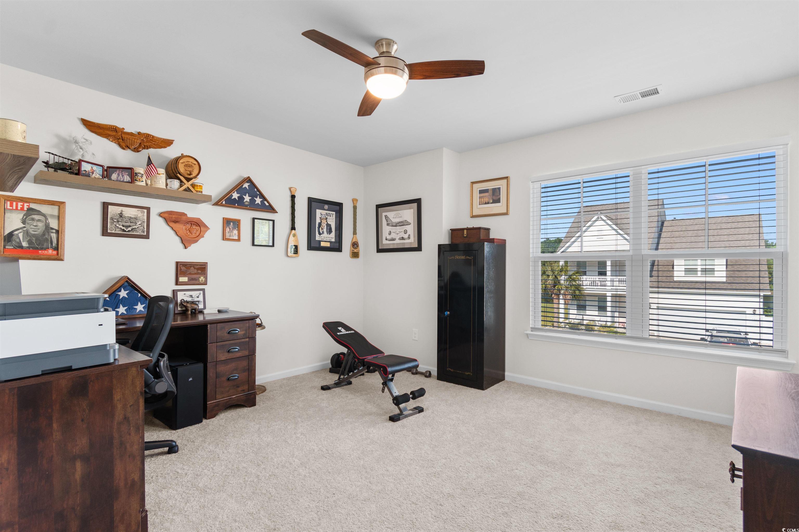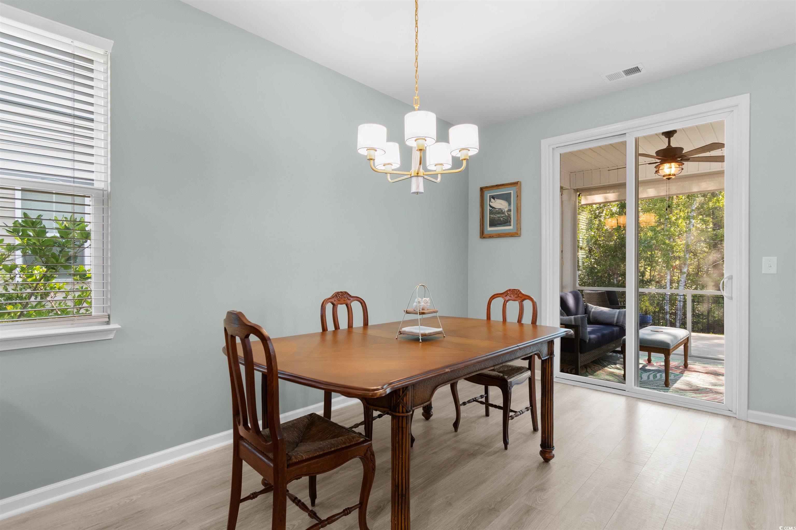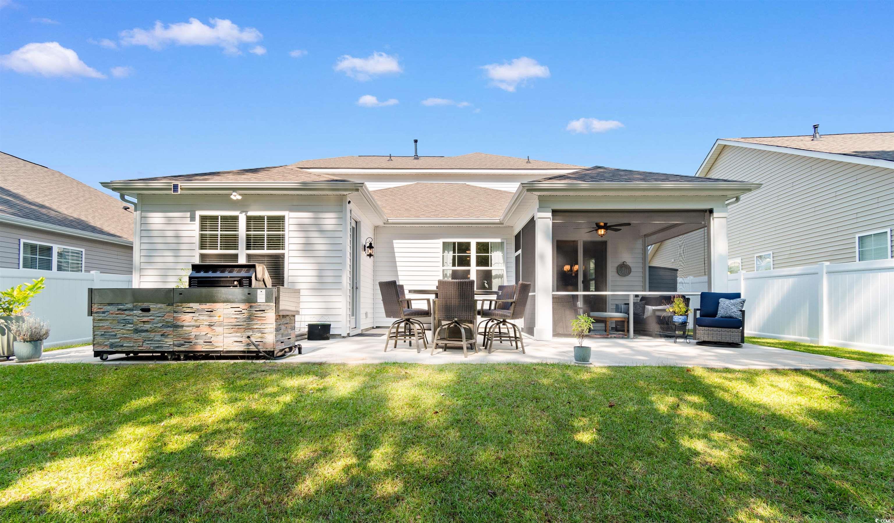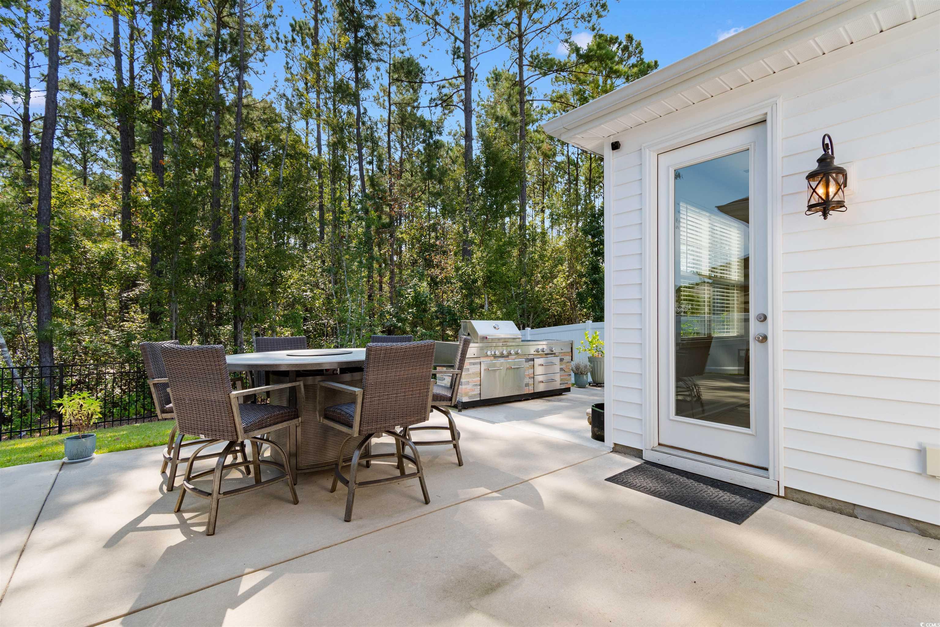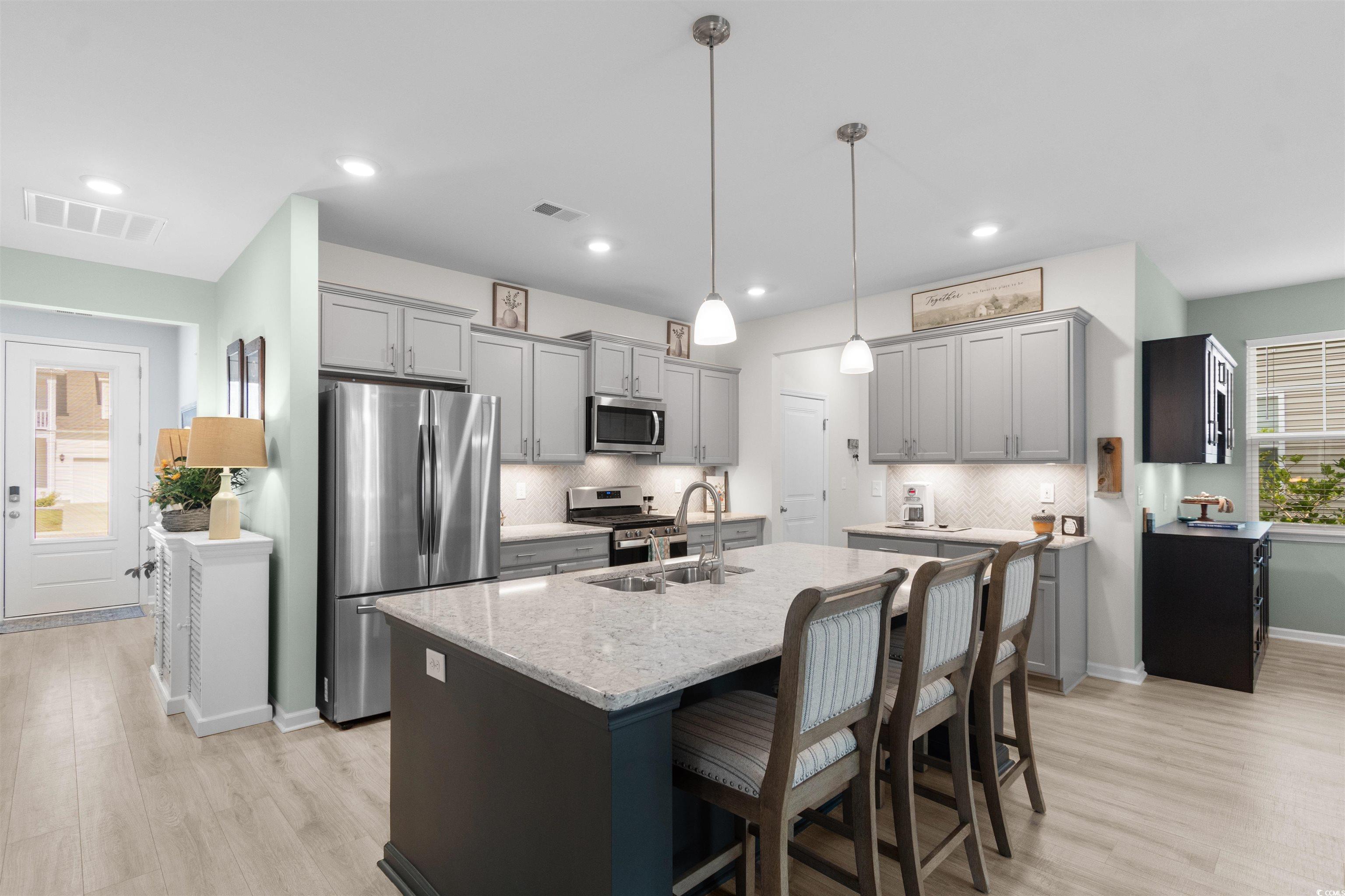 Move-in ready and furnished! Welcome to this beautifully designed two-story Belfort model home, nestled in the serene community of Hidden Brooke—known for its expansive green spaces, peaceful lakes, and inviting atmosphere. With its spacious layout and upscale finishes, this home offers comfort, convenience, and elegance throughout. Step on to the charming front porch where you'll enjoy tranquil lake and sunset views; perfect for greeting guests or relaxing at the end of the day. Inside, the main level is thoughtfully designed for everyday living and entertaining. As you enter the home, step into the welcoming foyer with a walk-in and under the stair closet, and stylish half bath. Your beautifully designed primary suite is a true retreat, featuring a sitting area, large walk-in closet with custom built-in, and a spa-like ensuite bath complete with a double vanity, glass-enclosed walk-in shower, and generous linen closet. The open-concept kitchen, dining, and living area seamlessly flows out to the screened-in porch with privacy blinds, and an extended patio complete with a large gas grill and built-in gas hookup—ideal for outdoor gatherings. The kitchen is a dream with a large work island, five burner gas stove, stainless steel appliances, beautiful quartz counters, tiled back splashes, plenty of cabinetry and large pantry. Conveniently located just off the kitchen is a drop zone leading to the garage and laundry room with more cabinetry. Upstairs, the home continues to impress with three additional spacious bedrooms, a full bath, and a large loft area that’s perfect for a second living space, office, or playroom and lots more storage! It’s all the little things that make this home special, updated lighting, ceiling fans, window treatments and blinds, fenced private back yard, irrigation system, whole house water filtration system with reverse osmosis at the kitchen sink, on-trend and soothing paint colors, stylish and comfortable furniture and all those storage spaces! Hidden Brooke offers beautiful amenity center with luxury pool, pool house with cabana, work-out room, fire pit and dock for fishing! The Hidden Brooke community is conveniently located to shopping, medical care, dining and just 4.9 miles to the beautiful beaches of North Myrtle Beach. It is conveniently located, within minutes of the commuter route – Highway 31. Why wait to build when you can move in now to this lovely home that already has everything! Very low rate assumable VA mortgage to qualified applicants.
