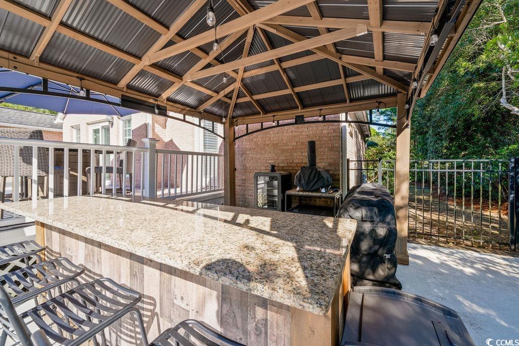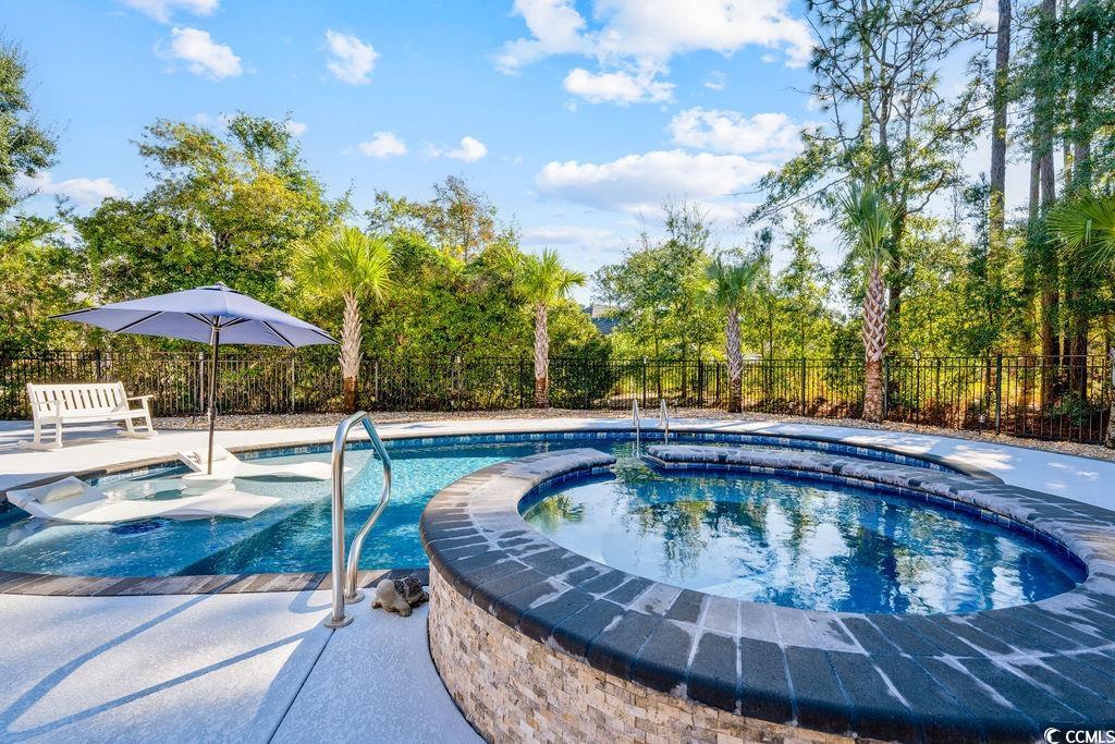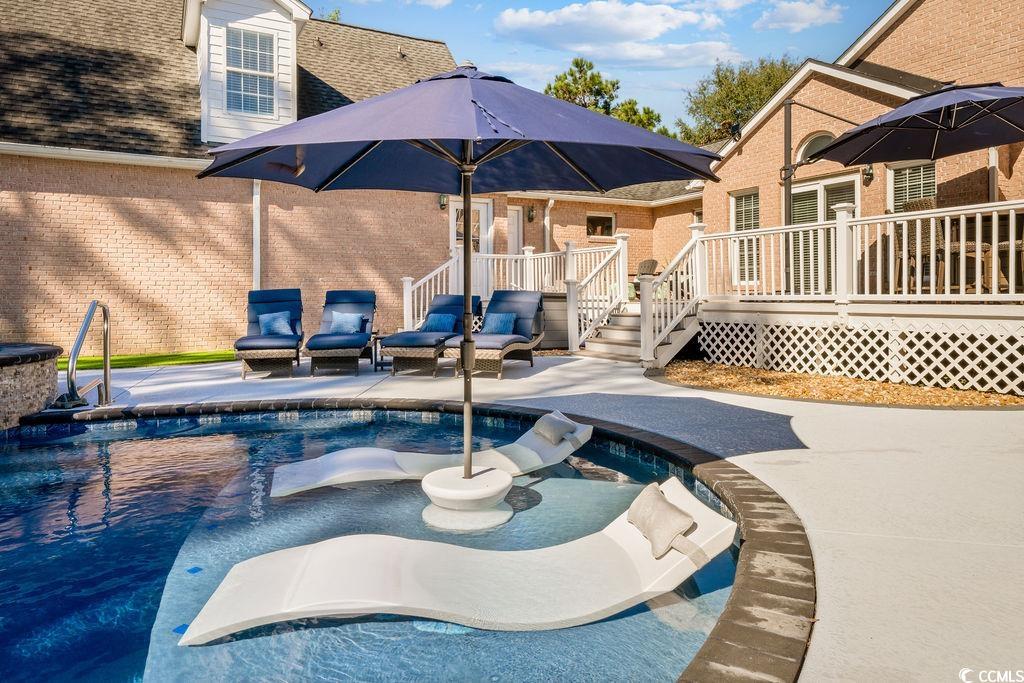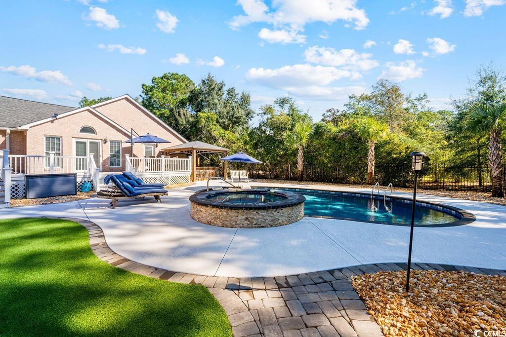 Beautiful newly renovated brick home boasts private setting within the gated community of Pawleys Plantation. All common areas, master, 2 additional bedrooms and 2.5 baths are located on the main floor. Fourth bedroom and a third full bath are located upstairs. New LVP flooring throughout main living areas. Updated kitchen with all new stainless steel appliances, island with pendant lighting, quartz counter tops and tiled back splash. Great room offers vaulted ceiling, gas fireplace and wine room. Spacious master en suite with walk in closet and large renovated bath with double vanities and huge walk in tiled shower. New driveway leads to side loading garage. Paver walkway to new front porch. Frog has new carpeting. The backyard is an absolute oasis complete with in ground pool, hot tub, and putting green. New trex deck and gazebo with bar, perfect for entertaining. Cul-de-sac location with large beautifully landscaped lot provides peace and privacy. Low HOA fee. The long-established community of Pawleys Plantation is settled along the scenic salt marsh inlet of Pawleys Island and boasts lush tree-lined streets and and an award winning Jack Nicklaus golf course. Easy drive to the beaches as well as to the Waccamaw River boat launches, Brookgreen Gardens and Huntington Beach State Park.