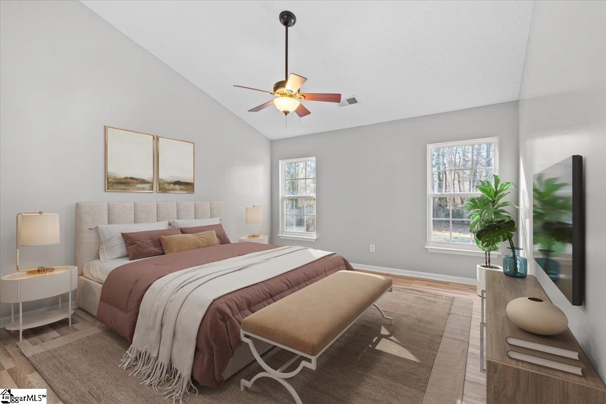 Welcome home to this beautifully updated 3 bedroom, 2 bath home with a spacious flex room and tons of upgrades throughout! Situated on over half an acre between Greenville and Spartanburg, this home offers both convenience and space. Just minutes from I-85, BMW, and Michelin, and located in highly sought-after District 5. From the moment you arrive, you’ll appreciate the great curb appeal and welcoming feel. Inside, the open floor plan features all bedrooms on the main level. As you enter, you’ll notice the luxury vinyl flooring that flows throughout the main living areas. The dining room sits to the left, complete with large windows, wainscoting, and crown molding, creating a great space for gatherings. The dining area looks into the living room with vaulted ceilings, luxury vinyl plank flooring, and a cozy gas fireplace. The kitchen is beautifully updated with granite countertops, a farmhouse sink, updated hardware, and a bar area that overlooks the living room, perfect for entertaining. The breakfast area just off the kitchen features sliding doors leading to the patio and fenced in backyard. The spacious primary suite includes a full bath with double sinks, ceramic tile flooring, a separate tub, and a stunning ceramic tile shower, along with a walk-in closet. The secondary bedrooms are generously sized with a full bath conveniently located between them. Just outside the primary bedroom and upstairs, you’ll find a large flex room, ideal for a home office, playroom, media room, or guest space. A walk-in laundry room is conveniently located off the kitchen in the hallway leading to the primary suite. Upgrades include new flooring throughout, fresh paint throughout, new light fixtures, updated hardware, new ceramic tile shower in master, farm style kitchen sink, granite countertops in the kitchen and new garage door. This move-in-ready home offers style, space, and an unbeatable location — schedule your showing today!