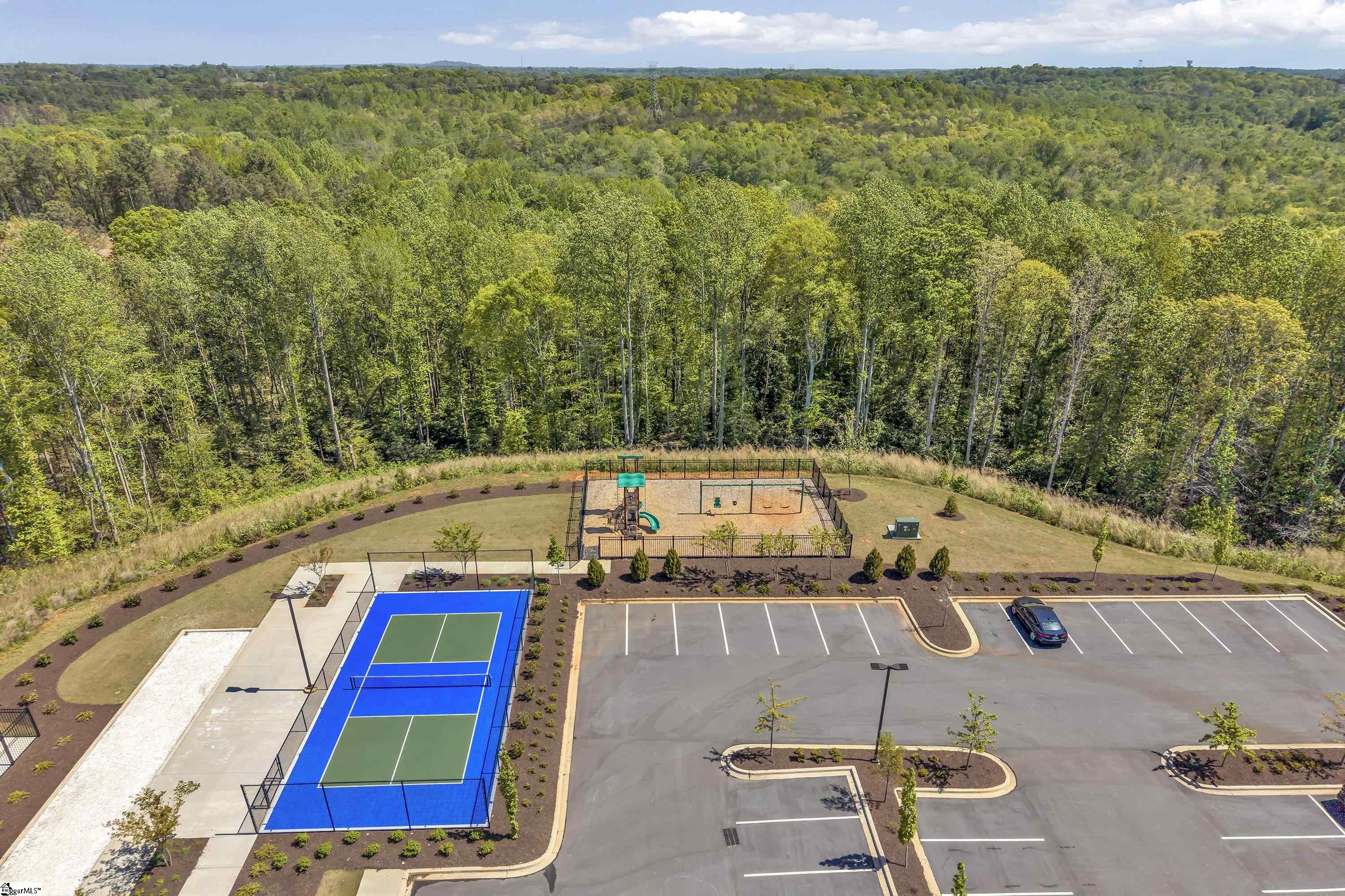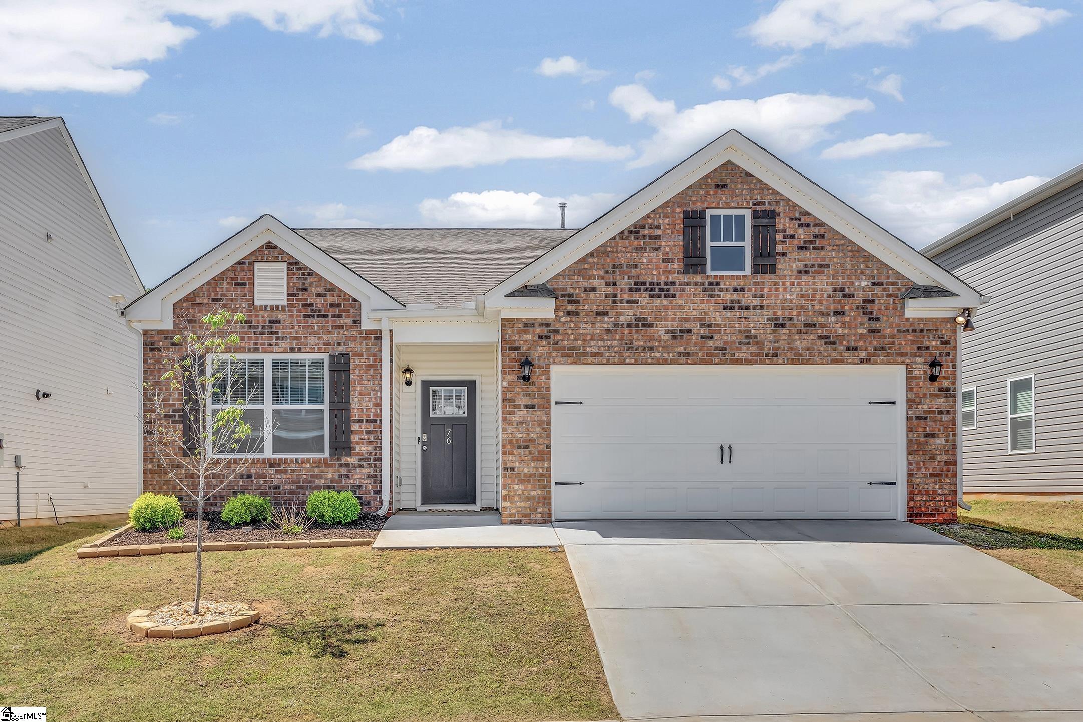 Why wait months? Your new home is ready when you are! And it gives you something you can't build later-privacy. This home backs to mature trees and Moon Pond, creating a private, peaceful setting that truly sets it apart. Inside, you'll find a thoughtfully designed single-level layout with 3 bedrooms and 2 bathrooms, centered around an open living space that feels both comfortable and connected. The living room fireplace adds warmth and character, while the kitchen, complete with granite countertops and a gas range, flows easily into the main gathering areas. Just beyond, the back patio provides a quiet place to unwind overlooking the trees and pond. Built in 2023 and barely lived in, it lives like new without the construction timeline. The community itself elevates the experience, with resort-style amenities including two pools, pickleball courts, bocce, a playground, pavilion, and scenic walking trails. Surrounded by natural beauty with views of the Blue Ridge Mountains and Paris Mountain, the setting is as appealing as it is convenient. Ideally positioned just minutes from Downtown Greer, GSP International Airport, and a short drive to Greenville and Spartanburg, this location makes both daily life and travel effortless. The best of new construction living-without the timeline, and with a setting you can't recreate.