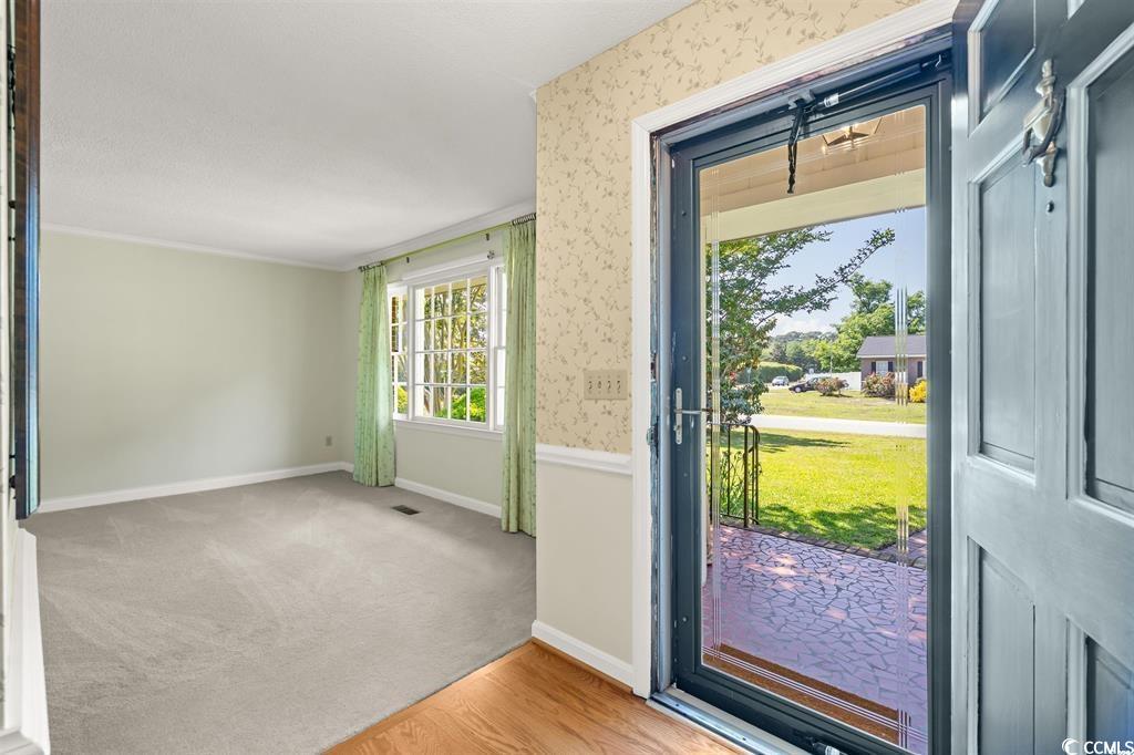 Northwood is an established neighborhood, and this 3-bedroom 2 2-bath Brick Ranch style home is only a short few blocks to the Beach but not in a flood zone. With a large corner lot, .33 of an acre, you'll have plenty of yard to add on to the home, have a garden, plenty of space for a cookout area, and much more! There is a 2-car garage with enclosed storage and a laundry room. Enjoy the Carolina Room with casement windows. The home has real hardwood floors throughout, tiled bathrooms, and carpet in the bedrooms. The yard has a two-zone irrigation system on a well; the motor was replaced in 2020. The HVAC system was replaced in 2019, and the roof was replaced in 2018. This location is close to 2 shopping centers with grocery stores, restaurants, a health food store, Walgreens, and much more. The medical offices and hospital are a few blocks away and only 20 minutes to the airport! Some photos in this post are virtual staging photos showing an idea of what the room could look like with furniture in it.