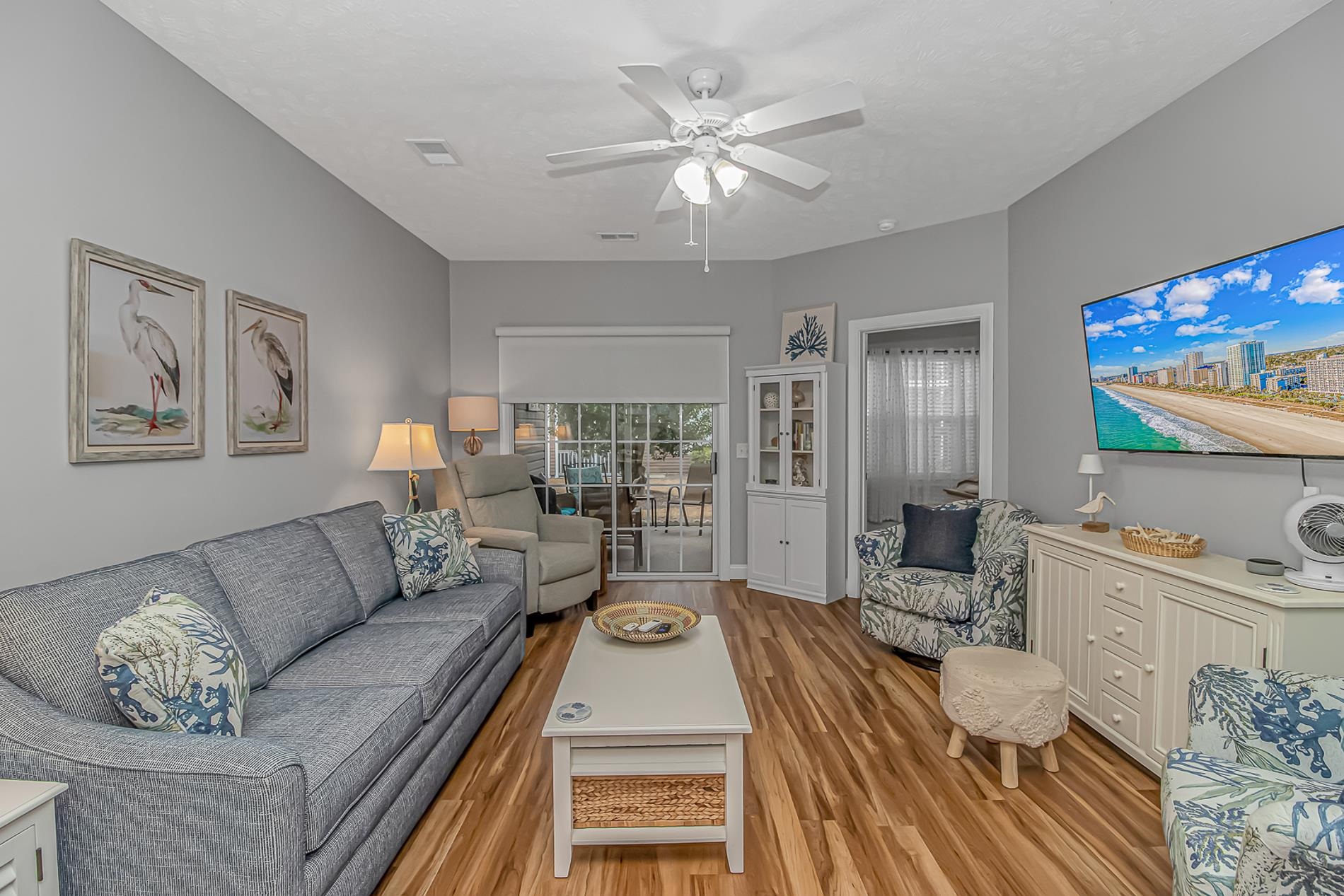 Ground-floor condo at 766-C Algonquin Drive in Pawleys Island offering true one-level living with no stairs, 3 bedrooms, 2 bathrooms, and a spacious screened porch with powered shade for comfortable year-round enjoyment; bright open-concept living and dining areas filled with natural light, a well-appointed kitchen with ample cabinetry, fresh paint throughout, new appliances and a private primary suite with en-suite bath; two additional bedrooms provide flexibility for guests, family, or a home office; ideal for full-time living, a second home, or investment, all in a desirable Pawleys Island - Litchfield location, just minutes from beaches, golf, shopping, and dining. Can be sold furnished or unfurnished as well. Enjoy the community pool as well as direct access to Stables Park from the back of the property!