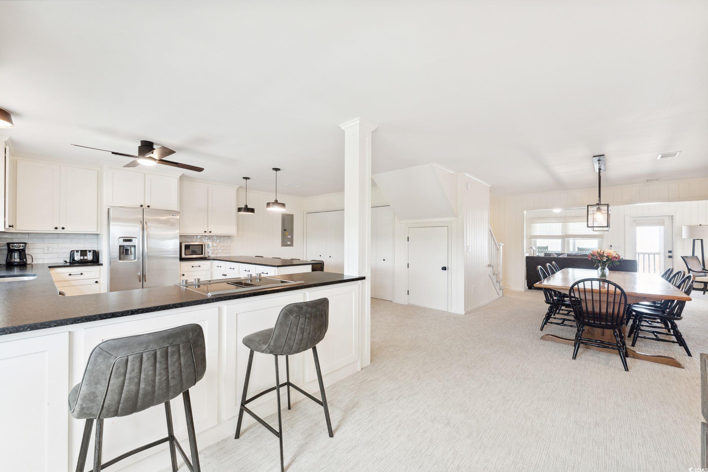LOWEST PRICED OCEANFRONT HOME IN PAWLEYS ISLAND OR LITCHFILED BEACH! The Last Resort has two beautifully distinct faces, the beachfront one that faces the sunrise over the ocean, and the creekfront one that faces the sunset over Pawleys Creek! This incredible home is the last home on the southern tip of Pawleys Island and is nestled between Pawleys Creek and the Atlantic Ocean. It is a fun house inside and out and has unobstructed views east, west and south! Truly one-of-a-kind location with both Atlantic Ocean AND Pawleys Creek frontage. Three oceanfront bedrooms and two creek view bedrooms. There are three bedrooms on the first living level and three upstairs. This home also features expansive (new) decking on both levels. Completely remodeled over the last several years and is in wonderful condition and looks great! This home is anything but "arrogantly shabby", but you can still enjoy the laid back, carefree Pawleys island lifestyle! Having water at low tide at end of the dock allows for boating, fishing, and crabbing all day long when not sunning on the sparkling sands of the beach. This home is being sold fully and tastefully furnished.