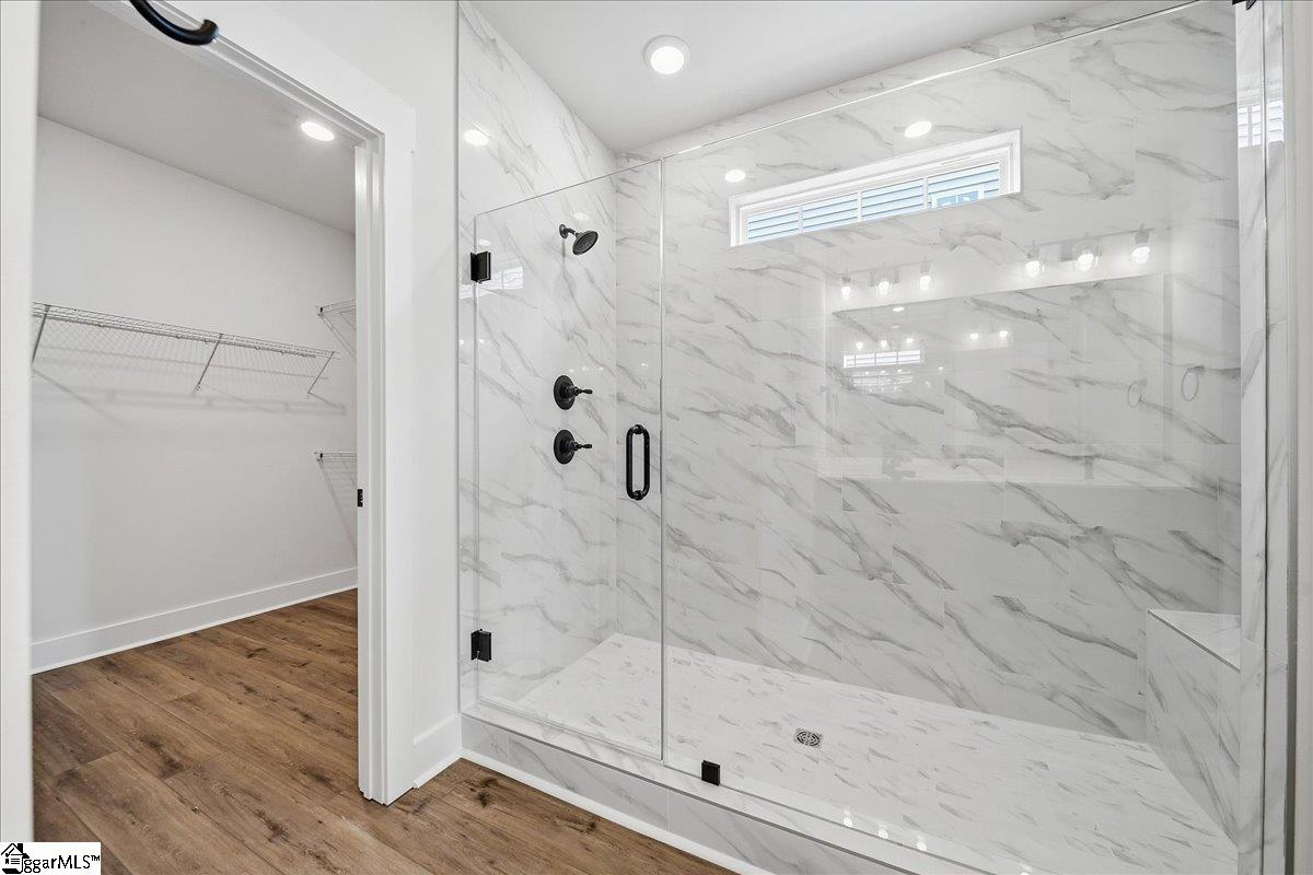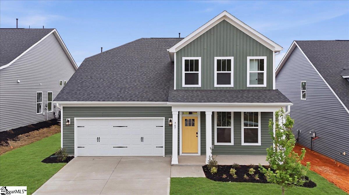 Home is Move in Ready! Welcome to Iris Meadows! Enjoy first-class amenities, including a community pool and relaxing cabana. With over 2900 square feet, the Augusta offers a perfect blend of style and functionality. The welcoming front porch leads into the foyer with an adjacent study with french doors, perfect for a home office. The open concept living room and kitchen features beautiful brown cabinetry, white Quartz countertops, tiled backsplash, under cabinet lighting, center island with sink for additional prep space and seating and stainless steel gas appliances. The high ceilings and tall windows in the living room allow for lots of natural light and a gas fireplace gives the room a cozy feel. The breakfast area opens to the expanded covered back porch overlooking your backyard. The main-level Primary suite includes double vanities, a generous walk in closet and an amazing Roman tiled shower with dual showerheads, seat and frameless glass door. A laundry room and powder room complete the first floor. Up the Oak staircase you have four additional bedrooms, all with walk in closets, one with an en suite bath, an additional hall bath with double sinks, a large loft space, and an unfinished storage area. Smart home technology, energy-efficient construction, and a dedicated local warranty team ensure lasting convenience and comfort. Located in Moore, SC, Iris Meadows offers a pool, cabana, and craftsman-style homes. With easy access to I-26 and I-85, shopping, dining, and entertainment, and zoning for sought-after Spartanburg District 5 Schools, this community is the perfect place to call home. Come by today and make Iris Meadows your new home. See Sales Agent for additional pricing information.
