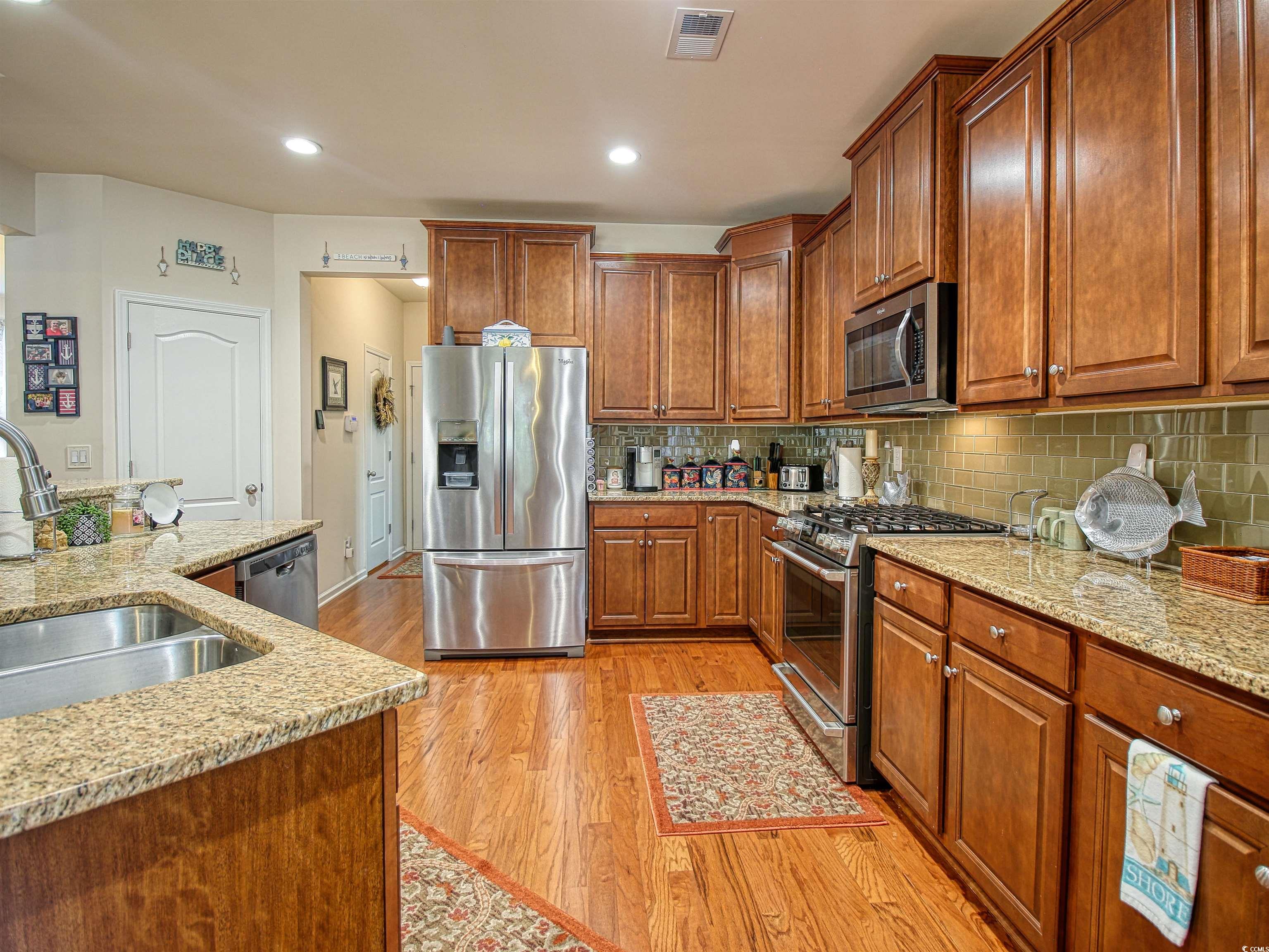 Welcome to 769 Lafayette Park Dr, a stunning 3-bedroom, 2.5-bathroom home in the charming Lafayette Park community of Little River. This residence blends modern style with coastal comfort, creating an inviting retreat just minutes from water and recreation. Step inside to an open, bright living room with high ceilings and abundant natural light that flows seamlessly into a chef’s dream kitchen. Here you’ll find stylish stainless steel appliances, including a gas range, a walk-in pantry, granite countertops, and a welcoming breakfast bar. The spacious master suite offers a serene escape with a large walk-in closet, room for a seating area, and sunlit windows; the en-suite bathroom features a double-sink vanity and a generous walk-in shower. Practical living is easy with a dedicated laundry room, a formal dining room for gracious gatherings, and an inviting front porch to unwind while taking in neighborhood life. The enclosed rear porch expands your entertaining options and provides a comfortable space to enjoy your backyard year-round. Located off Hwy 111, this home is just minutes from the Intracoastal Waterway, pristine beaches, golf, shopping, dining, and vibrant entertainment. Embrace the coastal lifestyle in a home that beautifully combines modern amenities with the tranquility of the Lafayette Park community. Home features an in-ground irrigation system and the neighborhood has an Olympic sized pool and pickle-ball courts.