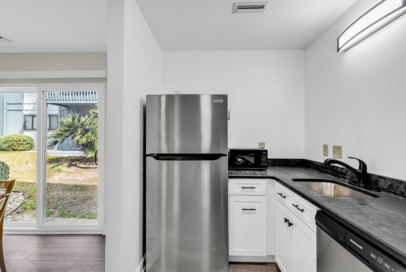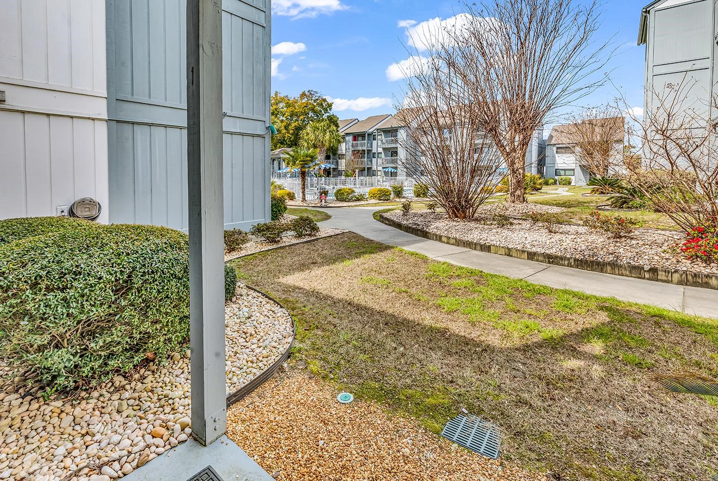 Welcome to this beautiful newly renovated 3 bedroom, 2 bath ground floor condominium located only 1.5 blocks from the beautiful blue Atlantic Ocean. Home is ideally located within walking distance to grocery, pharmacy, restaurants and stores. A short distance to local Grand Strand Hospital on 82nd Ave. This home is being sold totally furnished and is turnkey. Renovations include all new stylish LVP flooring and paint throughout the home. The kitchen displays perfectly with all new stainless steel appliances, beautiful new cabinets and countertops. New HVAC and all air ducts have been professionally cleaned. Owners have thoughtfully put all new outlets and switches. Beautiful new patio doors that open up to nice views of the courtyard and pool. All new windows, window treatments and doors have been installed which make this condo light and airy. Both bathrooms have new vanities and mirrors and comes complete with in unit washer and dryer. This condominium is being sold totally furnished ad can sleep up to 8. Large storage shed on patio for storing all your beach chairs, umbrellas, towels and grilling needs. HOA includes cable and internet. Common areas include pool access for owners and guests, grills and patio tables, as well as a gazebo overlooking the pool. Enjoy the ease of 1st floor walk out to the pool and parking. Guest parking available and owner is eligible to obtain City of Myrtle Beach parking permits which enjoy free parking at all beach public access parking lots. This home has not been a rental since 2023. Home is perfect for permanent residence or rental. Permanent residents eligible to receive lower taxes. Come enjoy owning a slice of Beach life in this wonderful community of Watermark. Square footage is approximate and not guaranteed. Buyers responsible for verification.
