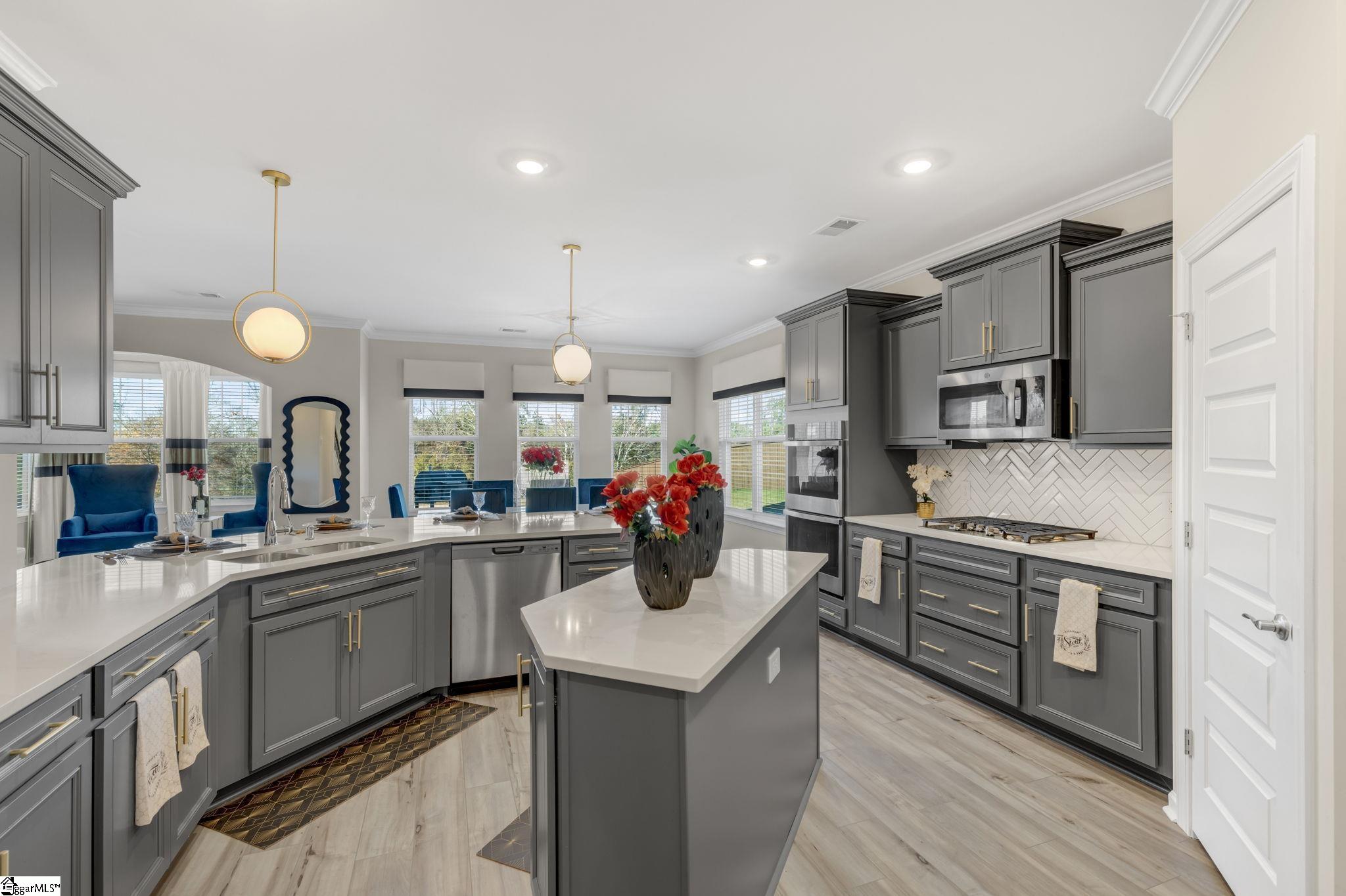 INCREDIBLE VALUE!!! This Stunning 5-bedroom, 3-bathroom 4,197 Square Feet home sits on OVER HALF ACRE LOT on a quiet Cul-De-Sac Street. There is LUXURY VINYL PLANK FLOORING Throughout the Main Level, HARDWOOD STAIRS, and an abundance of Custom Details designed for comfortable living and entertaining. The main level offers a GUEST SUITE with a Full Bathroom, a Formal Living/Flex Room, and a Formal Dining Room with COFFERED CEILING complemented by a BUTLER'S PANTRY. The Open-Concept Kitchen is a Chef’s Dream, featuring ample cabinetry, QUARTZ COUNTERTOPS, a Center Island, a Peninsula with seating, a 5-Burner Gas Range, DOUBLE OVENS, a Built-In Microwave, and a WALK-IN PANTRY. The kitchen opens up into the Breakfast Area and the Family Room, which has a Gas Log FIREPLACE and Accent Wall. Seller doesn't own a dog but unique touches like a Dog Room under the stairs add to the charm. The MASSIVE OWNER'S SUITE has a Trey Ceiling, SITTING AREA, and Luxury Vinyl Plank Floors. The Spa-Like En Suite features Double Sinks, a Jetted Tub, a SEPARATE SHOWER with a Rain-head, DOUBLE WALK-IN CLOSETS, and a Raised Dressing Area. The second floor also includes a SPACIOUS LOFT, three additional Bedrooms with Walk-In Closets, and access to the BALCONY. The Gas TANK-LESS WATER HEATER gives you Endless Hot Water for the whole family. CROWN MOLDING enhances the home’s sophistication, and outdoor living is a breeze with the LARGE PATIO overlooking the expansive backyard. CONVENIENTLY LOCATED about 15 minutes from Downtown Anderson and Powdersville, and 25 minutes from Downtown Greenville, with easy highway access to the highway. This home offers both tranquility and accessibility. Don’t Let This One Get Away!