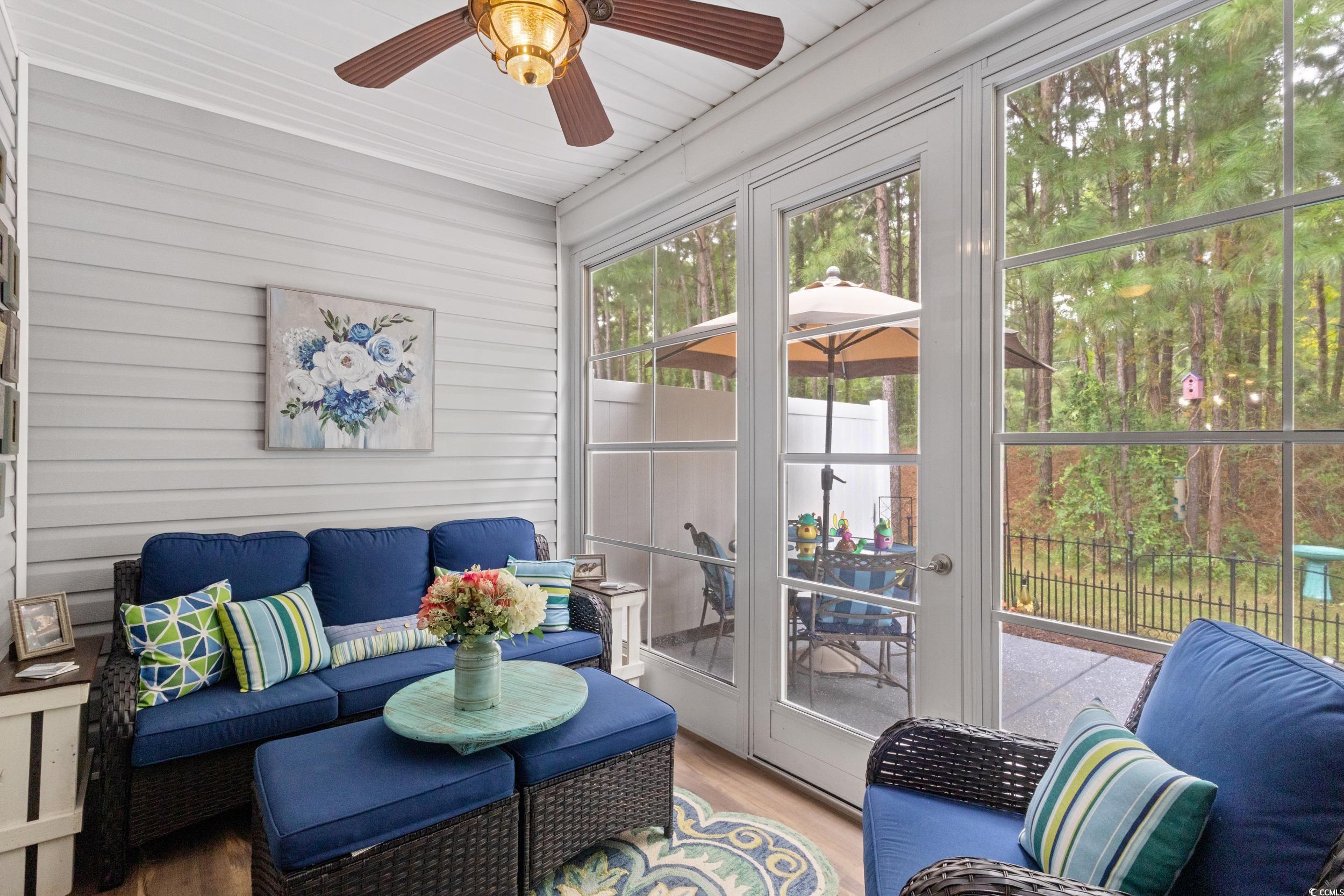 Here is the coastal lifestyle you’ve been dreaming of in this stunning Bella Vita Garden Home, where luxury meets low-maintenance living. This beautifully upgraded 3-bedroom, 2-bath residence features a spacious kitchen with a center island, granite countertops, and elegant 36" cabinets, flowing seamlessly into a dining area and open-concept living room with LVP flooring along with two solar tubes for abundant natural light. The expansive primary suite offers a tranquil retreat with a bay window, sitting area, and tray ceiling, leading to a spa-like bathroom with a tile shower surround, double vanity, tile flooring, and two additional solar tubes. Enjoy year-round comfort in the Carolina room, now upgraded with NEW LVP flooring and floor-to-ceiling Sunspace windows. Step outside to a private backyard oasis—ideal for barbecues, cozy evenings by the fire pit, and peaceful moments under the stars. A no-dig fence ensures your furry companions stay safe while you soak in the sights and sounds of nature. Two guest bedrooms, one can be a sitting area or office. Private garage and driveway allow for ample parking. This is more than a home—it’s a lifestyle worth experiencing.
