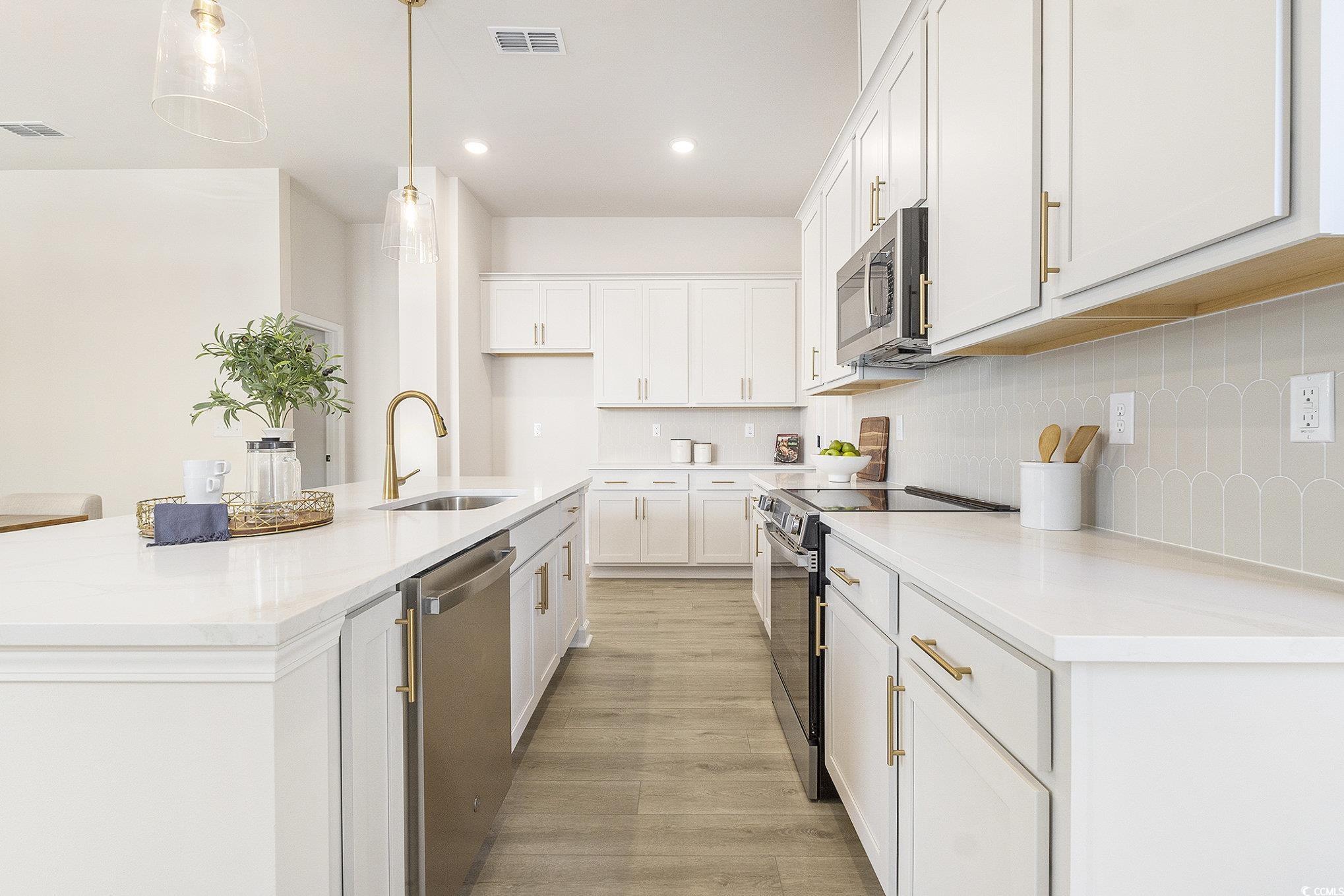 FIRST FLOOR PRIMARY! Grab this opportunity to be one of the first to buy in an Intracoastal Waterway waterfront community! Discover the perfect blend of comfort and style in this spacious 2,683 sq. ft. two-story home. With 4 bedrooms and 2.5 baths, the thoughtfully designed layout begins with a main-floor primary suite complete with dual vanities, a tiled shower, and an expansive walk-in closet. The open-concept kitchen flows into the breakfast area and family room, extending outdoors to a covered patio upgrade—ideal for both entertaining and unwinding. Upstairs, a versatile loft anchors three secondary bedrooms, each with its own walk-in closet. A large storage closet off the loft adds convenience, keeping everything neatly in place. This home also features our Harmony Collection, inspired by the quiet rhythm of nature and the softness of light. White cabinets, brushed nickel hardware, a scalloped tile backsplash, quartz countertops, and light oak-style LVP flooring create a calm, airy atmosphere that feels timeless yet modern. Every detail was curated to bring a sense of peace and balance to daily living. Photos are of similar model in the community.