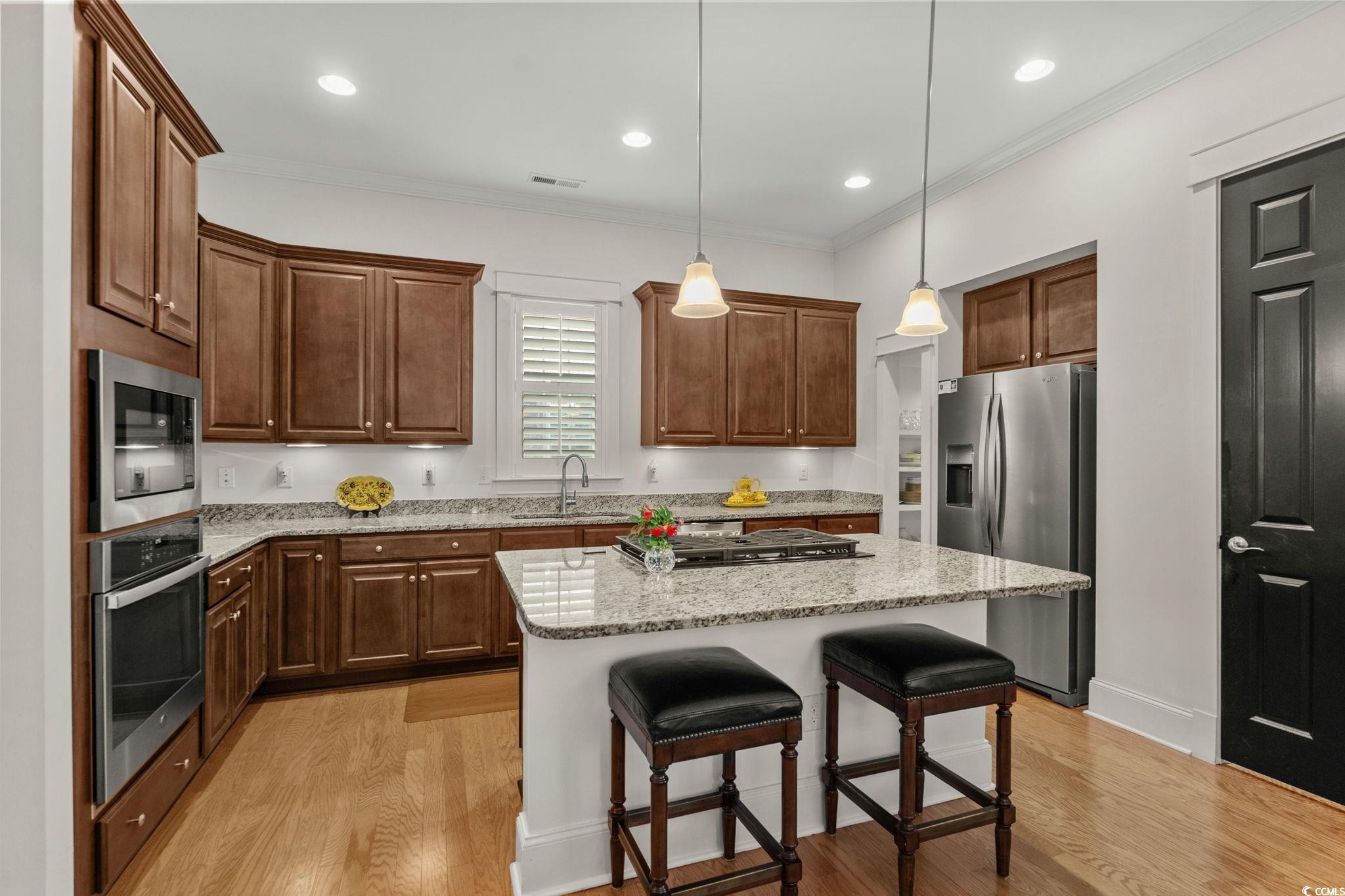 Very rarely do homes like this come on the market, welcome to the epitome of coastal luxury living at 7825 N Ocean Blvd. Currently the ONLY 3 bedroom residence available within Papillon, the highly-sought after boutique community nestled in the Dunes area. Only 300 yards from the ocean, this home is the quintessential retreat for families, beach enthusiasts, and vacationers alike. Step away from the bustling condo scene and into the serenity of your own beautiful beach property. This immaculate brick home, located on a premium lot is simply loaded with upgrades such as high impact windows, Kohler whole house generator, tankless water heater, April air filtration system, gutters and so so much more. The interior radiates warmth and elegance with hardwood floors and porcelain tile throughout, complemented by a chef's kitchen featuring gas cooking, granite countertops and plenty of cabinets. This residence offers a seamless floor plan including a spacious master with an ensuite bathroom featuring a walk in tile shower and an expansive closet. The upper level hosts 2 additional bedrooms, ensuring ample comfort for family and guests. Must see the patio garden, landscape lighting and brick pavers, simply stunning. Don't miss this exceptional opportunity to own your own piece of paradise in Papillon. Your dream home awaits...call today for a private showing!