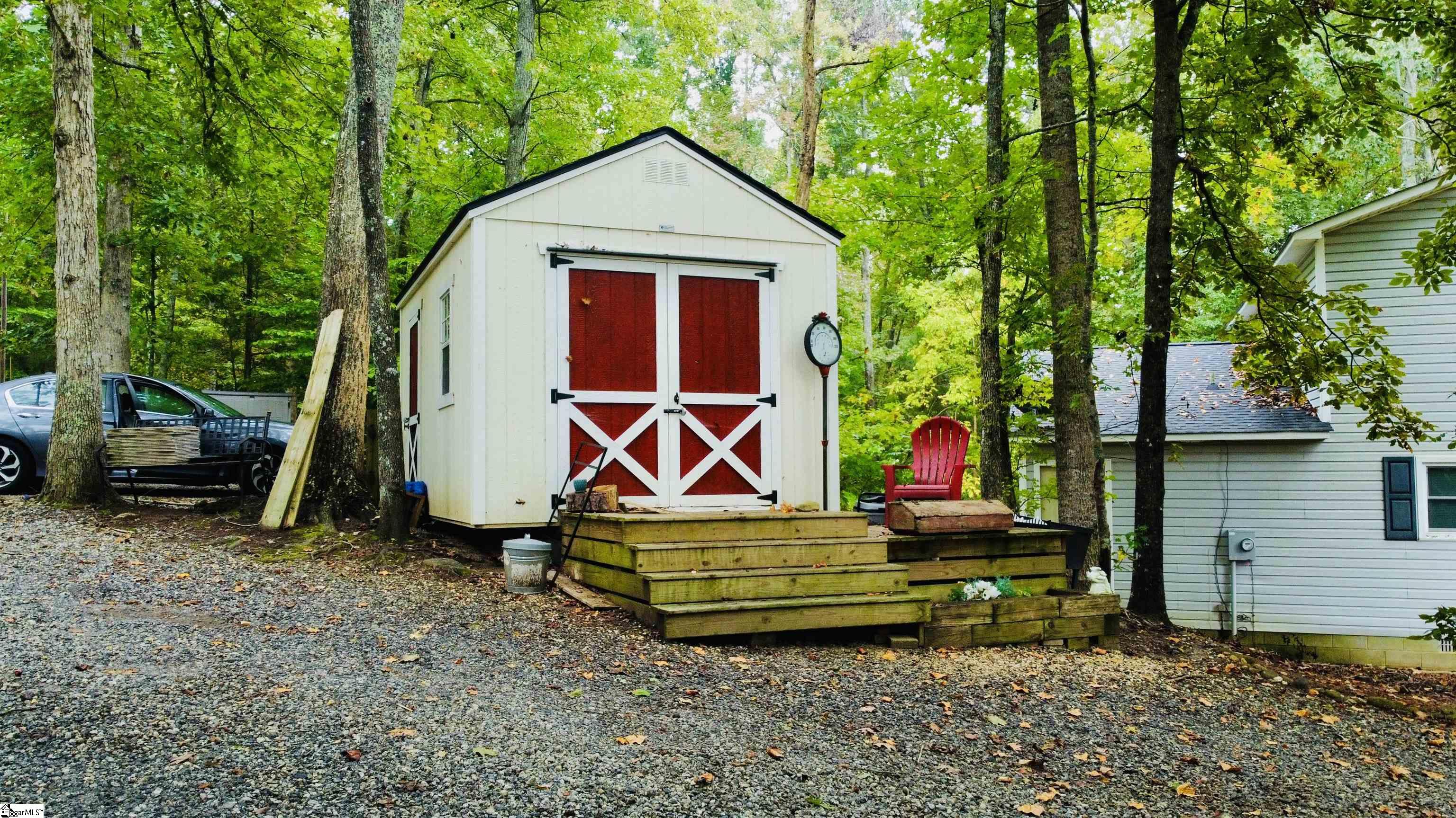 WONDERFUL LAKE HOUSE WITH ARTISTIC TOUCHES - From the moment you pull into the driveway, this darling lakefront home will capture your heart with its charming yard art and welcoming character. There is an outbuilding with electricity for workshop or storage. Step onto the front porch and inside to discover an open-concept design where the kitchen, dining, and living room all flow together seamlessly. Living Room Highlights: Spacious layout with beautiful hardwood floors. Rock fireplace soaring to the cathedral ceiling, accented with a custom live edge mantel. Built-in shelving for books or decor. French doors that open to the screened porch. Walls of windows framing breathtaking lake views. Gourmet Kitchen: Custom cabinetry topped with solid walnut countertops. Unique Italian cast-iron porcelain sink, with built-in drainboard & professional copper faucet. High-end 36in cooktop with 6 burners, digital controls, and pan-size adjusting glass burners. Double oven setup - Upper oven: microwave/convection with bake, roast & broil. Lower oven: full convection with bake, roast, broil & steam. Tile flooring paired with a warm cedar wood ceiling. Countertops in the dining area are made of pine with live edge. The main level also features 2 bedrooms and 2 bathrooms, plus a huge, screened porch overlooking the lake, perfect for entertaining or simply relaxing with a view. Basement Retreat: Private bedroom & living room. Kitchenette for convenience. Laundry closet. Half bath with room to install shower. Walkout access to a covered porch with more lake views. Lakeside Amenities: Covered boat slip with electricity. Fire pit area for gatherings. Level sitting areas along the water, perfect place to enjoy beautiful sunsets every evening. Strong, well-maintained sea wall. High speed fiber optic internet available. Just a little over an hour to International Airport. Atlanta & Charlotte only 2 hours. Lake Secession is a hidden gem with plenty of family fun. Whether you enjoy boating, swimming, jet skiing, kayaking, fishing, this lake is just right. Come check out this perfect lake house for vacations, weekend getaways, short term rentals for income, or full-time lake-living. This home has been loved & cared for but now it's time for another family to make wonderful memories here.