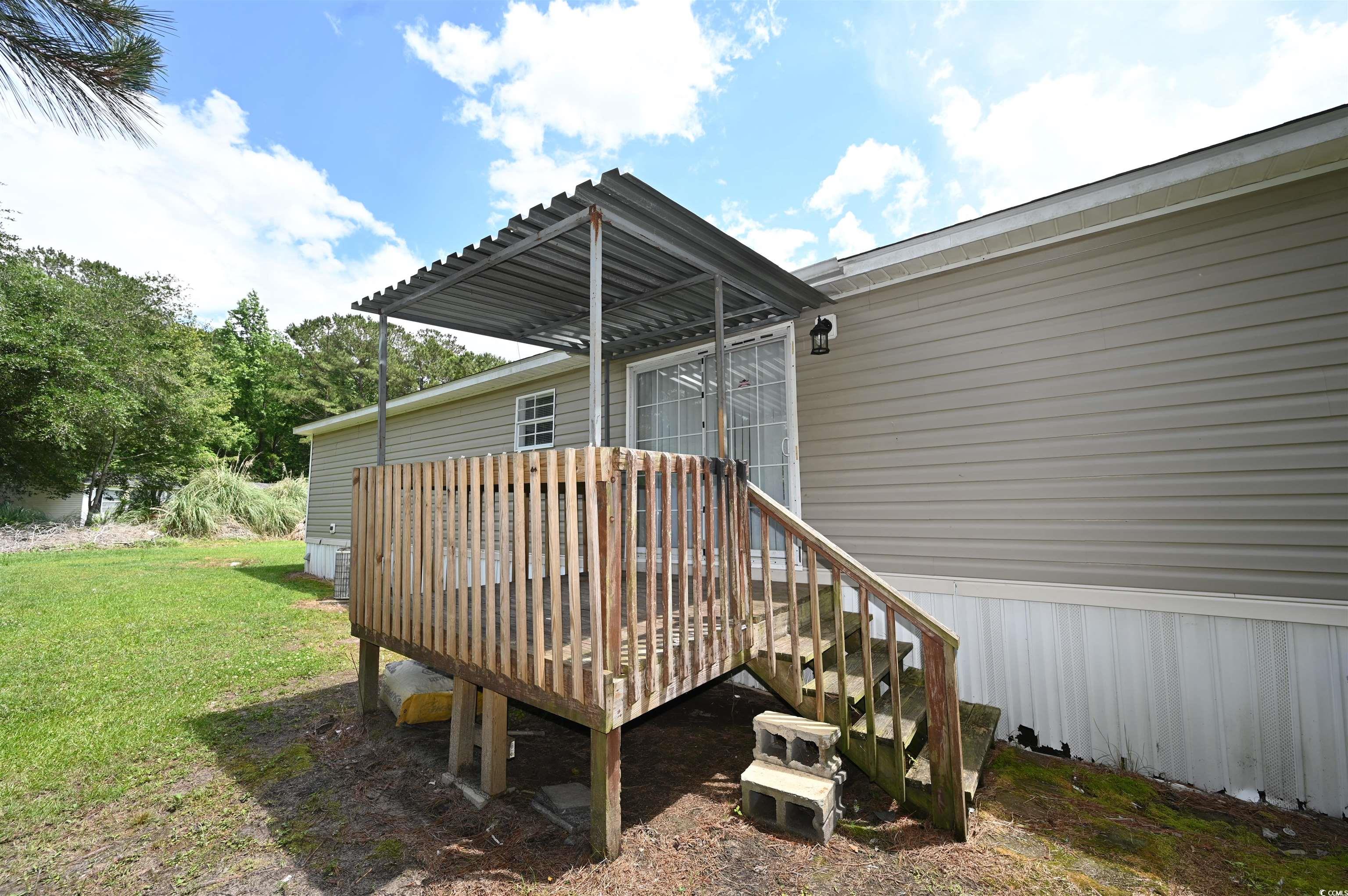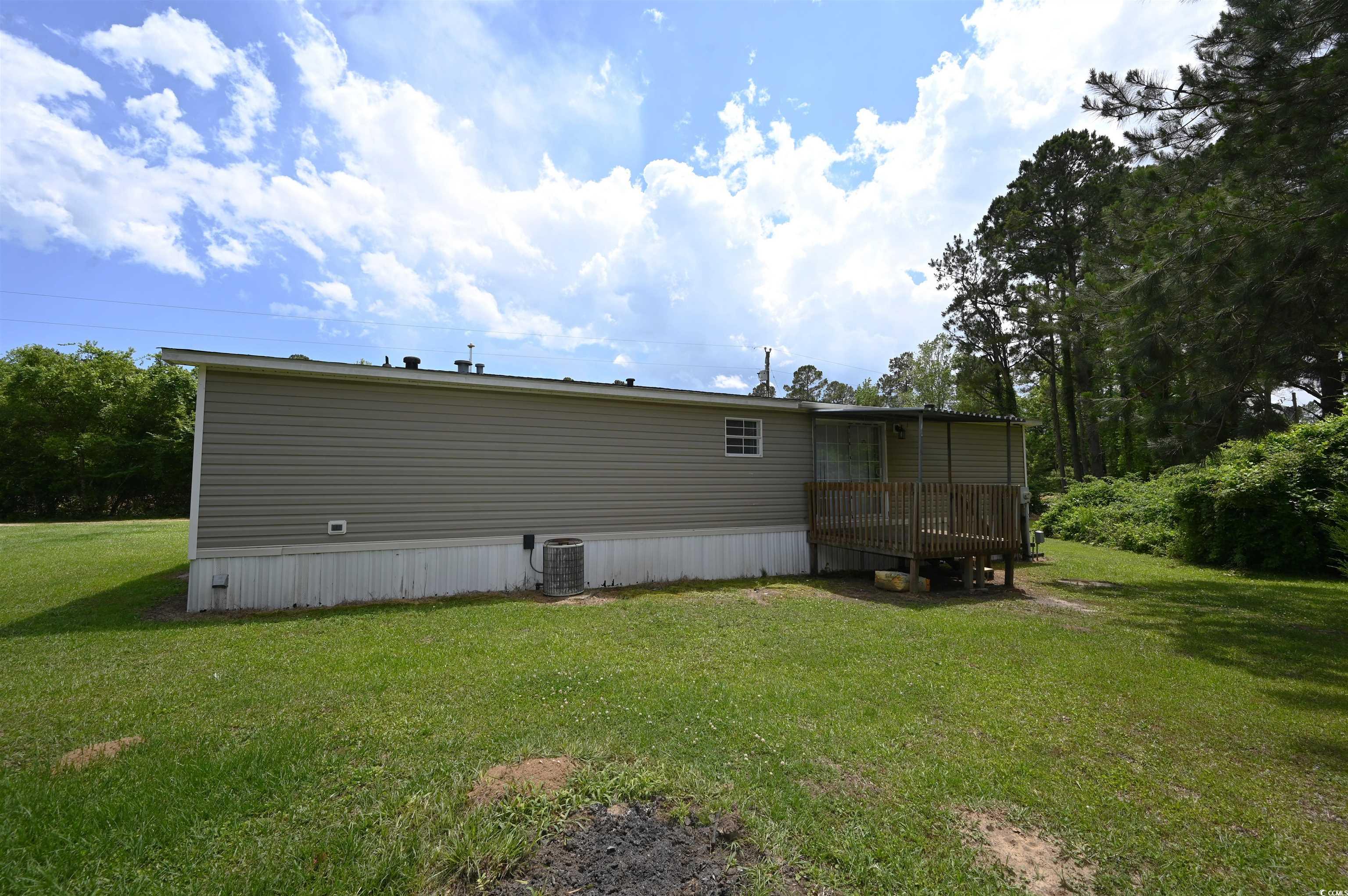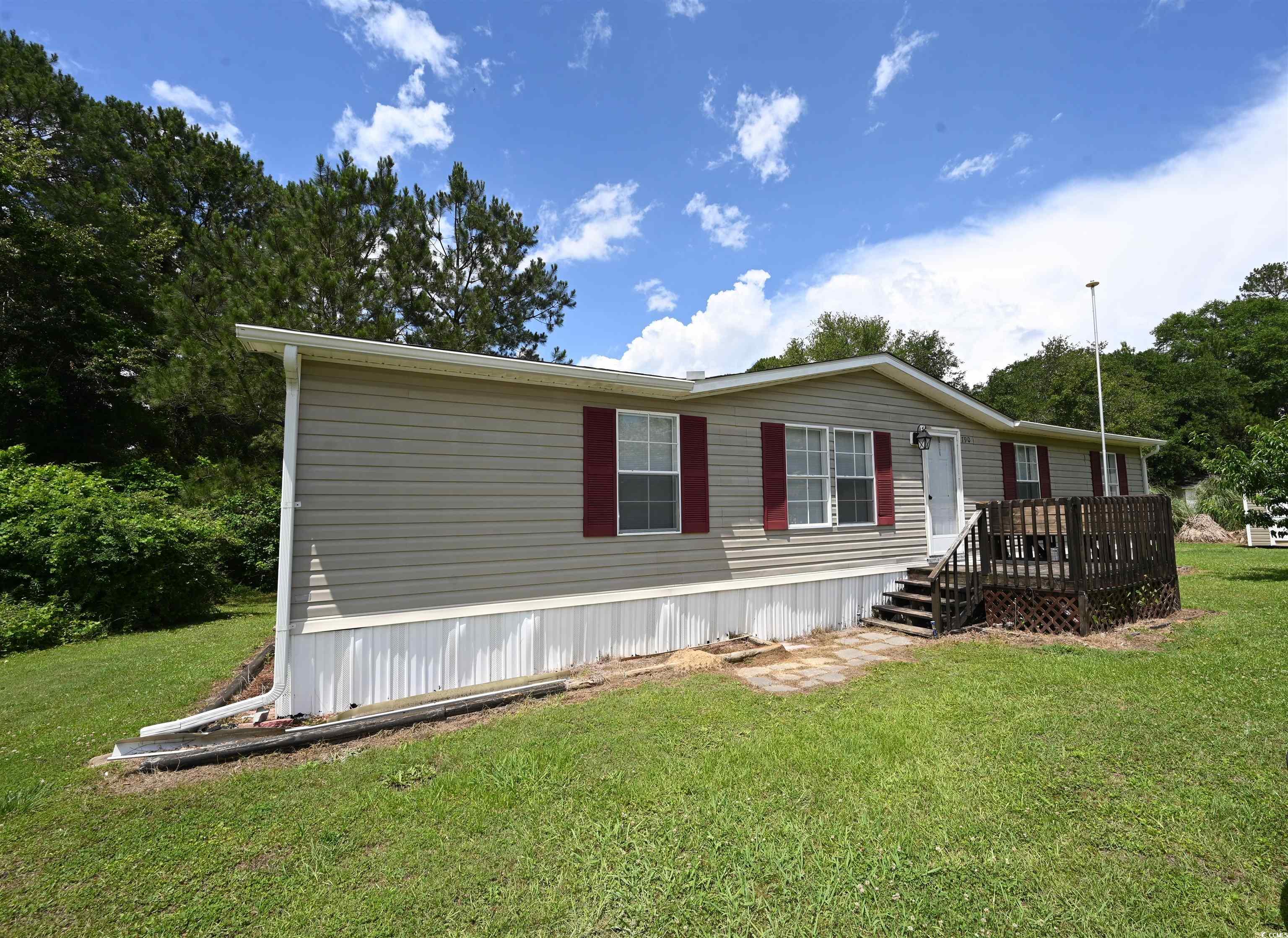 DOUBLE WIDE MANUFACTURED HOME! Spacious lot with low lot lease, that even has a peach tree in the front yard! LARGE kitchen with LOTS of cabinets including a pantry! Master bedroom includes his and her walk in closets. Master bathroom includes double vanity's, large tub, walk in shower. Back covered porch to enjoy your backyard! The pictures that are furnished are digitally staged. No pools, no trampolines, and all pets must be approved by land owner. Estimated at 15 minutes from the beach, shops, restaurants, and entertainment that North Myrtle Beach, SC has to offer. Buyer is responsible for any measurement verifications.