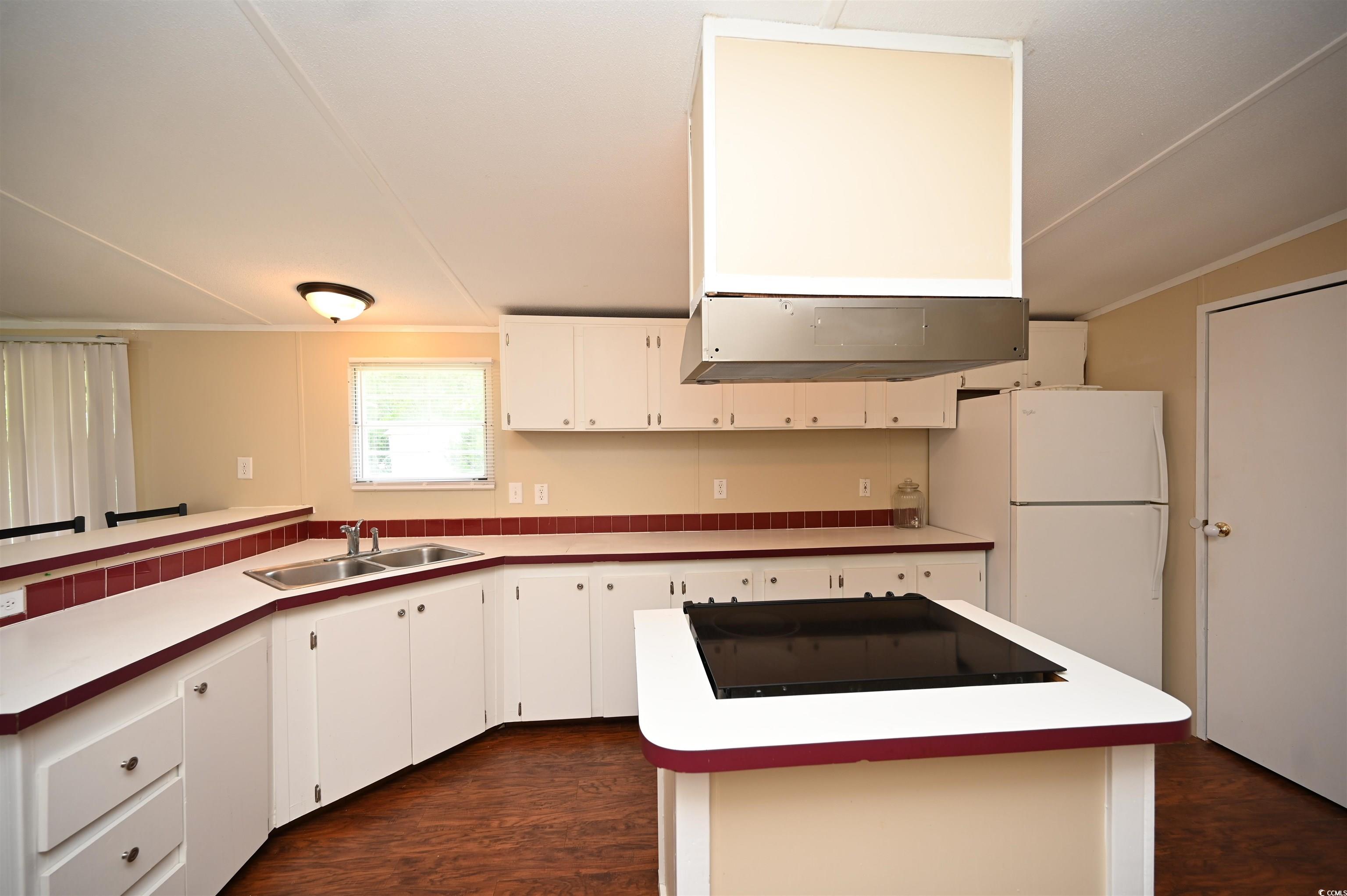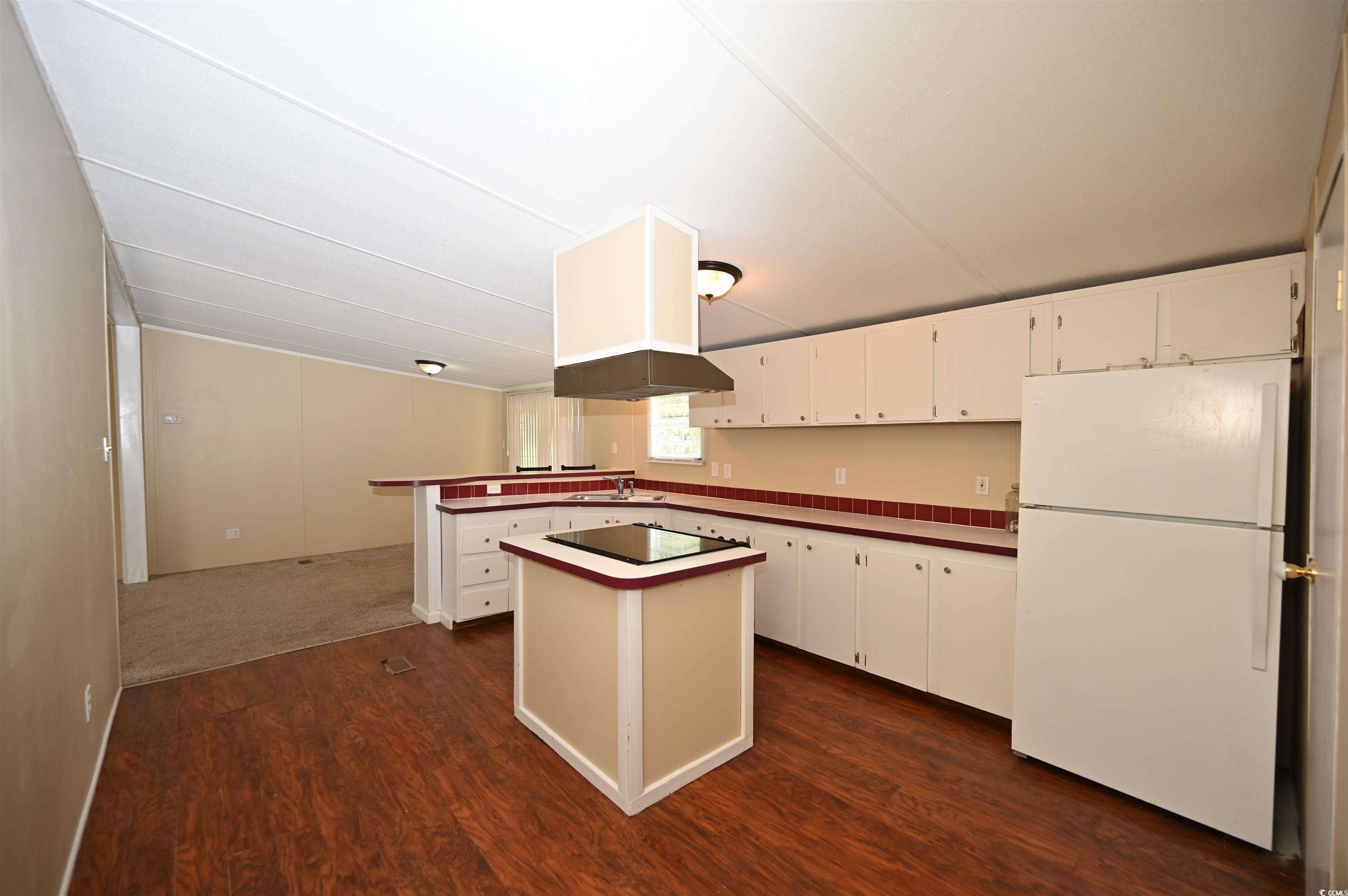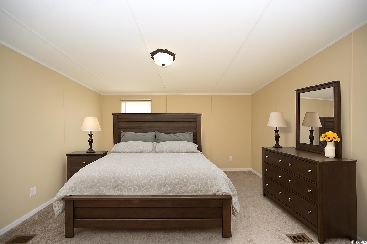 DOUBLE WIDE MANUFACTURED HOME! Spacious lot with low lot lease, that even has a peach tree in the front yard! LARGE kitchen with LOTS of cabinets including a pantry! Master bedroom includes his and her walk in closets. Master bathroom includes double vanity's, large tub, walk in shower. Back covered porch to enjoy your backyard! The pictures that are furnished are digitally staged. No pools, no trampolines, and all pets must be approved by land owner. Estimated at 15 minutes from the beach, shops, restaurants, and entertainment that North Myrtle Beach, SC has to offer. Buyer is responsible for any measurement verifications.