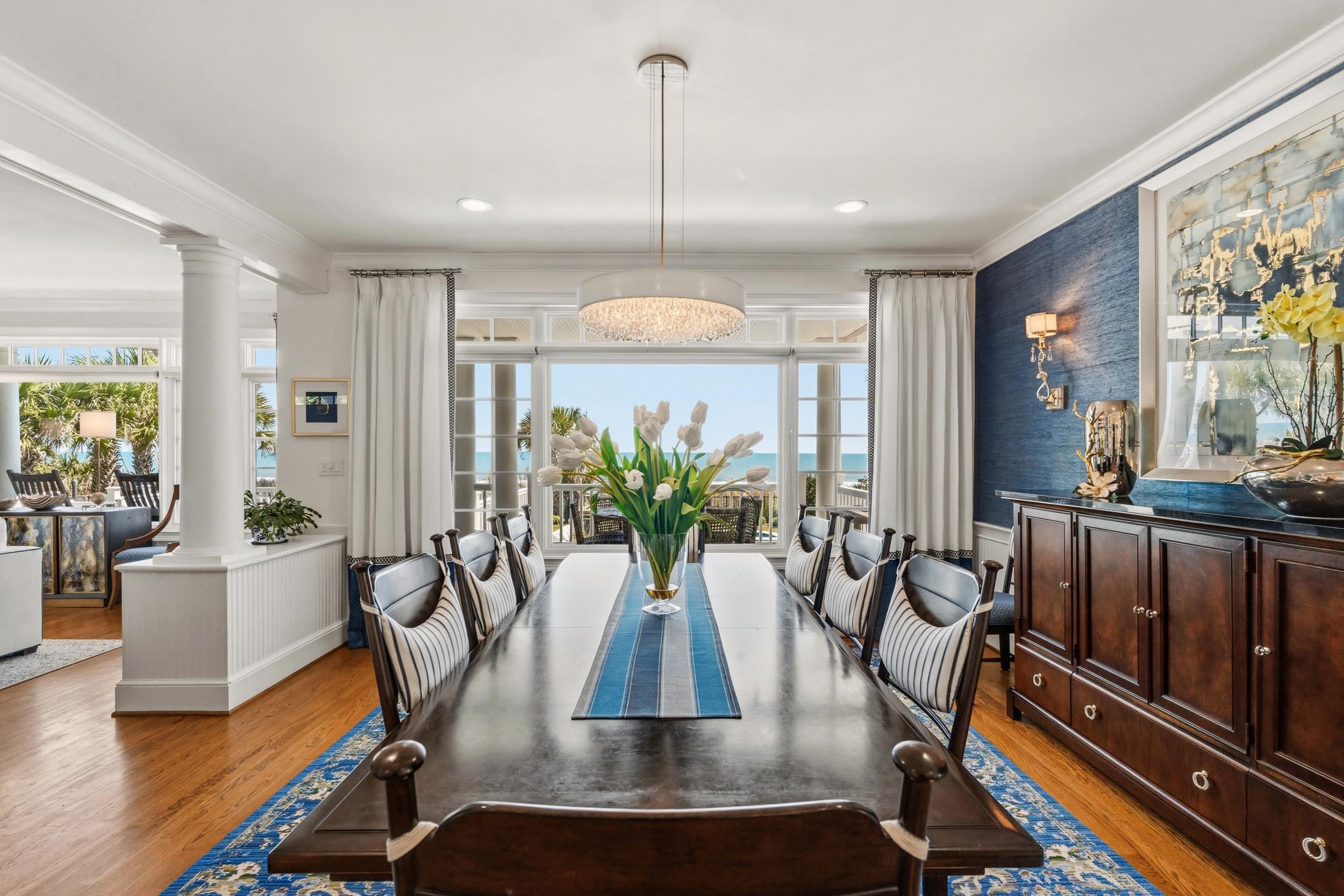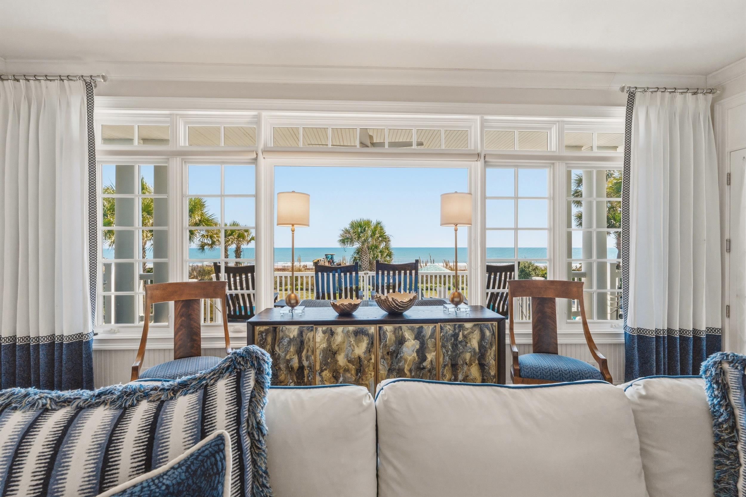 Welcome to 7906 Beach Drive, a rare opportunity to own a stunning oceanfront home on the highly sought-after Golden Mile of Myrtle Beach. Perfectly positioned along one of the most desirable stretches of coastline, this beautifully furnished residence offers the ultimate blend of luxury, comfort, and breathtaking views. Professionally designed and sold furnished, every detail of this home has been thoughtfully curated to create a seamless coastal living experience. From the moment you step inside, you are greeted with panoramic ocean views that extend throughout the entire home. Enjoy unobstructed ocean views from every room, creating a true indoor-outdoor connection to the coast. Wake up in the primary suite to the sound of waves and start your day with a view of the sunrise over the Atlantic—where you can often spot dolphins right from your bed. The open-concept living spaces are designed for both relaxation and entertaining, featuring light-filled interiors, coastal finishes, and effortless flow. Whether you are hosting guests or enjoying a quiet evening, the backdrop of the ocean is always front and center. Step outside and experience true oceanfront living ideal for morning walks, sunrises, and everything that makes coastal living so special. Located on the prestigious Golden Mile, you are just minutes from fine dining, golf, shopping, and all that Myrtle Beach has to offer—while still enjoying the privacy and exclusivity this stretch of Beach Drive provides. This is more than a home—it’s a lifestyle.