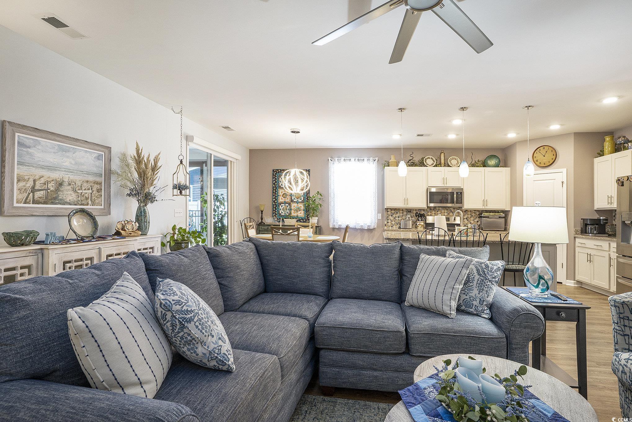 Welcome to this stunning 4-bedroom, 3-bathroom home in the highly sought-after Heritage Park subdivision of Longs, SC. From the moment you arrive, you’ll be greeted by beautifully maintained landscaping and exceptional curb appeal that sets the tone for the rest of this home. Step inside, and you’ll immediately notice the bright, open layout that fills the main living space with natural light. The seamless flow leads into the four-season room, a sunlit retreat which can be enjoyed year-round, perfect for morning coffee, reading, or enjoying peaceful backyard views. The heart of the home is the chef-inspired kitchen, complete with sleek stainless steel appliances, a gas range, stylish tiled backsplash, granite countertops, and a pantry. As part of a natural gas community, this home offers both efficiency and comfort for everyday living. The main-floor master suite is a private retreat, featuring tray ceilings, a generous walk-in closet, and a spa-like ensuite bath with dual vanities and a walk-in shower. Upstairs, you’ll find a spacious second living area that can serve as a media room, playroom, or lounge. The fourth bedroom and a full bathroom are also located upstairs, providing comfort and privacy for guests or family members. Two additional bedrooms and another full bathroom are located on the main floor, completing this well-designed layout. Every detail of this home has been thoughtfully designed, from the bright, airy floor plan to the elegant finishes that make it truly stand out. Outside, you’ll enjoy a landscaped yard and access to fantastic neighborhood amenities, including a community pool, pickleball courts, bocce ball, and a dog park. Heritage Park offers the perfect blend of convenience and charm—just minutes from top-rated restaurants, shopping, golf courses, and, of course, the beach. This home combines space, style, and location into one exceptional package. Schedule your private showing today and discover why this Heritage Park gem is the perfect place to call home!