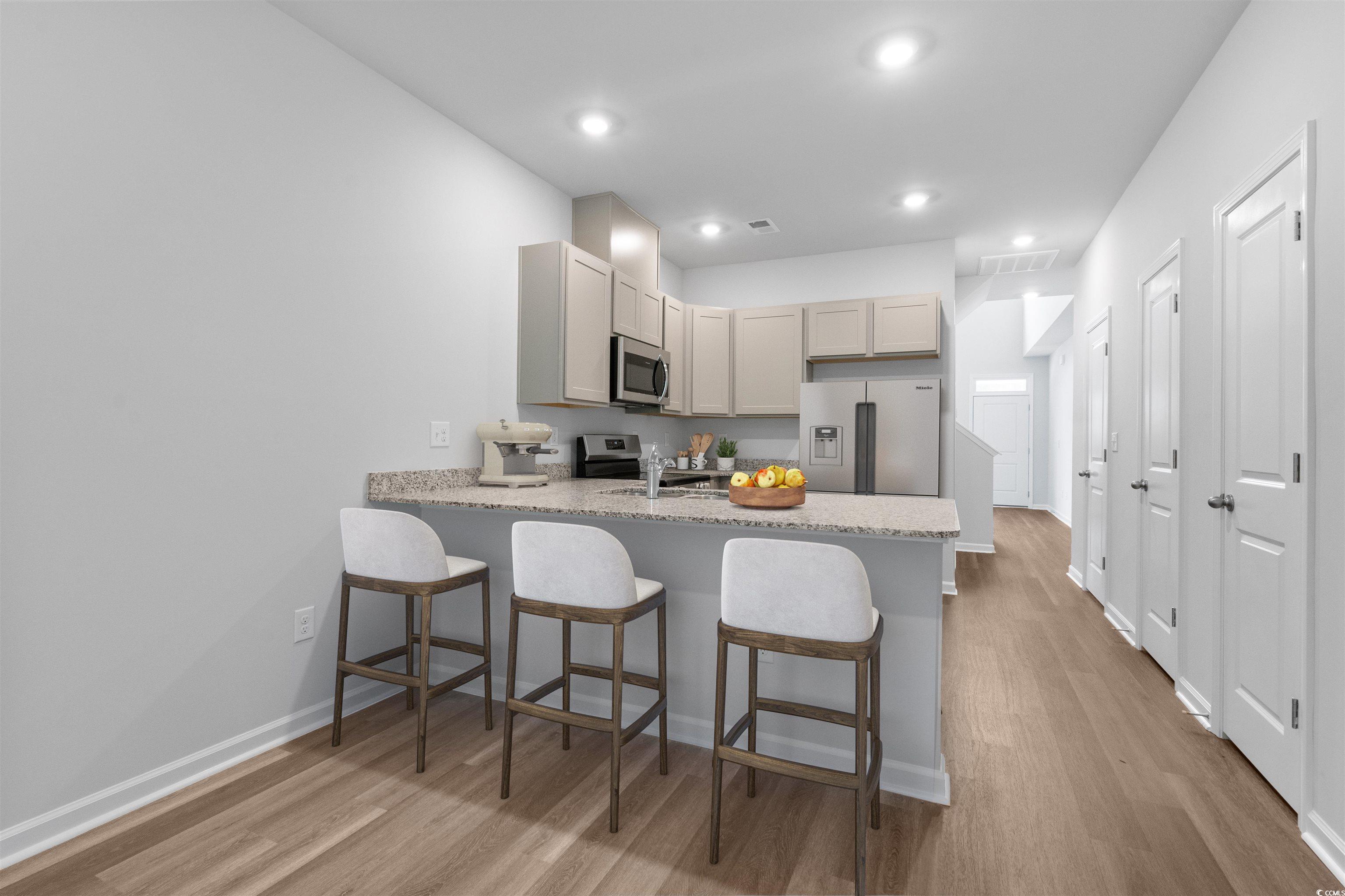 This three bedroom, 2.5 bath home with patio. Owner suite on first level. Move in Ready. Maintenence free living. These are Energy star homes with architectural shingles. High efficiency HVAC systems. Professional landscaping with sod and irrigation on front, sides and rear of the homes and gutters. 9' smooth ceilings. Granite countertops with stainless under mount sink. Chrome lighting and bath fixtures. Stainless appliances including range, microwave, dishwasher and garbage disposal. LVP flooring in the foyer, kitchen, casual dining, bathrooms and laundry room and family room. Carpet in the other areas. Bathrooms come with quartz counter tops and adult height vanity. Calabash Palms offers the perfect balance of seaside living and small-town charm. Residents can enjoy the coastal lifestyle, with easy access to all the attractions that the town of Calabash has to offer, including great restaurants, boutique shops, and art galleries. At Calabash Palms, you'll enjoy the best of both worlds: a peaceful and serene community surrounded by natural beauty, with all the conveniences of modern living just minutes away. Come visit us today and see why this community will be the perfect place to call home. Move in ready. Photos maybe of Representative File photos, the actual home may vary in color.