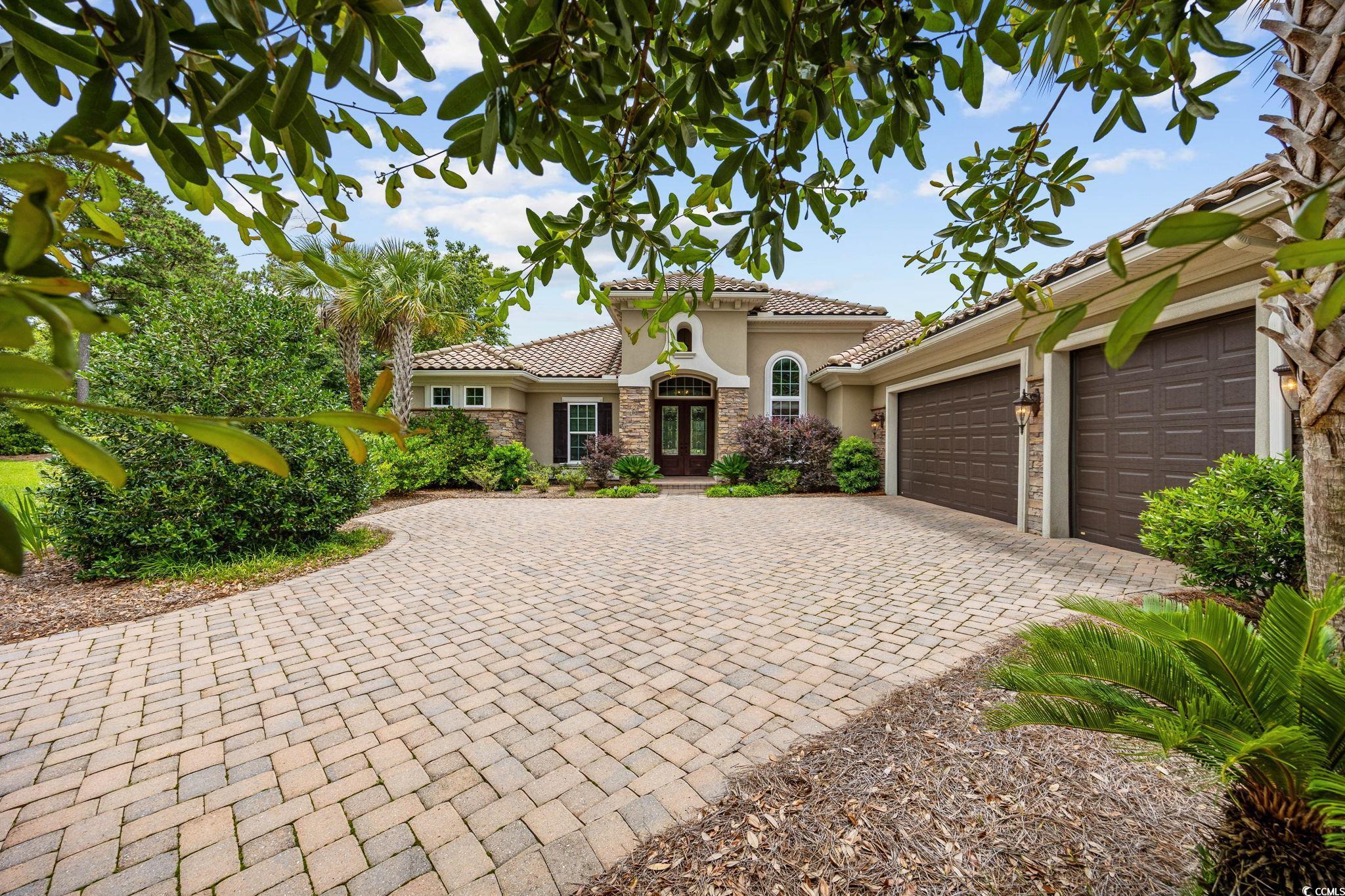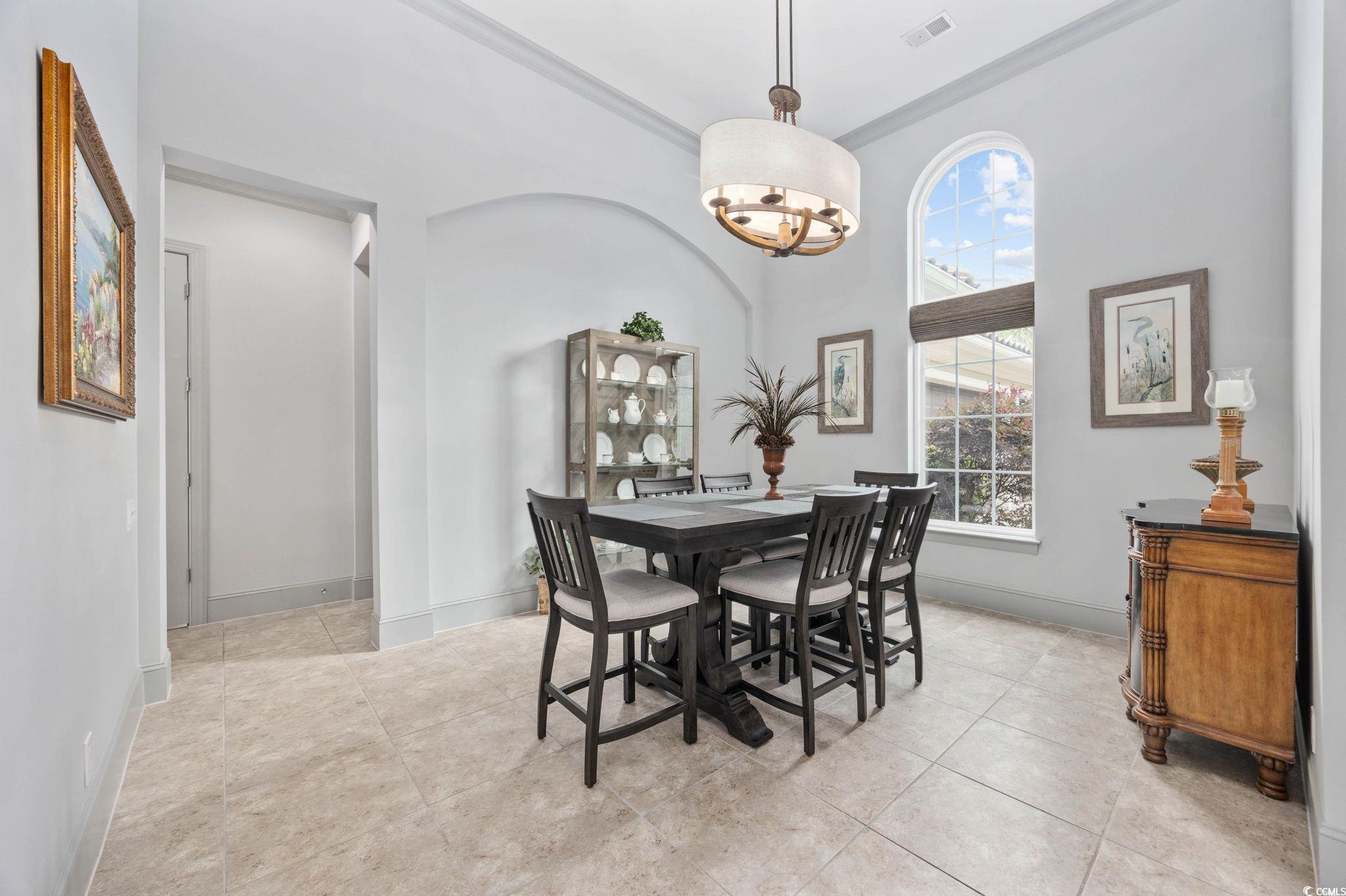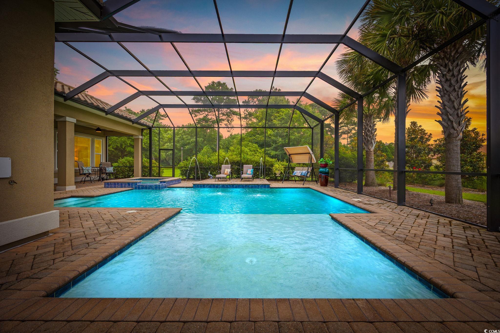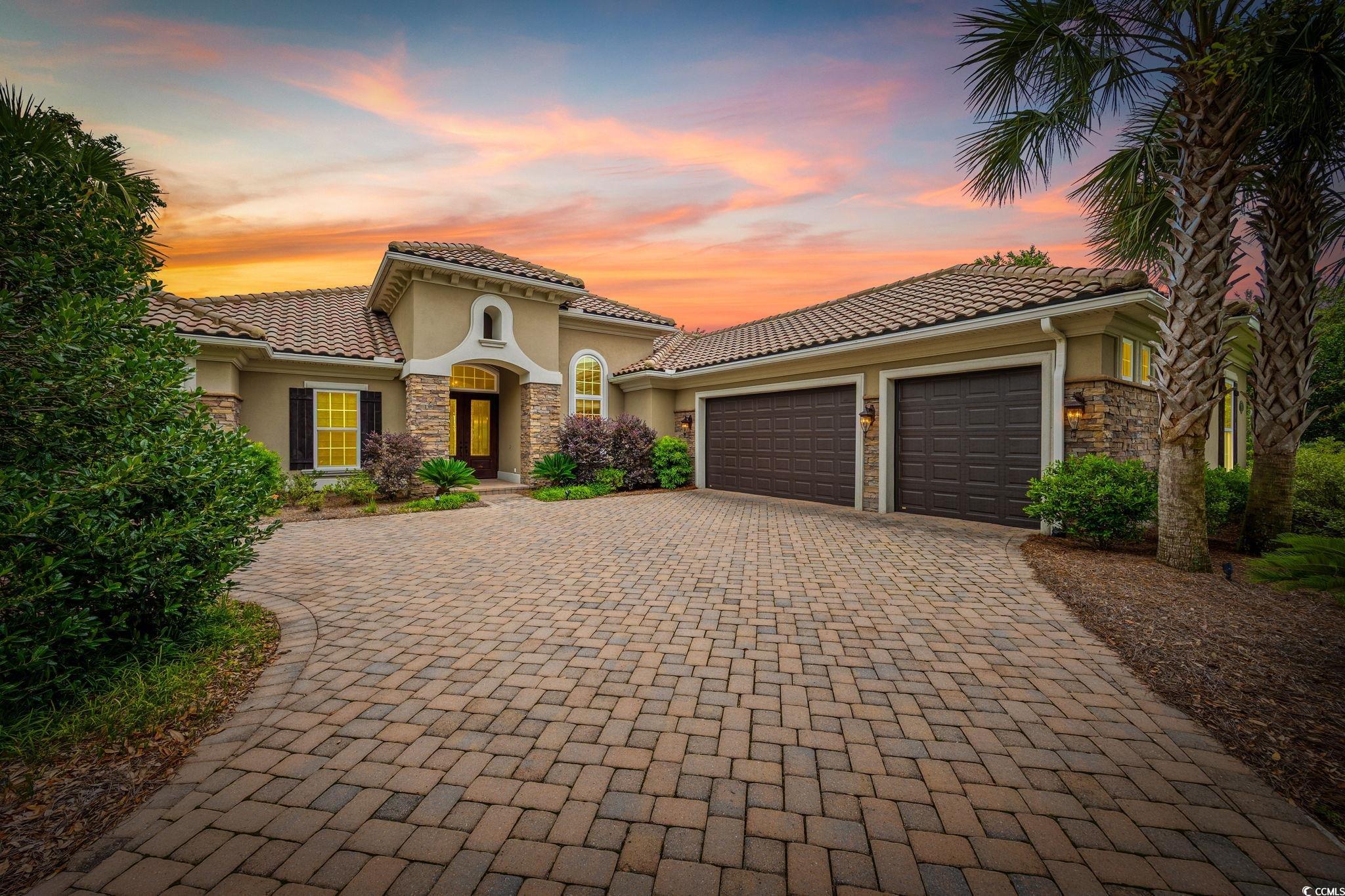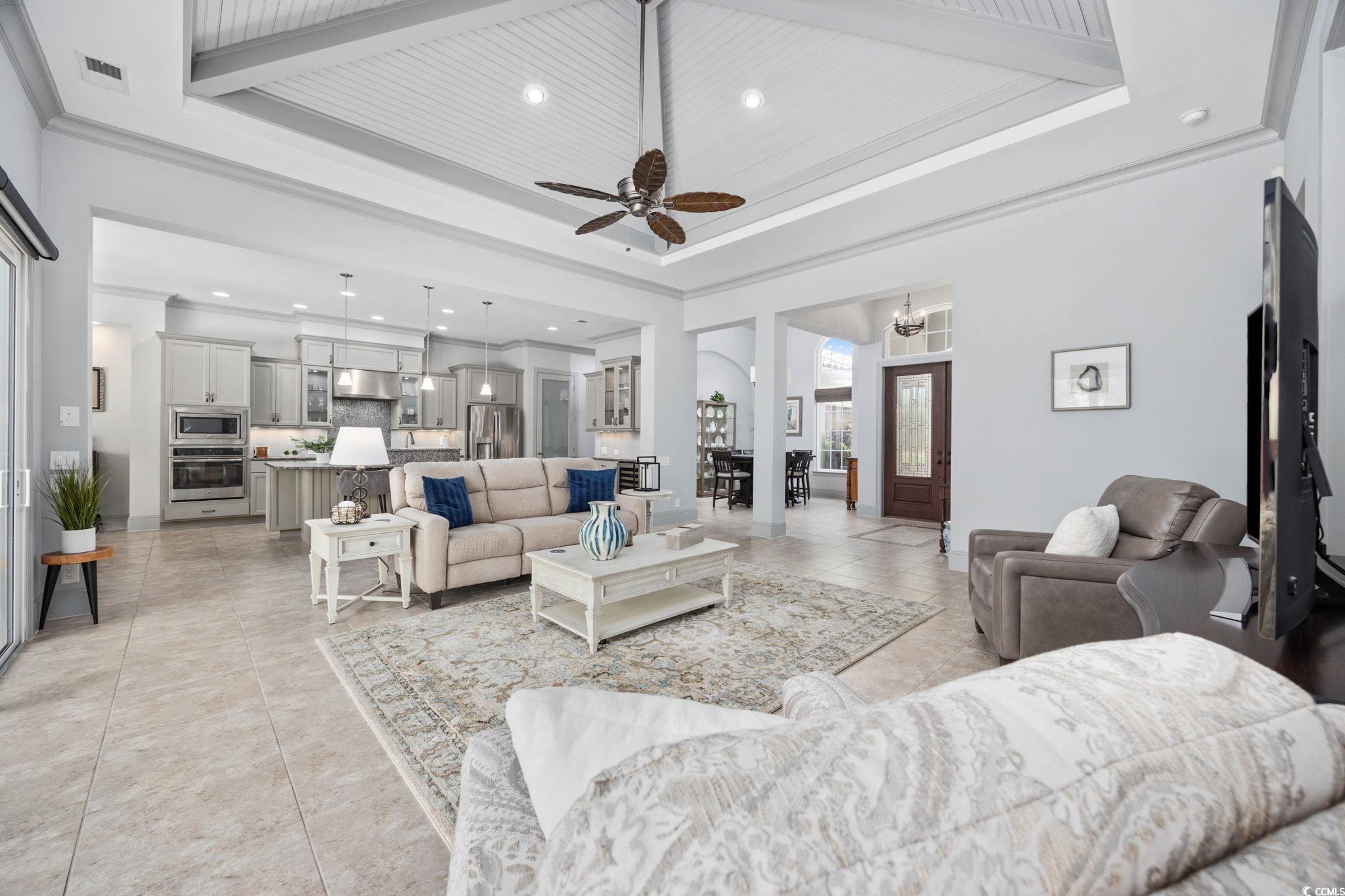 Welcome to this exquisite custom-built residence set within the prestigious double-gated Palermo section of Grande Dunes Golf Village in Myrtle Beach, South Carolina. This immaculate four-bedroom (3 Bedrooms + den/office), three-bath home with a spacious three-car garage offers the perfect blend of refined interior design, luxury features, and resort-style outdoor living. Located on a serene pond lot, the home is thoughtfully designed for both relaxation and entertaining. As you enter through the foyer, you are immediately drawn to the soaring beamed tray ceiling with custom detail and the open-concept layout filled with natural light- ideal ambiance for entertaining and everyday living. The heart of the home is the gourmet kitchen, featuring a large center island ideal for gathering, glass accent cabinetry perfect for displaying fine pieces, a wine cooler, a generous walk-in pantry, and a secondary walk-in pantry just off the spacious laundry room. The kitchen flows seamlessly into the living area where new remote-controlled blinds and oversized sliding glass doors create a welcoming ambiance that connects the indoors with the lanai. The primary suite is a peaceful retreat, featuring double-tray ceilings, a spa-like bathroom with separate dual vanities along with a makeup area, a soaking tub, a large tiled walk-in shower, linen closet, a private water closet and precisely placed windows provide great natural lighting. One highlight is the expansive custom walk-in closet with a custom organizer system. A private door leads from the primary bedroom directly to the screened lanai and pool area. Two guest bedrooms (Bedroom 2 features private en-suite bathroom) offer large walk-in closets while the fourth bedroom serves as a bright and versatile flex space with ample windows and sliding doors to the lanai.This room is ideal as a home office, den, or fourth bedroom, with a designated space for a closet -ready for doors and shelving. Spacious laundry room with washer and dryer offers functionality and style, featuring a utility sink, expansive folding area, extensive cabinetry, and a generous hanging rack to make everyday tasks effortless. Just off the laundry room, a secondary walk-in pantry or utility closet provides convenient storage for household essentials to keep your home beautifully organized. Spacious three-car garage will accommodate multiple vehicles, golf cart, or additional storage. Owners added a professionally coated epoxy floor for durability and easy maintenance, along with new cabinetry for storage. Step outside to your private oasis. The screened lanai is designed for year-round enjoyment, with a cozy outdoor fireplace, ceiling fans, and ample space for lounging and dining. The resort-style saltwater pool has a tanning ledge, deck jets, bubbling spillover hot tub, and ambient LED mood lighting. Mature landscaping and newly planted privacy trees add a lush, tropical backdrop to the outdoor space. Just off the lanai is a fenced private courtyard ideal for grilling or a secure pet retreat. Energy efficient tankless hot water heater. Additional features include a whole-house water softener system, new lanai screen doors, landscape lighting, security system, and pull-down attic storage. Situated within the exclusive Grande Dunes master-planned community, residents enjoy world-class amenities including the 25,000 SF private Ocean Club with oceanfront pools, fine dining, and private beach access. The community also offers an award-winning 18-hole championship golf course, deep-water marina, tennis facilities, fitness centers, on-site dining, and miles of biking and walking trails. All of this is located just minutes from the beach, shopping, restaurants, and medical centers—yet tucked away in a serene, resort-style setting. This is your opportunity to own a luxurious coastal residence that perfectly blends elegance, comfort, and lifestyle in one of the most desirable neighborhoods along the South Carolina coast.