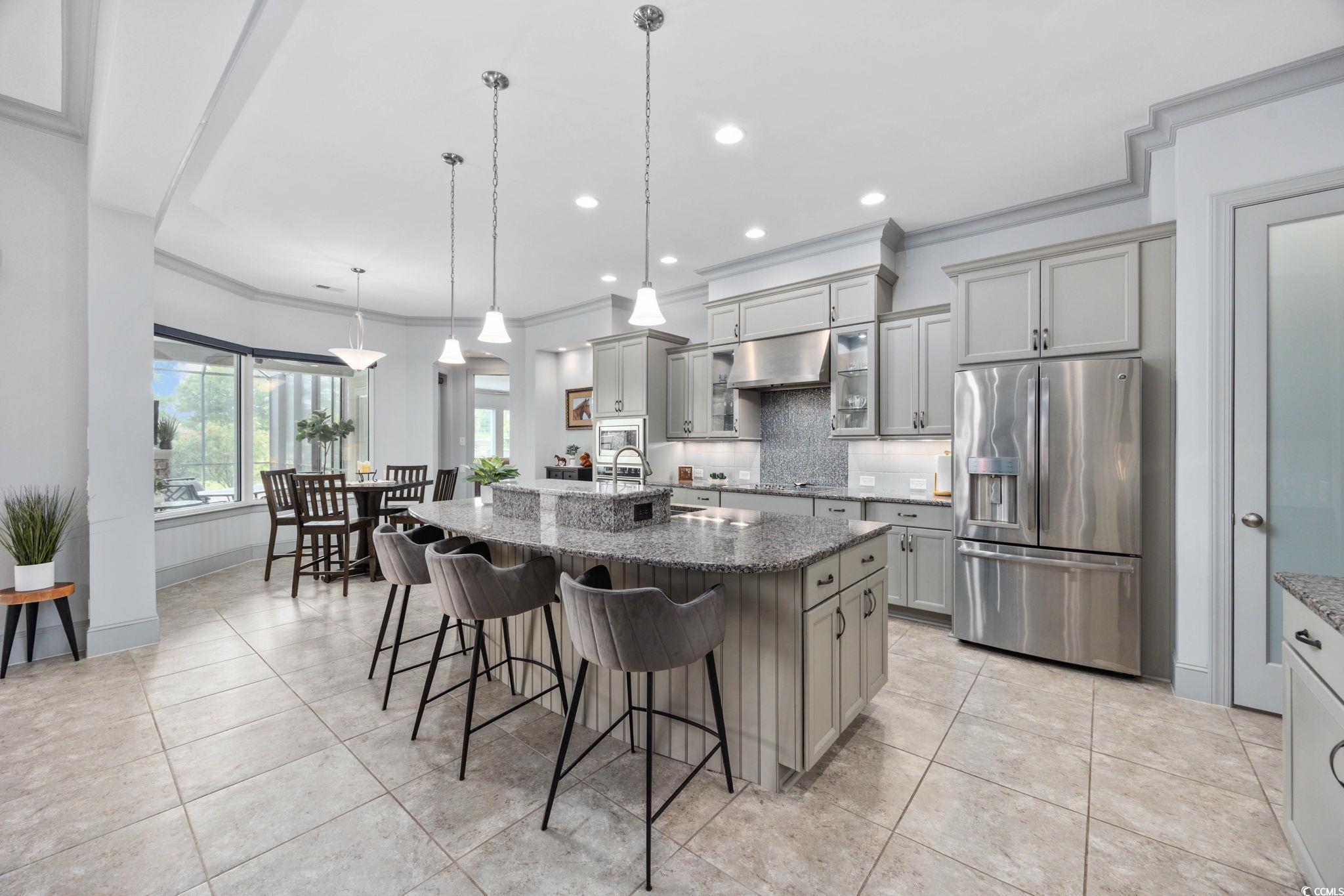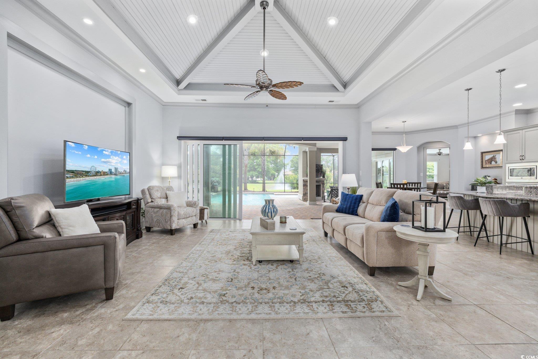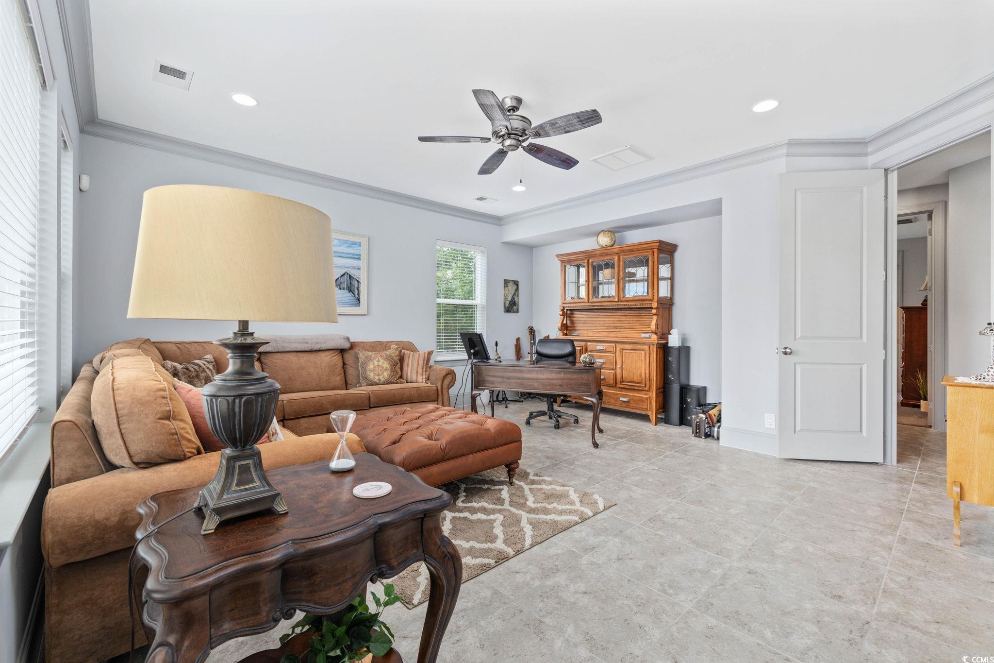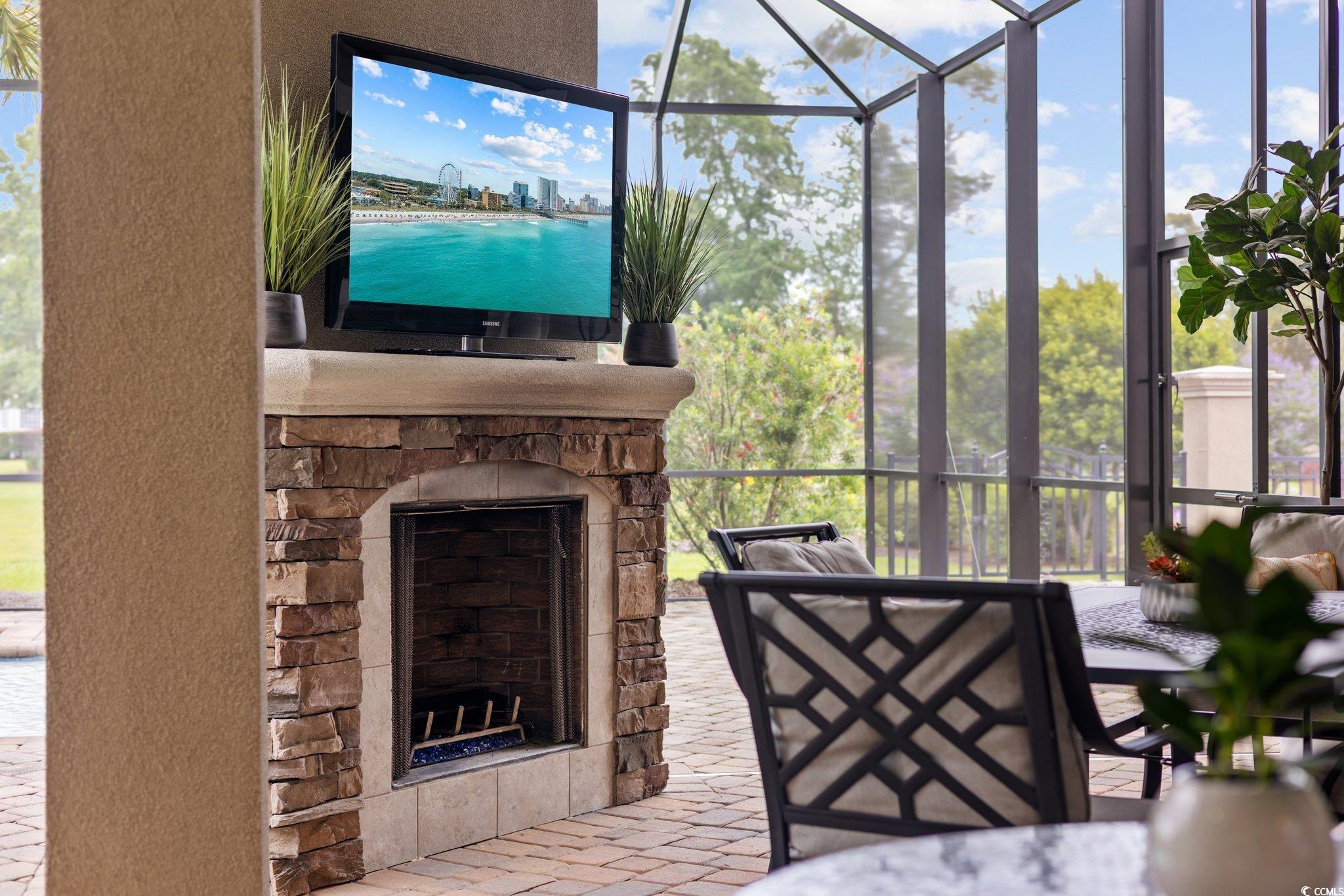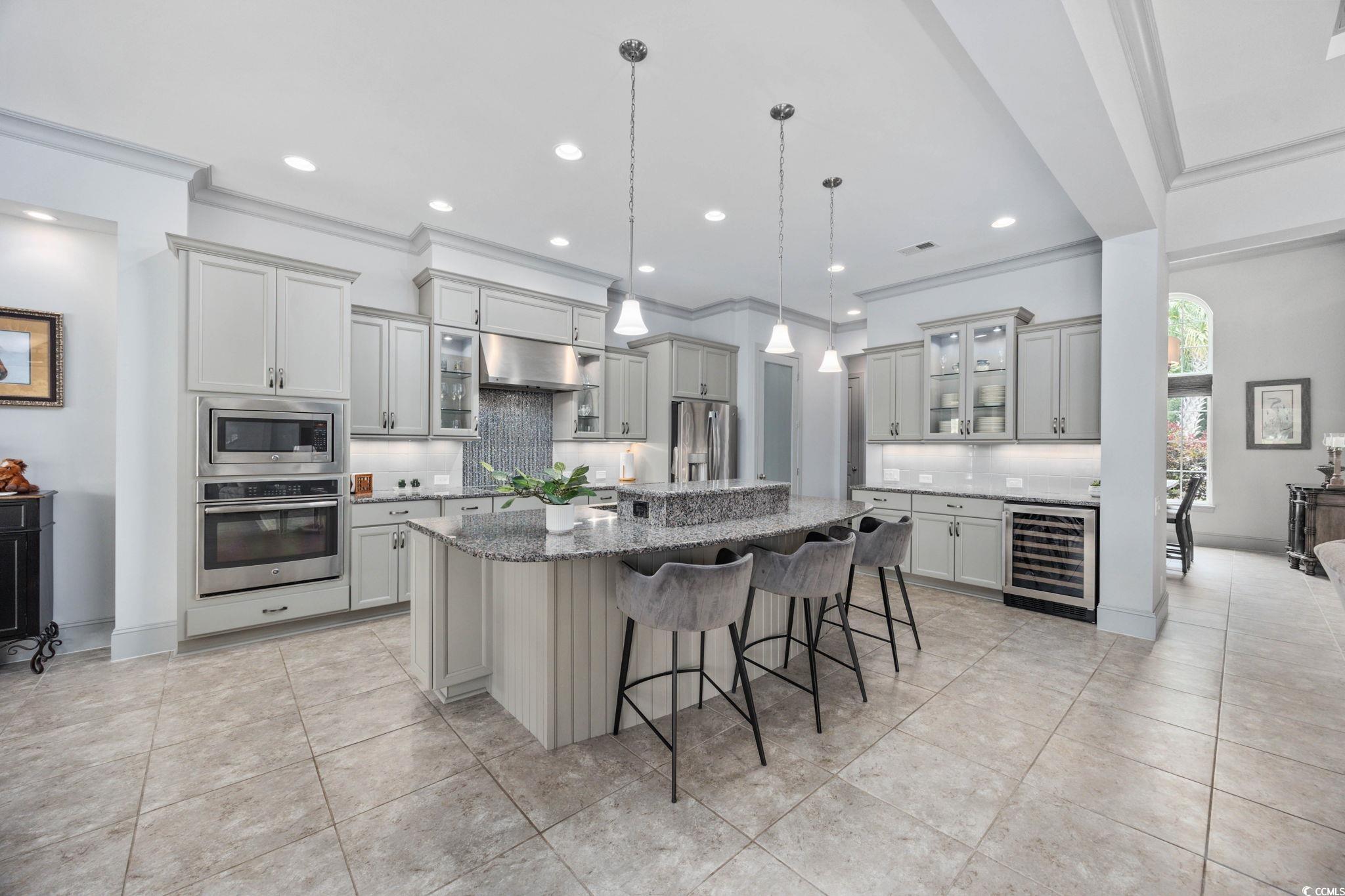 Welcome to this exquisite custom-built residence set within the prestigious double-gated Palermo section of Grande Dunes Golf Village in Myrtle Beach, South Carolina. This immaculate four-bedroom (3 Bedrooms + den/office), three-bath home with a spacious three-car garage offers the perfect blend of refined interior design, luxury features, and resort-style outdoor living. Located on a serene pond lot, the home is thoughtfully designed for both relaxation and entertaining. As you enter through the foyer, you are immediately drawn to the soaring beamed tray ceiling with custom detail and the open-concept layout filled with natural light- ideal ambiance for entertaining and everyday living. The heart of the home is the gourmet kitchen, featuring a large center island ideal for gathering, glass accent cabinetry perfect for displaying fine pieces, a wine cooler, a generous walk-in pantry, and a secondary walk-in pantry just off the spacious laundry room. The kitchen flows seamlessly into the living area where new remote-controlled blinds and oversized sliding glass doors create a welcoming ambiance that connects the indoors with the lanai. The primary suite is a peaceful retreat, featuring double-tray ceilings, a spa-like bathroom with separate dual vanities along with a makeup area, a soaking tub, a large tiled walk-in shower, linen closet, a private water closet and precisely placed windows provide great natural lighting. One highlight is the expansive custom walk-in closet with a custom organizer system. A private door leads from the primary bedroom directly to the screened lanai and pool area. Two guest bedrooms (Bedroom 2 features private en-suite bathroom) offer large walk-in closets while the fourth bedroom serves as a bright and versatile flex space with ample windows and sliding doors to the lanai.This room is ideal as a home office, den, or fourth bedroom, with a designated space for a closet -ready for doors and shelving. Spacious laundry room with washer and dryer offers functionality and style, featuring a utility sink, expansive folding area, extensive cabinetry, and a generous hanging rack to make everyday tasks effortless. Just off the laundry room, a secondary walk-in pantry or utility closet provides convenient storage for household essentials to keep your home beautifully organized. Spacious three-car garage will accommodate multiple vehicles, golf cart, or additional storage. Owners added a professionally coated epoxy floor for durability and easy maintenance, along with new cabinetry for storage. Step outside to your private oasis. The screened lanai is designed for year-round enjoyment, with a cozy outdoor fireplace, ceiling fans, and ample space for lounging and dining. The resort-style saltwater pool has a tanning ledge, deck jets, bubbling spillover hot tub, and ambient LED mood lighting. Mature landscaping and newly planted privacy trees add a lush, tropical backdrop to the outdoor space. Just off the lanai is a fenced private courtyard ideal for grilling or a secure pet retreat. Energy efficient tankless hot water heater. Additional features include a whole-house water softener system, new lanai screen doors, landscape lighting, security system, and pull-down attic storage. Situated within the exclusive Grande Dunes master-planned community, residents enjoy world-class amenities including the 25,000 SF private Ocean Club with oceanfront pools, fine dining, and private beach access. The community also offers an award-winning 18-hole championship golf course, deep-water marina, tennis facilities, fitness centers, on-site dining, and miles of biking and walking trails. All of this is located just minutes from the beach, shopping, restaurants, and medical centers—yet tucked away in a serene, resort-style setting. This is your opportunity to own a luxurious coastal residence that perfectly blends elegance, comfort, and lifestyle in one of the most desirable neighborhoods along the South Carolina coast.