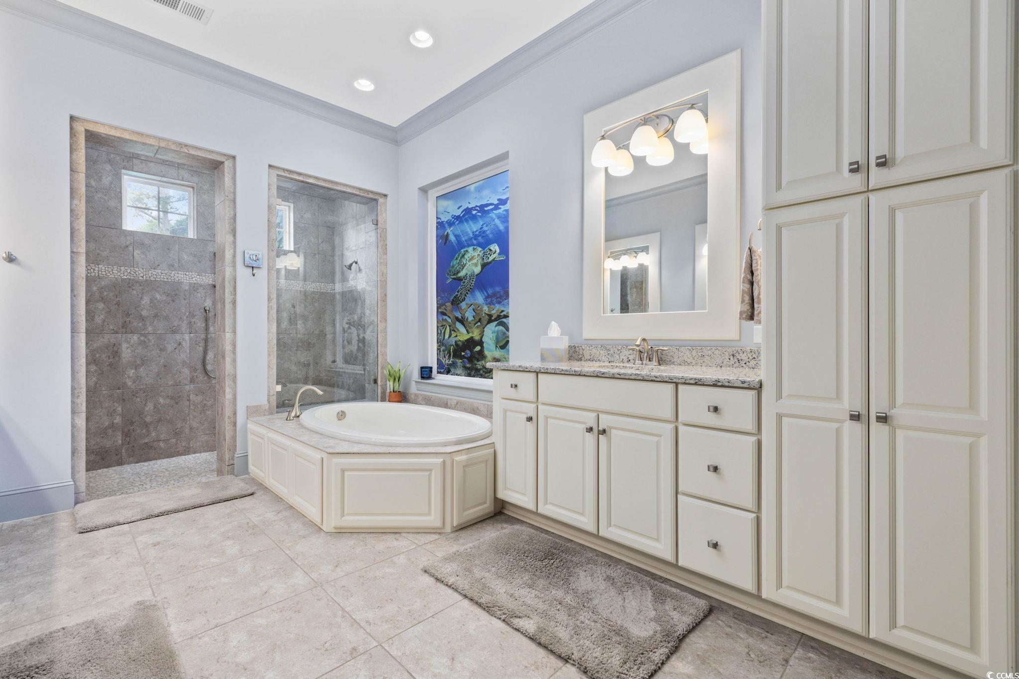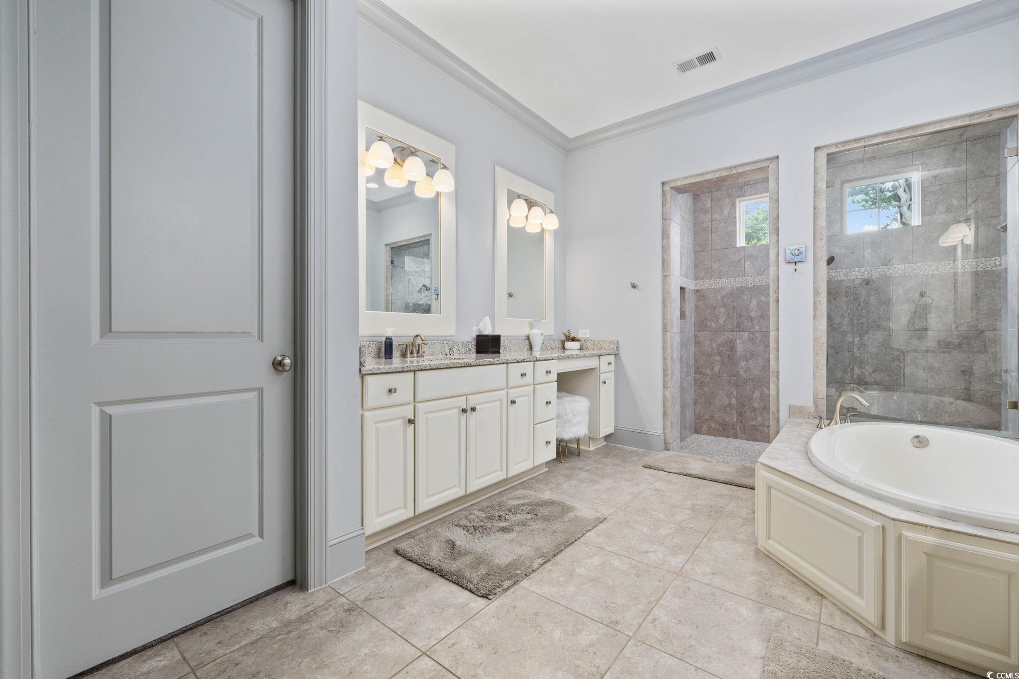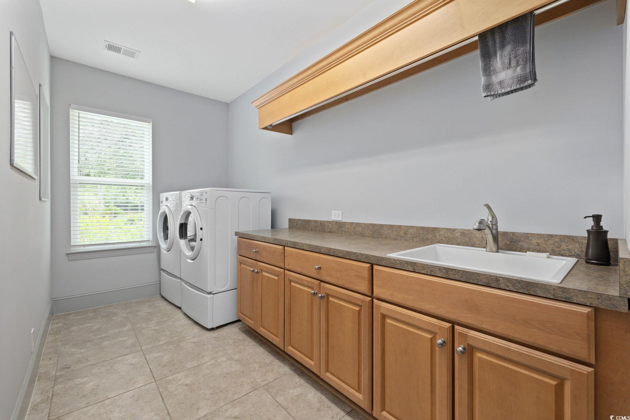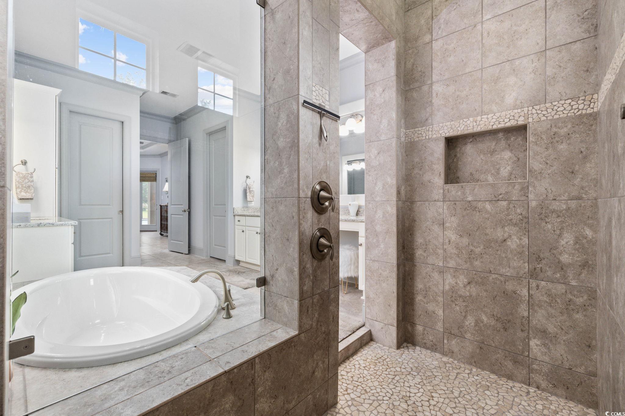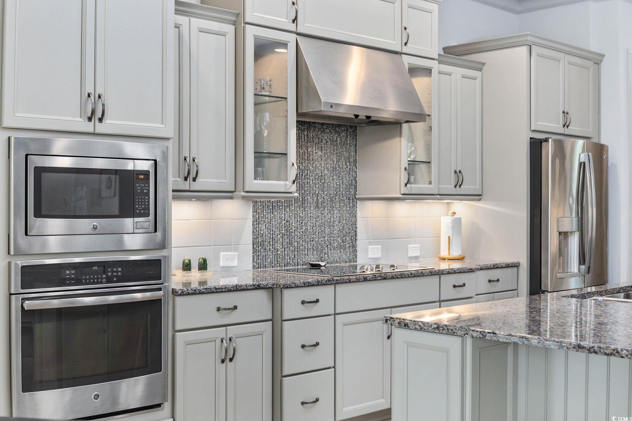 Welcome to this exquisite custom-built residence set within the prestigious double-gated Palermo section of Grande Dunes Golf Village in Myrtle Beach, South Carolina. This immaculate four-bedroom (3 Bedrooms + den/office), three-bath home with a spacious three-car garage offers the perfect blend of refined interior design, luxury features, and resort-style outdoor living. Located on a serene pond lot, the home is thoughtfully designed for both relaxation and entertaining. As you enter through the foyer, you are immediately drawn to the soaring beamed tray ceiling with custom detail and the open-concept layout filled with natural light- ideal ambiance for entertaining and everyday living. The heart of the home is the gourmet kitchen, featuring a large center island ideal for gathering, glass accent cabinetry perfect for displaying fine pieces, a wine cooler, a generous walk-in pantry, and a secondary walk-in pantry just off the spacious laundry room. The kitchen flows seamlessly into the living area where new remote-controlled blinds and oversized sliding glass doors create a welcoming ambiance that connects the indoors with the lanai. The primary suite is a peaceful retreat, featuring double-tray ceilings, a spa-like bathroom with separate dual vanities along with a makeup area, a soaking tub, a large tiled walk-in shower, linen closet, a private water closet and precisely placed windows provide great natural lighting. One highlight is the expansive custom walk-in closet with a custom organizer system. A private door leads from the primary bedroom directly to the screened lanai and pool area. Two guest bedrooms (Bedroom 2 features private en-suite bathroom) offer large walk-in closets while the fourth bedroom serves as a bright and versatile flex space with ample windows and sliding doors to the lanai.This room is ideal as a home office, den, or fourth bedroom, with a designated space for a closet -ready for doors and shelving. Spacious laundry room with washer and dryer offers functionality and style, featuring a utility sink, expansive folding area, extensive cabinetry, and a generous hanging rack to make everyday tasks effortless. Just off the laundry room, a secondary walk-in pantry or utility closet provides convenient storage for household essentials to keep your home beautifully organized. Spacious three-car garage will accommodate multiple vehicles, golf cart, or additional storage. Owners added a professionally coated epoxy floor for durability and easy maintenance, along with new cabinetry for storage. Step outside to your private oasis. The screened lanai is designed for year-round enjoyment, with a cozy outdoor fireplace, ceiling fans, and ample space for lounging and dining. The resort-style saltwater pool has a tanning ledge, deck jets, bubbling spillover hot tub, and ambient LED mood lighting. Mature landscaping and newly planted privacy trees add a lush, tropical backdrop to the outdoor space. Just off the lanai is a fenced private courtyard ideal for grilling or a secure pet retreat. Energy efficient tankless hot water heater. Additional features include a whole-house water softener system, new lanai screen doors, landscape lighting, security system, and pull-down attic storage. Situated within the exclusive Grande Dunes master-planned community, residents enjoy world-class amenities including the 25,000 SF private Ocean Club with oceanfront pools, fine dining, and private beach access. The community also offers an award-winning 18-hole championship golf course, deep-water marina, tennis facilities, fitness centers, on-site dining, and miles of biking and walking trails. All of this is located just minutes from the beach, shopping, restaurants, and medical centers—yet tucked away in a serene, resort-style setting. This is your opportunity to own a luxurious coastal residence that perfectly blends elegance, comfort, and lifestyle in one of the most desirable neighborhoods along the South Carolina coast.