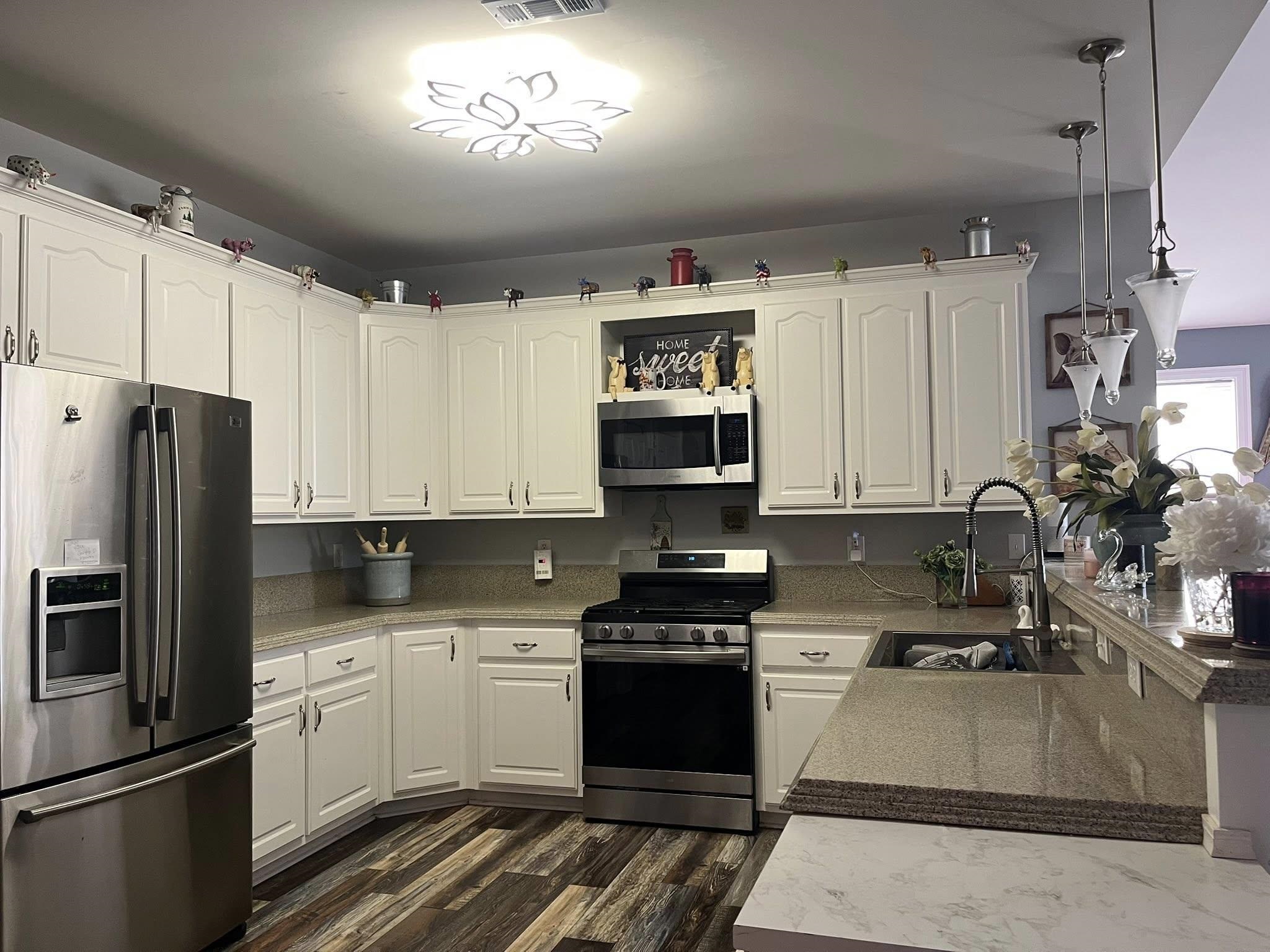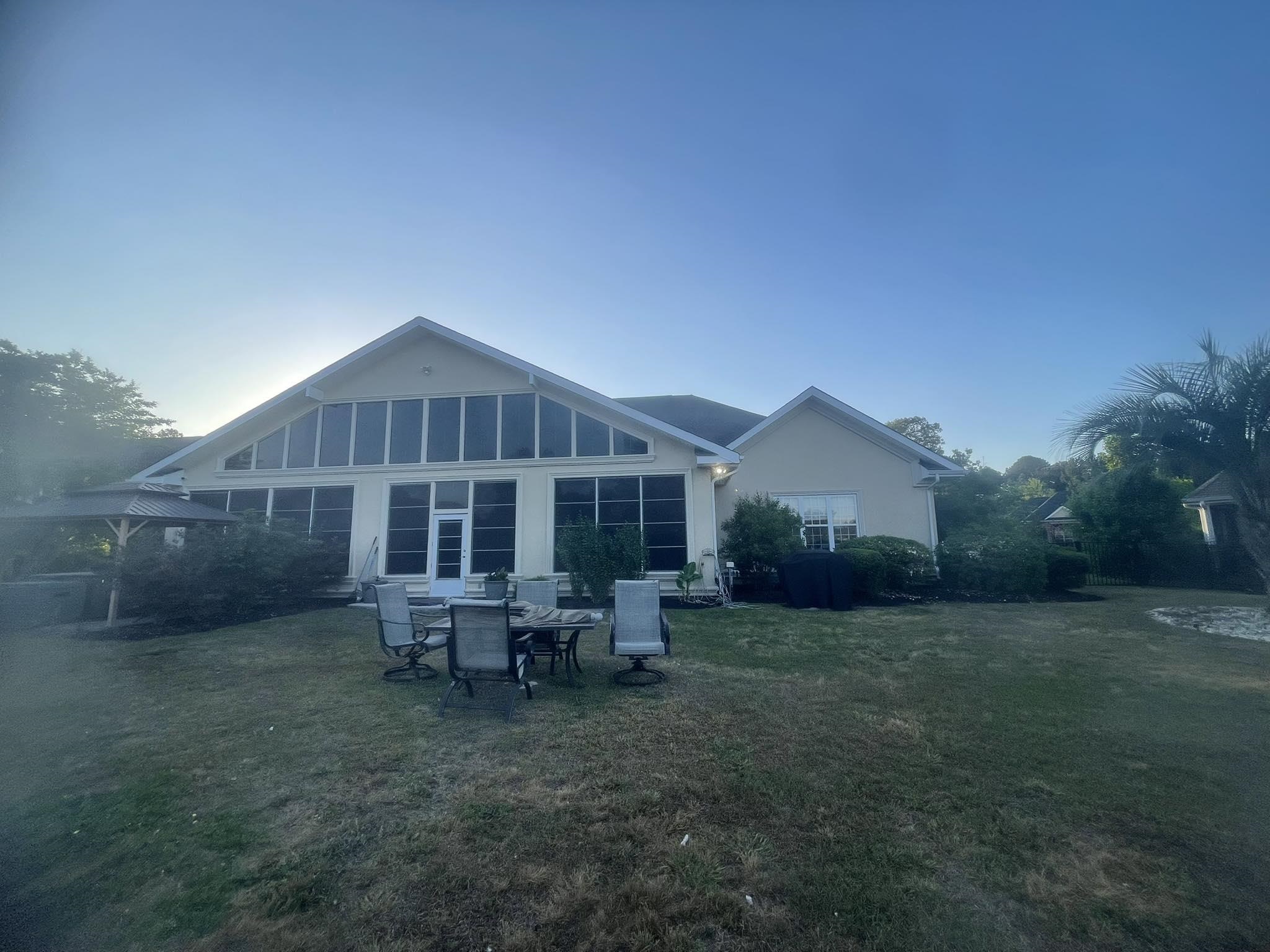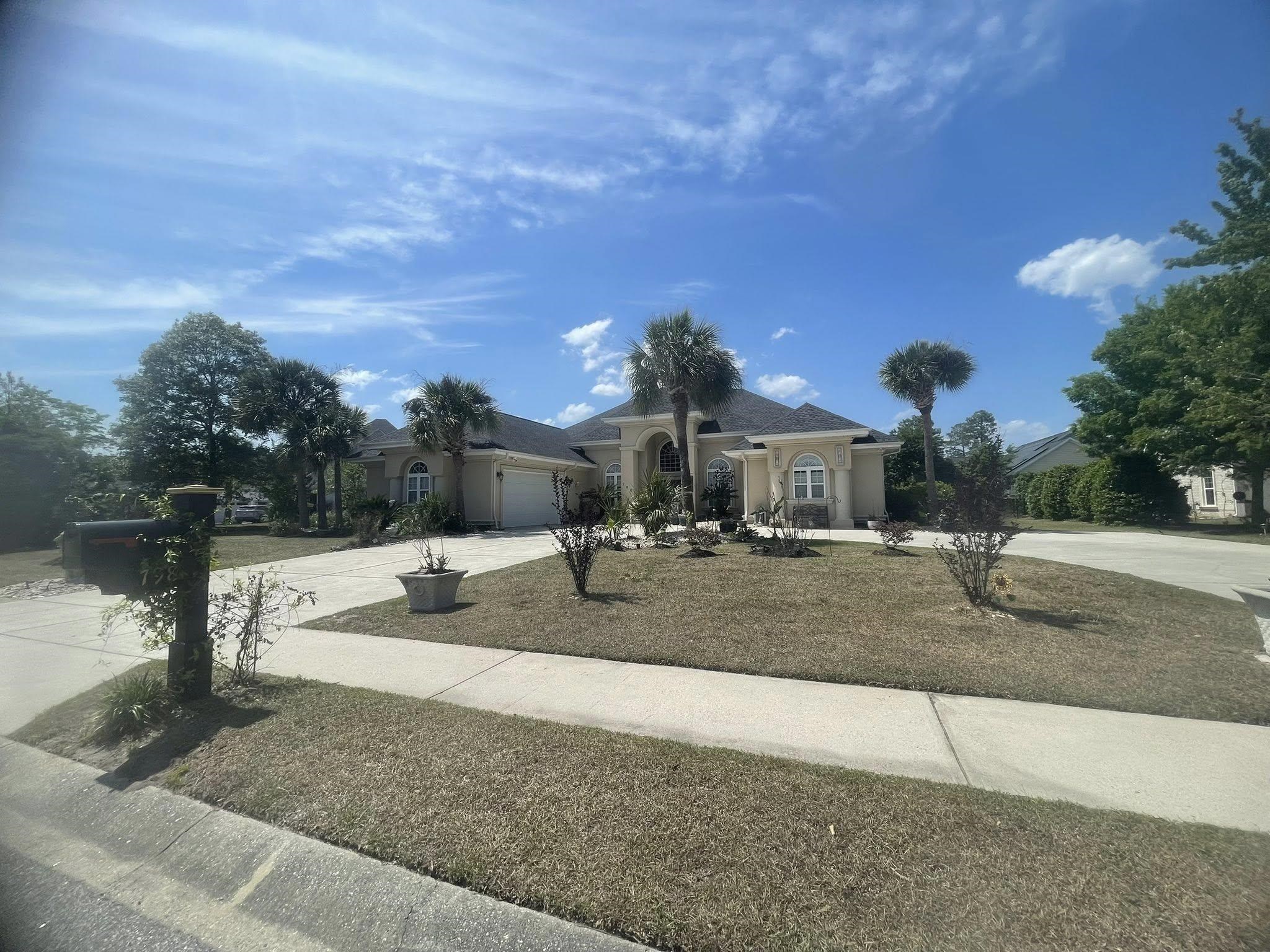 Lake Front Living! Enjoy all the benefits of living on a lake in this beautifully designed ranch-style stucco finished home offering just under 4,500 sq. ft. of thoughtfully planned space. This spacious property features five bedrooms and three full baths, including a luxurious primary suite and a private in-law suite—perfect for guests or extended family. Beautiful Plantation Lakes neighborhood with palm trees and water all around! The home is designed for comfort and efficiency with three HVAC units and four heating and cooling zones, plus an enclosed rear porch with its own dedicated zone for year-round enjoyment. You’ll also find a tankless propane gas hot water heater, underground propane tank, gas cooking in both the kitchen and outdoor area, and a portable generator ready setup plus additional propane lines ready for a future fireplace or pool heater. Inside, the kitchen boasts a high-top bar and flows seamlessly across durable luxury vinyl plank flooring throughout the home. Formal dining room as well. Storage is abundant with a large attic and an oversized 2.5-car garage. Step outside to an expansive circular driveway that can fit 12 or more vehicles and a generously sized half acre lot with fully fenced backyard with dog pen too. The property also includes a private boat slip with dock—ideal for your pontoon and kayaks. Located in a golf cart–friendly community, residents enjoy access to a fabulous amenities center featuring two pools, a playground, tennis / pickleball courts, a fitness center, and waterfront docks. Sunrises and sunsets have never looked better especially when the swans visit!