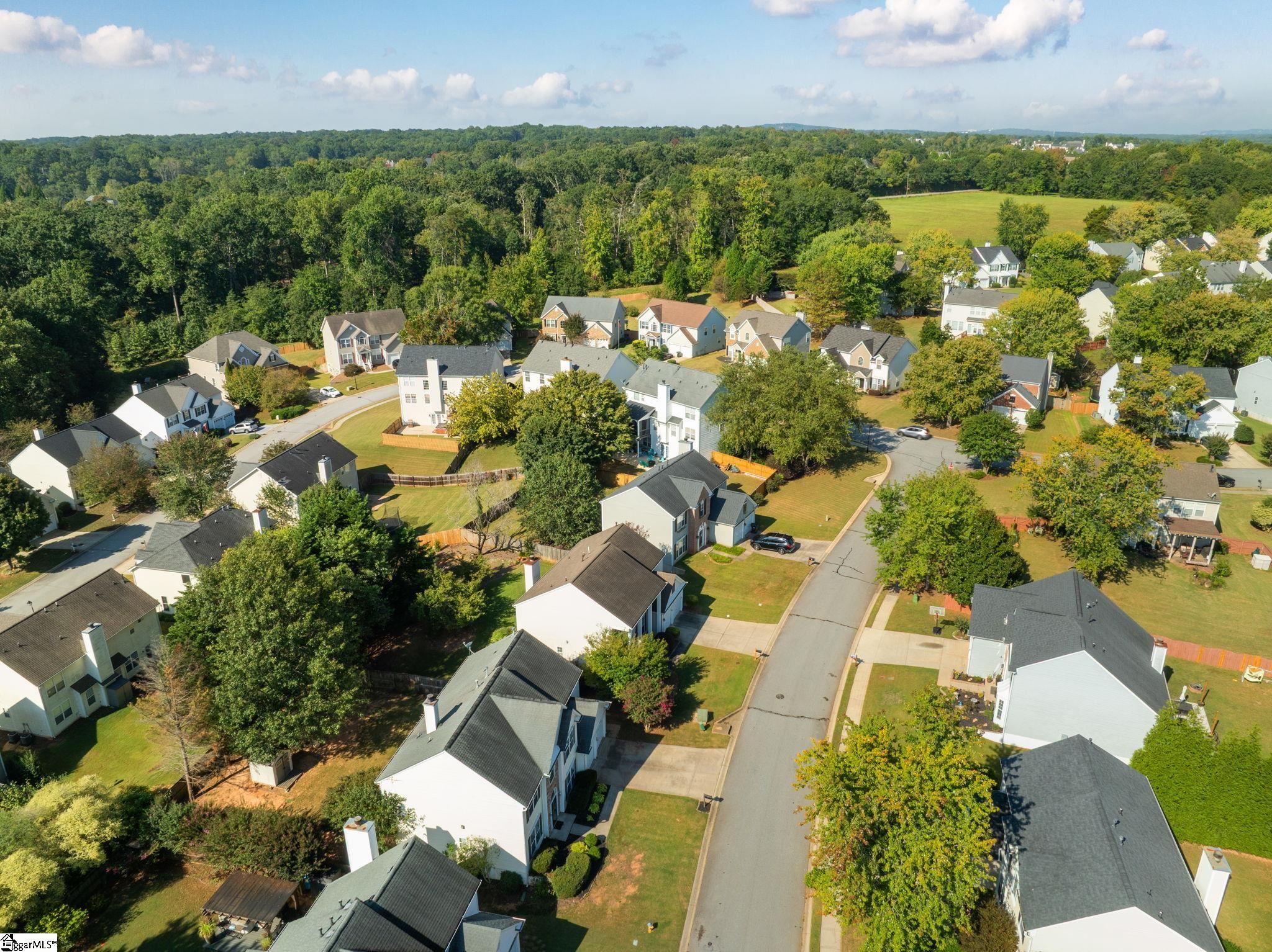 This beautiful 4-bedroom, 2.5-bathroom home, located in a desirable sought after Greenville neighborhood, includes fresh paint and new carpet. Step inside to a 2 story foyer flanked by Living Room/Flex Space and Dining Room showcasing panel trim and chair rail. In addition, an Office with French doors is perfect for working from home or used as a playroom. This open-concept floorplan includes Great Room with lots of natural light, built in cabinet and a wood burning fireplace. Chef's kitchen features window over sink, granite countertops, walk in pantry, SS appliances including a gas range and a French door refrigerator. Upstairs, the Primary Suite offers a trey ceiling, plenty of natural light, sliding doors leading to an ensuite bath with a double vanity, linen closet, and walk-in closet. Three additional bedrooms, and additional full bathroom with two vanities and laundry room complete the upstairs. Outside, the private fenced backyard offers a peaceful retreat with large patio, canopy cover and shed for extra storage. This spacious home is perfect for entertaining family and friends or being your peaceful retreat! Award winning schools. Close to I-85, airport, shopping and dining.