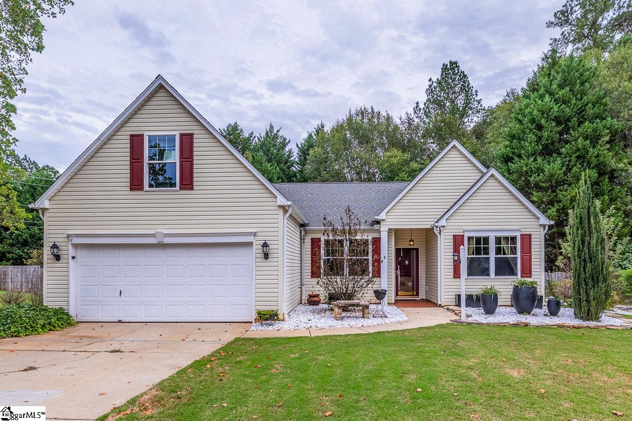 Well maintained 3BR, 2BA w/ additional room over 2-car garage, 9 Ft ceilings, screened porch and fenced backyard. This open floor plan has the dining room with updated lighting, living room with wood burning fireplace, tile in eat-in kitchen with white cabinets and counters. The spacious primary BR has ceiling fan and primary BA w/ garden tub, separate shower, and walk-in closet. Split BR plan with other BRs and BA on other side of house. Additional room over garage could be 4th BR. Out back you'll find a screened porch and large fenced yard. Just minutes away to shopping, Conestee Nature Preserve, downtown Greenville, and more. Come see this one and make it yours!