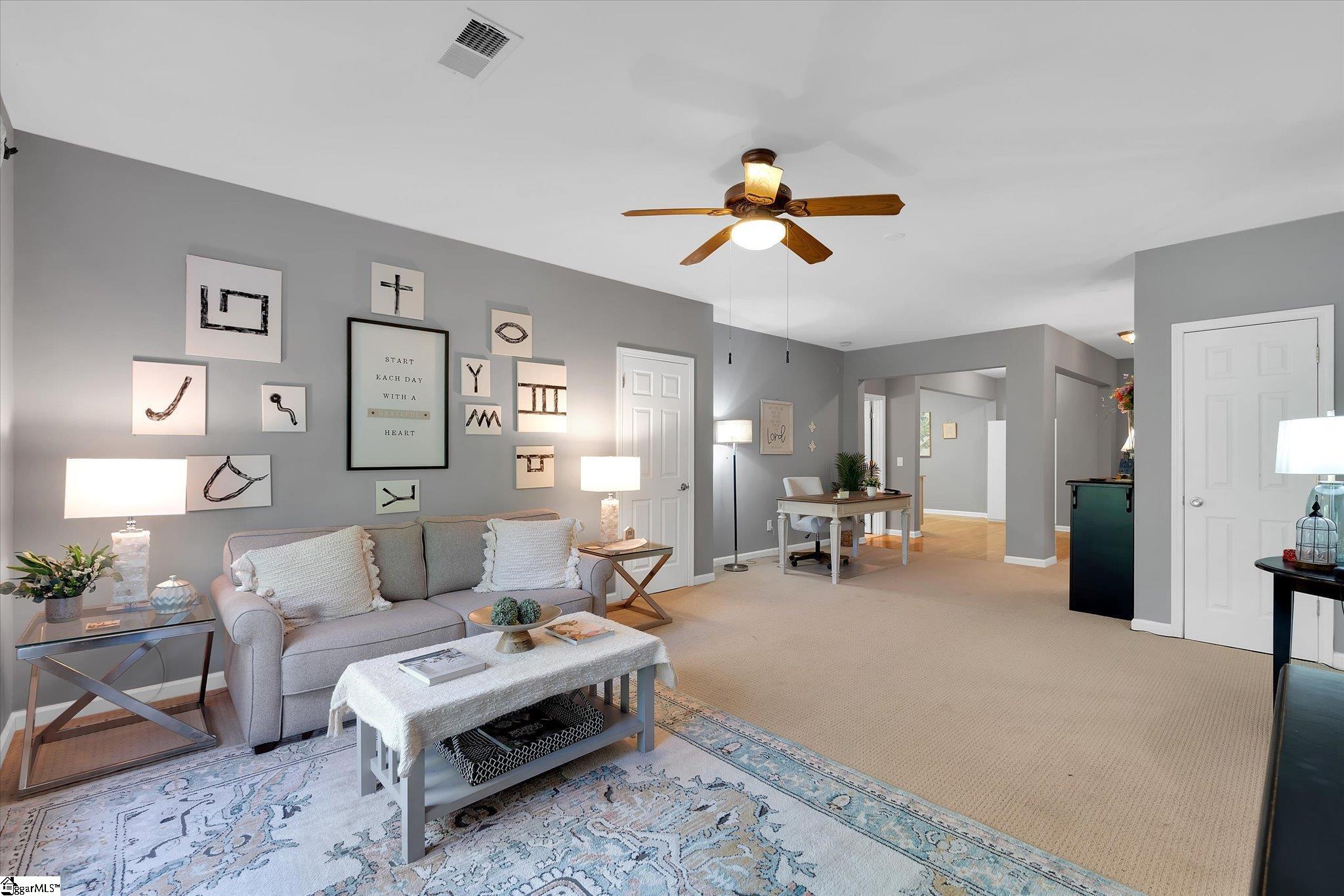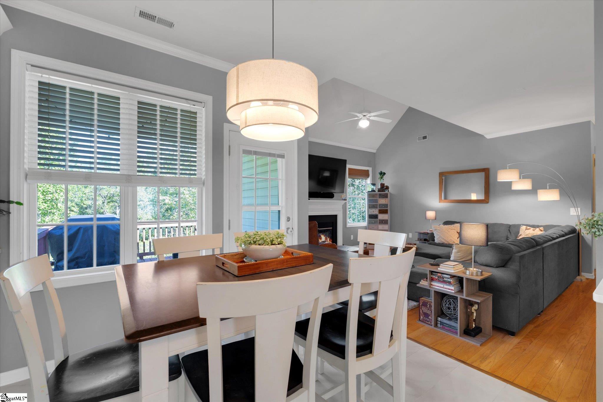 Tucked at the end of a quiet cul-de-sac in Greer, 8 Coulter Court offers 3,642 square feet of thoughtfully designed living space with a setting that feels both private and connected, backing to a peaceful creek and surrounded by mature greenery for a natural escape. Inside, the home features a light-filled layout with vaulted ceilings and an easy flow between the main living areas, anchored by a comfortable living room with fireplace that connects seamlessly to the dining spaces and kitchen. The kitchen has been refreshed with a brand new oven, crisp cabinetry, ample counter space, and a casual dining area overlooking the backyard. The primary bedroom is conveniently located on the main floor, offering a spacious retreat with an en suite bath and a large walk-in closet. Upstairs, additional bedrooms are complemented by a versatile recreation space that works well as a media room, playroom, or second living area. A standout feature of the home is the fully finished secondary living suite with its own private entrance, complete with a living area, bedroom, and functional kitchenette, providing flexible space for extended stays or a private work-from-home setup. Storage is abundant throughout, including an oversized garage and dedicated storage areas to keep everything organized. Outdoor living is equally inviting with an elevated deck, covered patio, and views of the creek and surrounding trees, creating a calm and private backdrop. Well-maintained and beautifully presented, this home offers a rare combination of space, flexibility, and setting in a desirable Greer location.