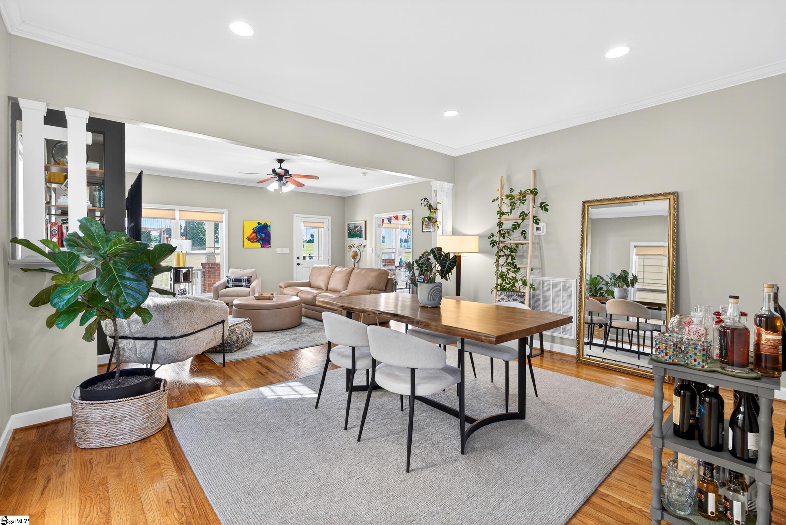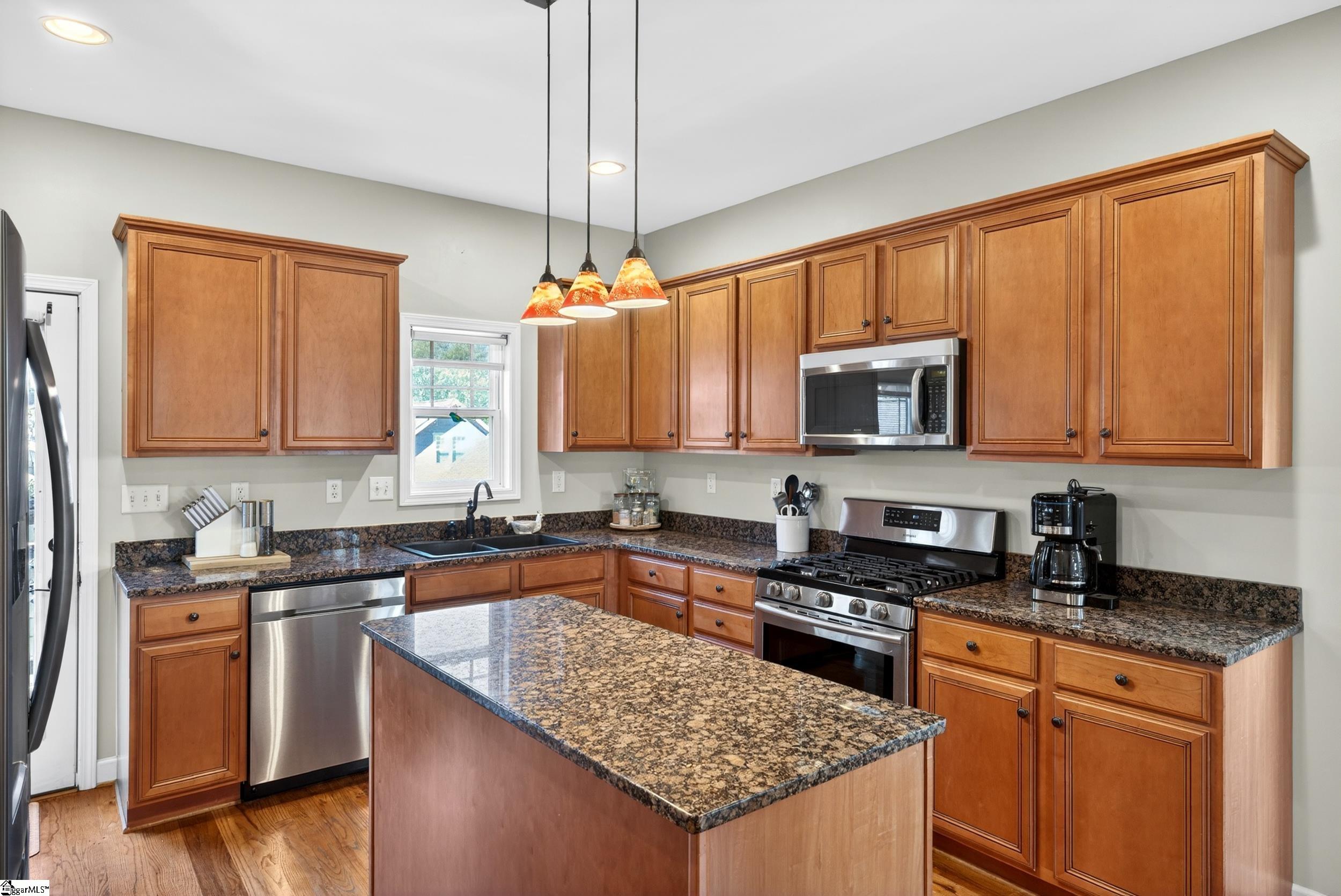 Your move-in ready Craftsman home awaits in the desirable Verdmont Community of Simpsonville. This beautifully maintained 3 bed, 2.5 bath home offers incredible curb appeal with a welcoming covered front porch, perfect for relaxing and enjoying the neighborhood setting. Inside, you’ll find a thoughtfully designed floor plan featuring solid wood flooring, abundant natural light, and a cozy gas log fireplace in the main living area. A dedicated office with French doors and a closet provides flexibility for a potential 4th bedroom or guest space. The kitchen is both functional and stylish, complete with custom cabinetry, granite countertops, and an island offering ample storage and prep space. The laundry/mudroom adds everyday convenience with overhead cabinets and a utility sink. The private main-level primary suite features a spacious walk-in closet, whirlpool tub, and separate shower. Upstairs, you’ll find two additional bedrooms, full bath, and a large flex room (ideal for a media room, playroom, or home gym). Outdoor living shines with a rear deck featuring a pergola and pull-down sunshades for added comfort and privacy, overlooking a brick patio and a detached 2-car garage with an additional parking pad. Major updates include a new roof (2024), updated HVAC systems (2024/2019), and an encapsulated crawlspace with dehumidifier. Enjoy neighborhood amenities including a community pool and clubhouse, all in a convenient location close to shopping, dining, and more. Don’t miss your opportunity to call this one home!