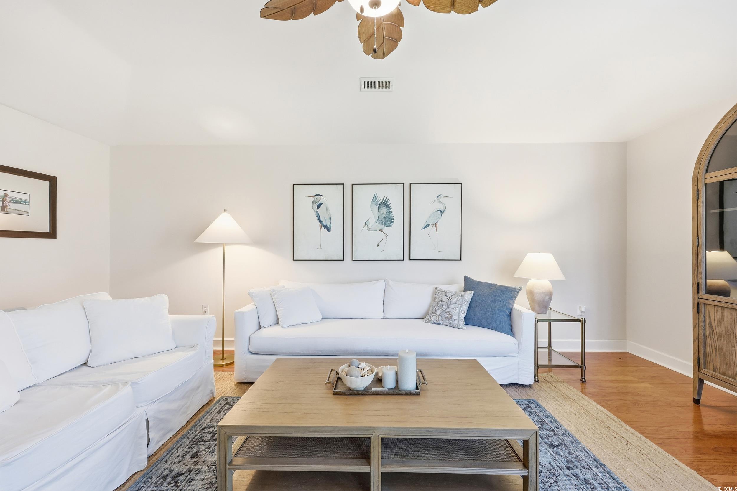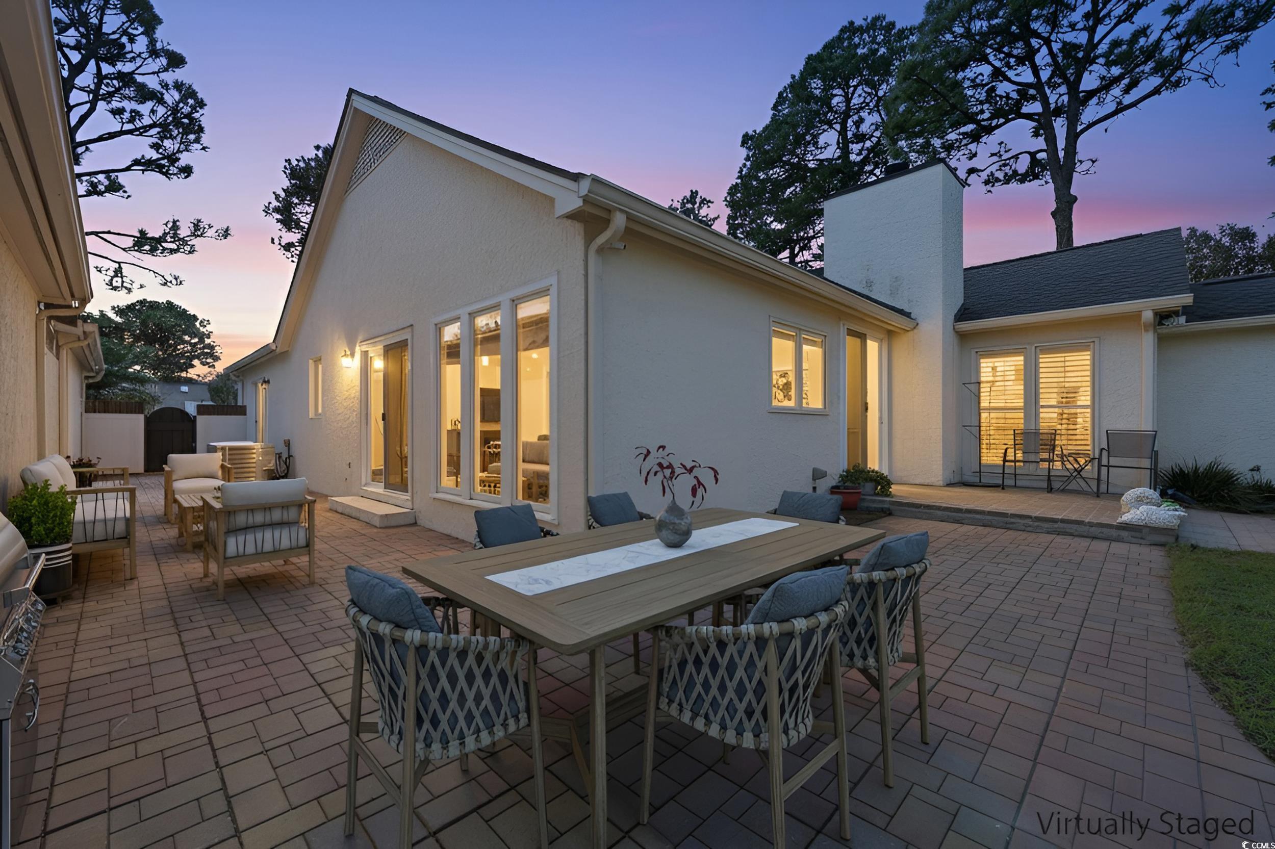 Bright, Beautiful, and Effortlessly Coastal in the Neighborhood Antigua of Myrtle Beach. Welcome to this beautifully maintained and thoughtfully updated three-bedroom, two-bath residence in the highly desirable Antigua community of Myrtle Beach. Perfectly positioned between 79th and 82nd Avenue North, this home offers the ideal blend of privacy, convenience, and coastal charm, all just a short golf cart ride from the beach. Designed for relaxed, single-level living, the interior features an open and inviting layout filled with natural light. The spacious living room showcases hardwood floors, and a cozy fireplace, while expansive windows frame views of the private backyard perfect for outdoor entertaining or adding an outdoor pool. The well-appointed kitchen is both functional and elegant, offering granite countertops, stainless steel appliances, beautiful cabinetry, a breakfast nook, and a comfortable dining area that flows seamlessly into the main living space. The primary suite is a true retreat with 2 walk in closets, an updated en-suite bath featuring dual vanities and a walk-in shower. Two additional bedrooms offer flexibility for guests, a home office, or a creative space. Enjoy multiple courtyards that extend the living areas outdoors, ideal for morning coffee, quiet reading, or evening gatherings. Set on one of the largest lots in Antigua, this home includes a circular driveway for ample parking, irrigation, a walled backyard, and convenient outdoor storage. Within an established community, proximity to shopping, restaurants, golf and the beach, this residence perfectly captures the easy elegance of Myrtle Beach coastal living.