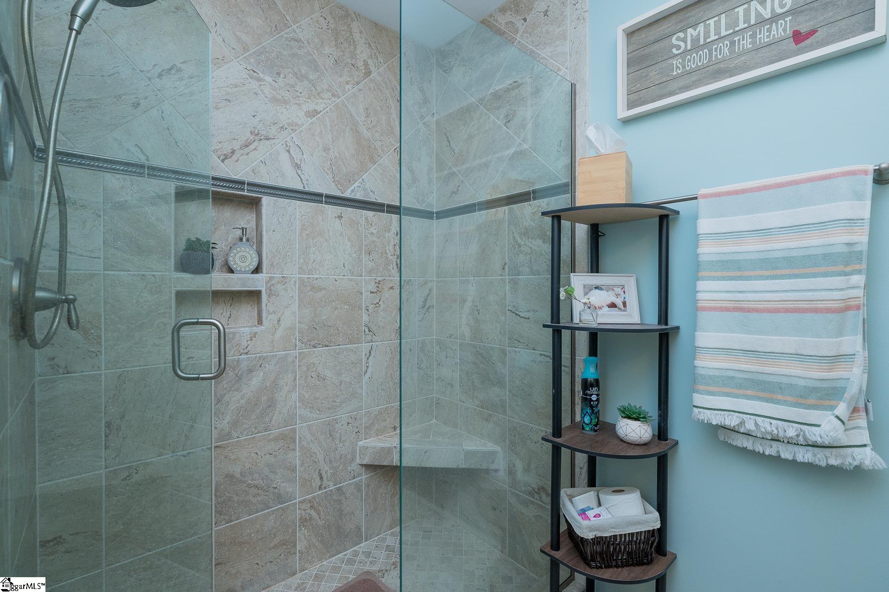 Nestled in the sought-after Taylors and Lake Robinson corridor of Upstate South Carolina, this beautifully maintained single-level home offers the ease of one-floor living without compromise. Hardwood floors guide you through a space defined by warmth — from the dramatic floor-to-ceiling natural rock gas fireplace beneath vaulted ceilings, to the screened porch that opens directly off the living room, framing a serene, tree-lined backyard. A dedicated front room study sets the tone for intentional living — whether used as a home office, reading room, or creative space, it offers the kind of quiet retreat that today's buyers truly value. The thoughtfully updated kitchen balances function and style with crisp white cabinetry, granite countertops, stainless steel appliances, and a cozy built-in breakfast bench. A walk-in laundry room with tile flooring rounds out the practical side of daily life. The primary suite is a true sanctuary, complete with a walk-in closet and spa-inspired ensuite featuring a jetted soaking tub, a walk-in tiled shower, dual granite vanities, and a dedicated makeup counter. Two additional well-sized bedrooms share a beautifully finished full bath with a fully tiled shower and granite vanity tops. From the study to the screened porch, every detail of this home has been designed for the way people truly want to live — all on one level.