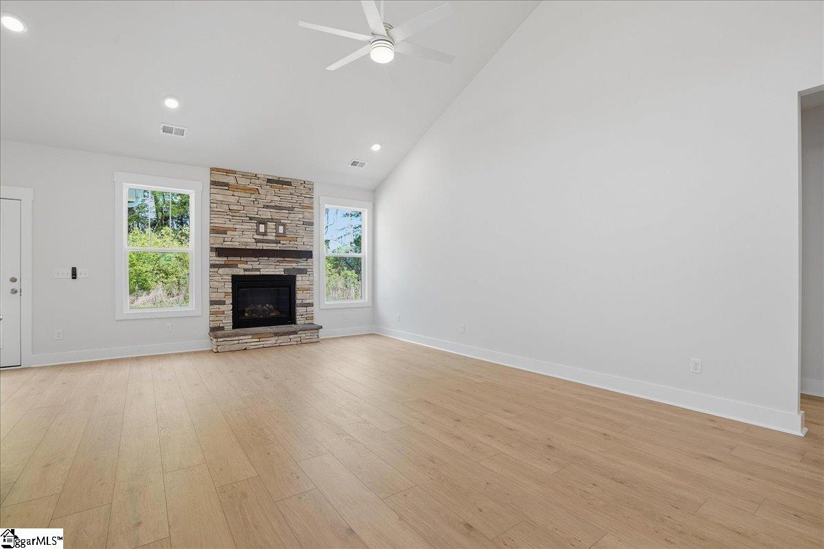 Welcome to Pelham Crossing! The only new single-family homes and villas just off sought-after Pelham Road. The Cooper 3 home offers a thoughtfully designed floor plan that blends modern style with everyday functionality. As you enter into your spacious entry hall, you have 2 bedrooms and a full bath adjacent to the foyer that then leads into your open-concept kitchen and living room. The gourmet kitchen features beautiful white cabinetry, dark Quartz countertops, a center island with farmhouse sink, tiled backsplash, under cabinet lighting, and upgraded stainless steel appliances including a gas cooktop and double wall oven. The kitchen overlooks the breakfast area and family room, creating a seamless flow between the spaces. The living room features high ceilings and tall windows for lots of natural light along with a cozy gas fireplace with stone surround. Off the breakfast room is a covered back porch that looks out over your large backyard. The Primary Suite is situated off the living room and features double vanities, a walk in closet and amazing tiled shower with seat and frameless glass door. Up the Oak staircase you have an additional bedroom with full bath along with a huge multi use room, perfect for a home office or game room. This home also comes with standard irrigation included. Smart home technology, energy-efficient construction,and a dedicated local warranty team ensure lasting convenience and comfort. Nestled in a prime location, Pelham Crossing gives easy access to local amenities, parks, and dining options. With thoughtfully designed floor plans and premier finishes, you'll find a space that suits your lifestyle. Explore the possibilities of living in one of South Carolina's most sought-after areas! Living off Pelham Road also means enjoying exceptional commute times and accessibility. Choosing new homes in this desirable location means embracing a lifestyle filled with convenience and community. Come by today for your personal tour and make Pelham Crossing your new home. See Sales Agent for additional pricing information.