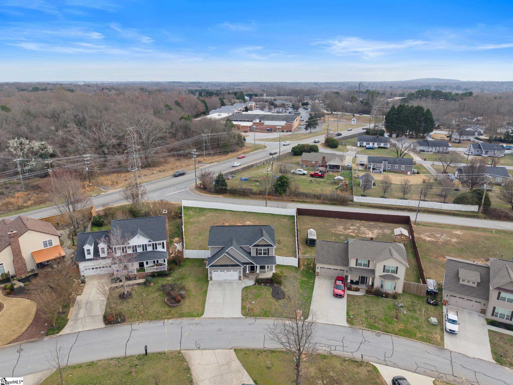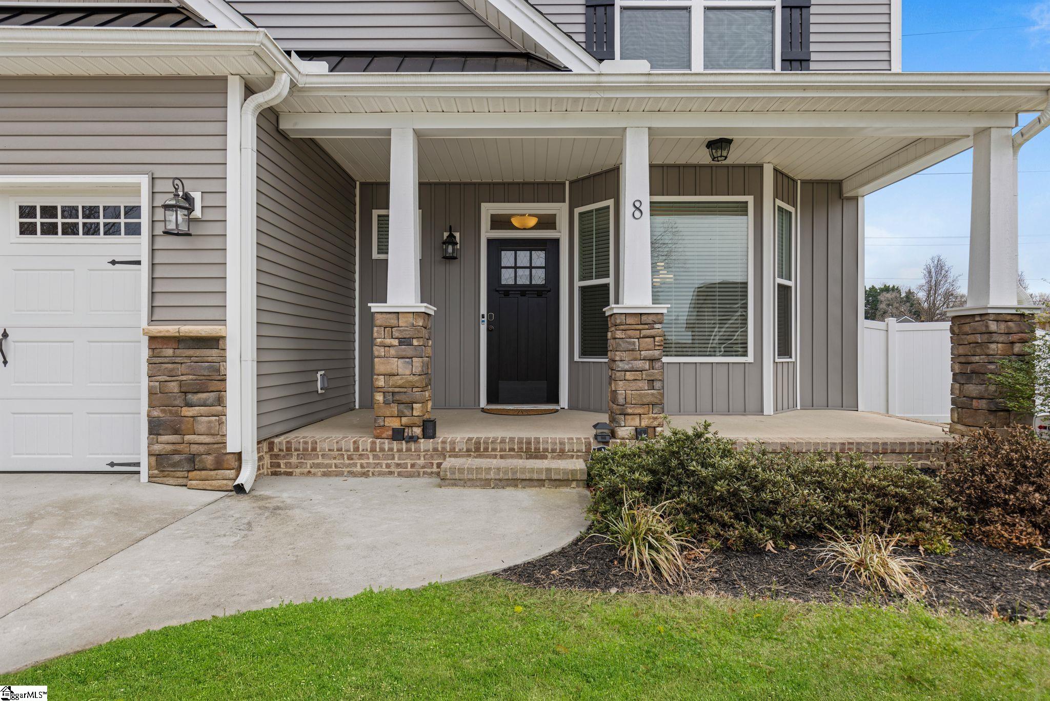 Welcome to this beautifully maintained 4 bedroom, 2.5 bathroom home offering over 2,000 square feet of thoughtfully designed living space — built in 2022 and featuring the rare advantage of NO HOA. From the moment you arrive, you’ll appreciate the partial stone columns, covered front porch, and inviting craftsman-style front door that create warm, timeless curb appeal. Inside, durable LVP flooring flows throughout the entire main level, complemented by elegant rounded corners and a bright bay window that enhances the dining space with natural light. The kitchen is both stylish and functional, featuring granite countertops, neutral cabinetry, and recessed lighting — all open to the spacious great room anchored by an impressive stone hearth gas log fireplace and ceiling fan. Upstairs, all bedrooms are generously sized with comfortable carpeting and ample closet space. The private primary suite offers a relaxing retreat with dual sinks, a stand-up shower, and a deep garden tub. Step outside to enjoy the pergola-covered back porch (which conveys), a large vinyl-fenced backyard perfect for entertaining, and full yard in-ground irrigation for easy maintenance. A gas water heater adds efficiency and convenience. Ideally located just minutes from Eastside YMCA, Harris Teeter, Eastside High School, and the Pavilion Recreation Complex, this home offers comfort, convenience, and modern living in an exceptional location. Move-in ready and waiting for you to call it home.