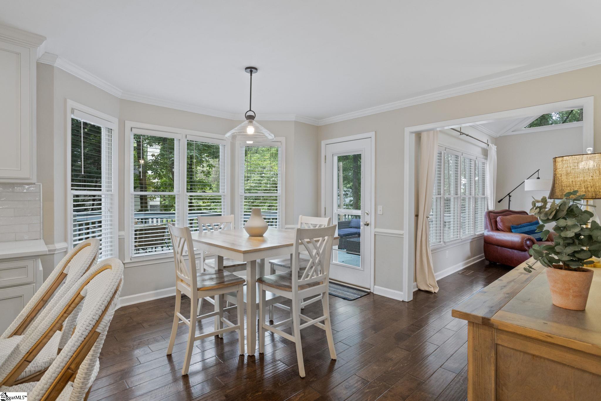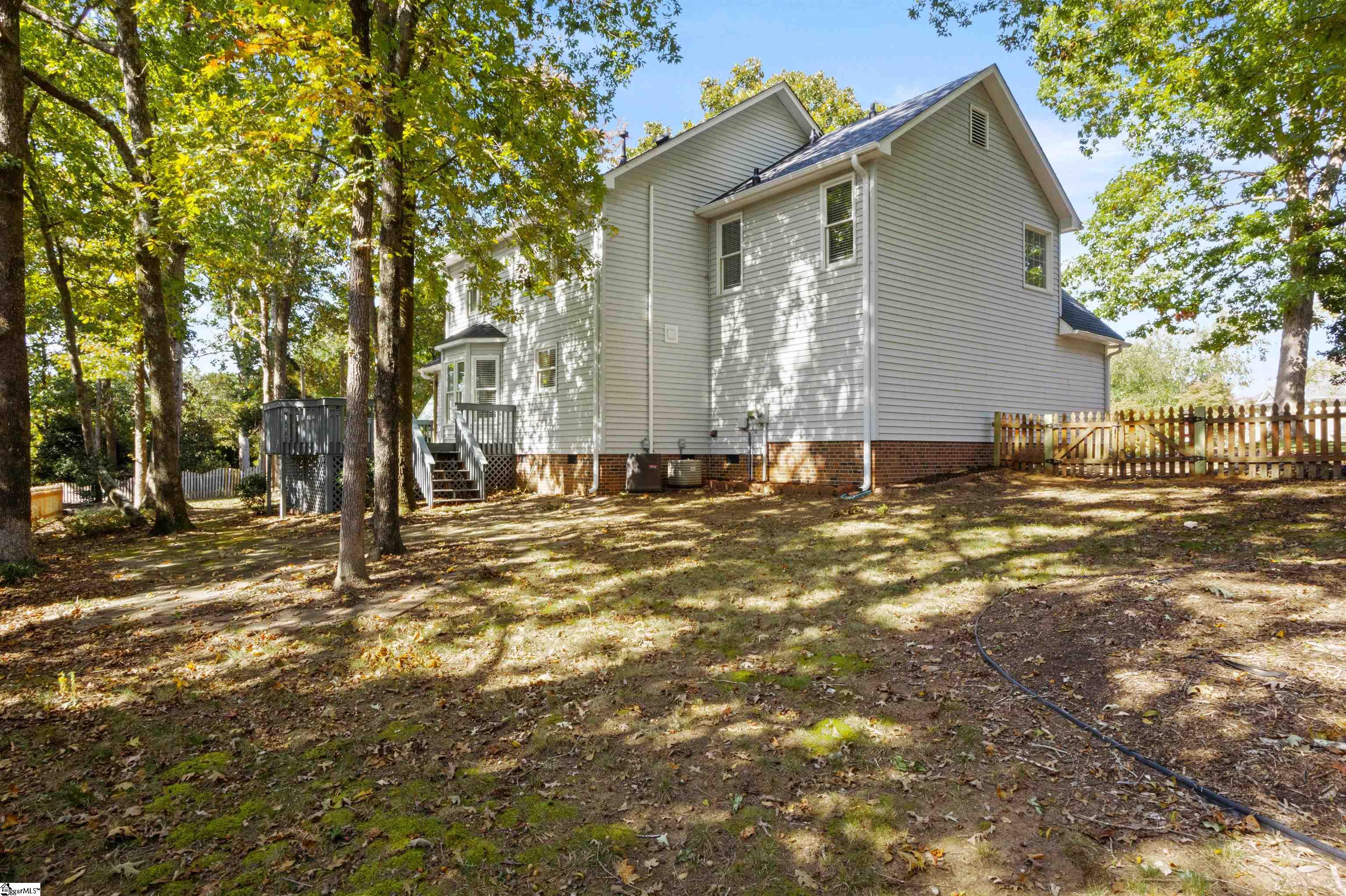 Fresh and sunny, this beautifully updated 4 Bedroom/2.5 Bath home is a rare find in Pebble Creek. Located on a quiet cul-de-sac with mature landscaping, this property has beautiful neutral paint throughout and an abundance of natural light. The kitchen is updated with gorgeous custom cabinets, stainless appliances, quartz counter tops, and tiled back splash. The kitchen has a spacious breakfast room overlooking the deck/back yard and flowing into the large living room with fireplace and gas logs for ease of entertaining. There is also a large dining room located off of the kitchen allowing for more space for guests. Upstairs there are 4 spacious bedrooms, updated Hall Bath, and updated Primary Bath. The Primary suite has a beautiful trey ceiling, crown molding, large walk in closet and large Ensuite Bath. The Ensuite Bath has a new vanity with double sinks, new tile, large soaking tub and separate shower. The fenced back yard and spacious deck are perfect for grilling and enjoying the outdoors. The Laundry Room is conveniently located just off of the kitchen and next to the 2 car attached garage. New architectural roof installed October 2025. This walkable community is conveniently located just 17 minutes from Downtown Greenville.