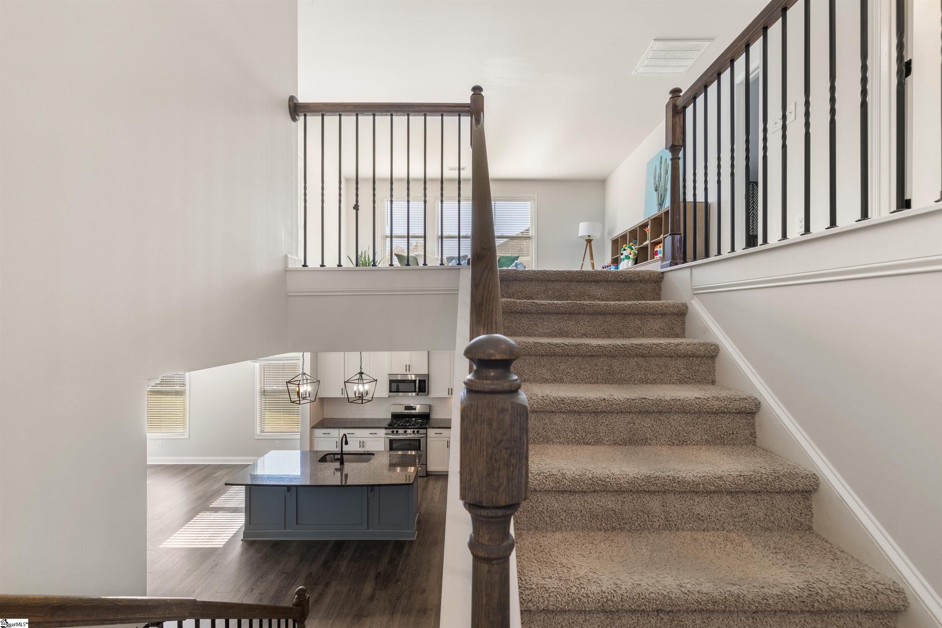 8 Valeria Place is an open-floor plan 4 bed, 3 bath home in Heritage Village and just over 3,200 square feet sitting on a 1/4-acre cul-de-sac and tree-lined lot. A large, beautifully updated home in the heart of Simpsonville with privacy to boot. Built in 2020, this home is in wonderful condition and includes a whole home generator system by Generac. As you walk through the front door, the 9-foot ceilings provide a sense of space, while the wood floors create a sense of warmth. A formal dining or office space sits just to your right as you come inside with a butler's pantry leading to your open-concept kitchen and living spaces. Stainless appliances, granite countertops, and a large island are wonderful for everyday use and entertainment. The main floor also holds one guest bedroom, a full bathroom, and the mudroom that is just inside the 2-car garage where your tankless hot water heater resides. Heading upstairs will lead you to an incredible loft with the master on one side of the house, and 2 guest bedrooms and a walk-in laundry room on the other. The master bedroom has a sitting room perfect for a home office, reading space, or private relaxation at the start or end of your day. The master bedroom also has a long walk-in closet and master bathroom with dual vanities and a separated tile shower and garden tub. The backyard is perfect for family and friends. Open, level, fenced, and overlooking trees... not your neighbors' homes! With a patio (part covered) the length of the house and a stone fireplace with grill inserts built-in, there's nothing this home needs other than it's next family. This home is priced to sell so take advantage before someone else snags it up. Open House Schedule: Saturday, Oct 18 | 1:00-3:00pm, Sunday, Oct 19 | 12:00-2:00pm, Saturday, Oct 25 | 1:00-3:00pm