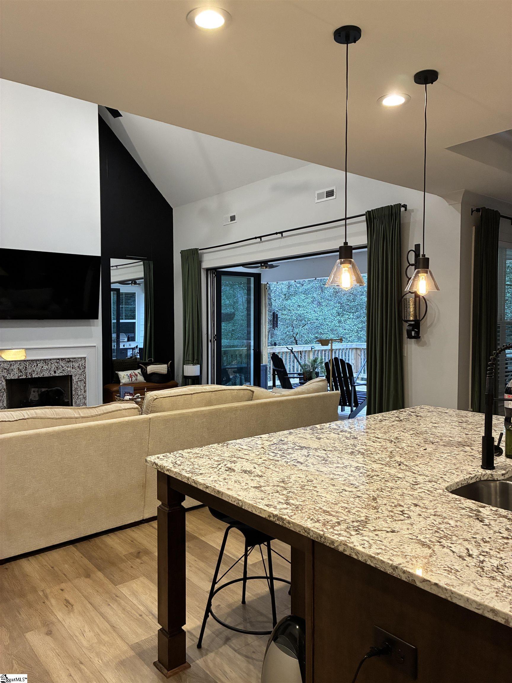 Modern design meets custom craftsmanship in this 1-story ranch tucked into an established neighborhood on a spacious 1.14-acre lot. Offering 1,920 sq. ft., 3 bedrooms, 2 baths, and an oversized 2-car garage, this home was thoughtfully designed for both everyday comfort and effortless entertaining, with large patio doors that fully open to extend the living space outdoors for seamless indoor-outdoor living. The open layout centers around a gourmet island kitchen with pot filler, custom maple cabinetry, pendant and under-cabinet lighting, and seating for five. Vaulted ceilings elevate the family room, while tray ceilings add a refined touch to the dining area and primary suite. The primary retreat features a frameless walk-in shower, dual vanities, and a freestanding garden tub. Durable LVP flooring flows throughout, paired with granite countertops in the kitchen and baths. A full laundry room includes a sink and folding table for added convenience. Enjoy a peaceful, private backyard setting. Low-maintenance fiber cement siding, a blend of metal and shingle roofing, and an HOA with no annual dues complete this one-of-a-kind property.