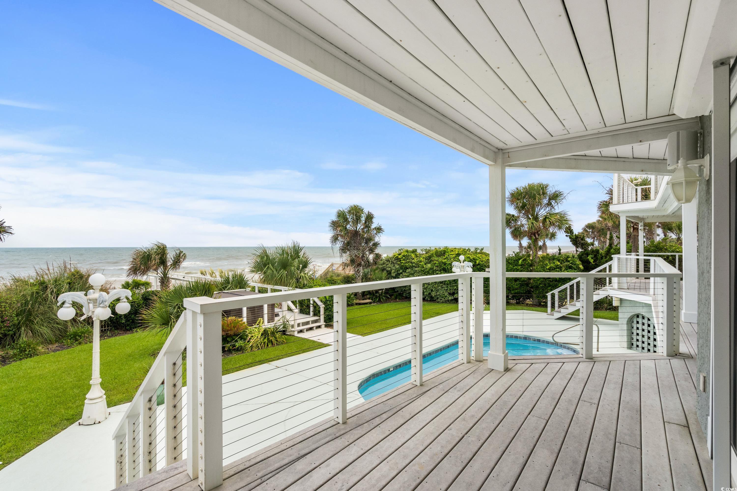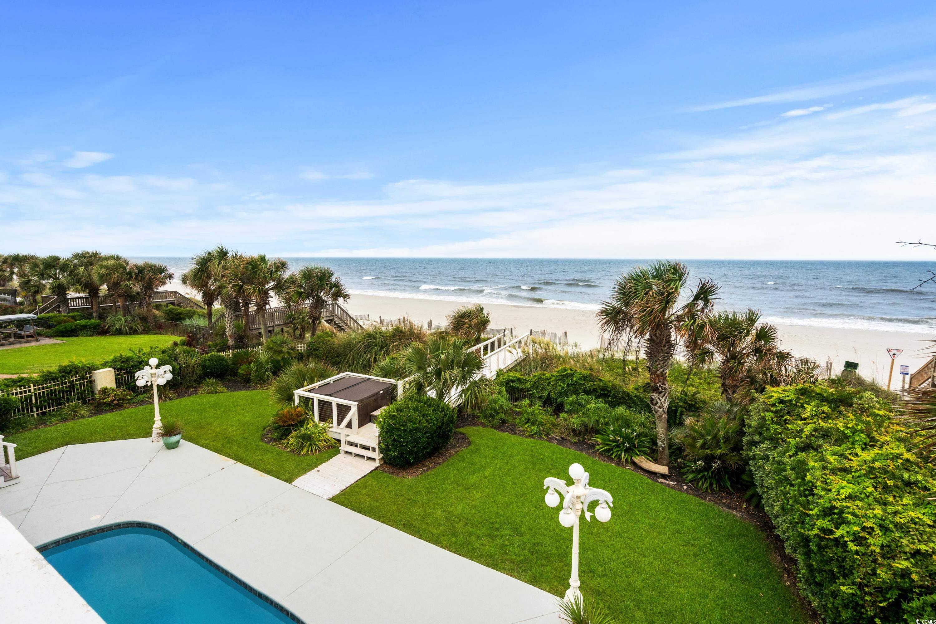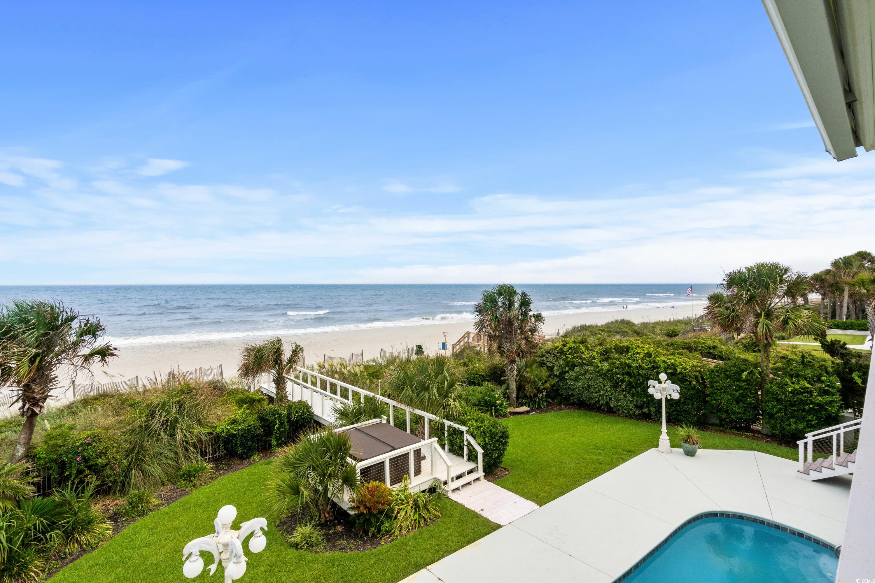 Priced to sell!! Welcome to your dream beachfront property! Nestled along the pristine shores of Myrtle Beach, this stunning home features 5 bedrooms, 5.5 bathrooms, epitomizing coastal luxury and sophisticated living. Located on Beech Drive—one of the quietest, most private, and serene streets along the Golden Mile—this home offers unmatched tranquility in a premier location.Located in the highly sought-after Golden Mile, one of Myrtle Beach's most prestigious areas, this residence offers an unparalleled lifestyle combining modern elegance with breathtaking ocean views. As you step inside, you are greeted by a grand foyer leading into a spacious open-concept living area, bathed in natural light from floor-to-ceiling windows. The living room, with its high ceilings and contemporary design, seamlessly blends comfort and style, creating the perfect space for both relaxation and entertaining. The kitchen boasts the most beautiful ocean views, making it ideal for hosting and socializing. Imagine preparing meals while gazing at the ocean, creating an inviting and serene atmosphere. The master suite, located on the second floor, is a private oasis offering serene ocean views, 2 walk-in closets, and a luxurious en-suite bathroom with dual vanities, a walk-in shower, and a sauna. There is another room walking through the bathroom that would be a perfect spot for a gym or exercise room. The second floor also includes two additional bedrooms and a bonus room. Step outside to the expansive balcony from the master suite, where you can enjoy the sound of the waves and the gentle sea breeze. This outdoor space is perfect for dining, sunbathing, or simply unwinding with a good book while taking in the panoramic views of the Atlantic Ocean. This property is just moments away from world-class dining, shopping, and entertainment options. Schedule your private showing today! This home can be your permanent residence, a vacation home, or the oceanfront lot where you plan to build your dream home. Your options are truly open. Come see this exceptional home and discover what makes this location truly special.