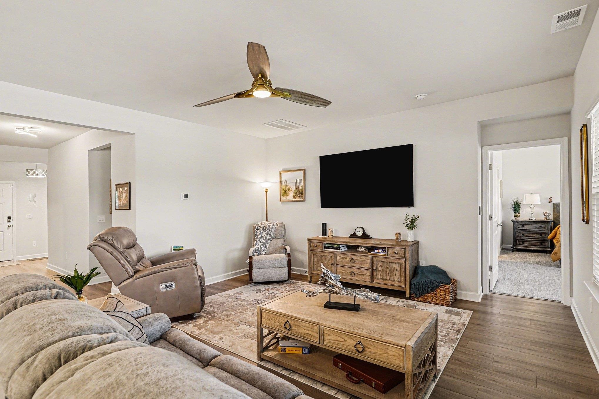 Welcome to your dream home in the highly sought-after Clear Pond community of Myrtle Beach—where comfort, style, and location come together seamlessly. This beautifully maintained 3-bedroom, 2.5-bath home truly shows like new, reflecting the pride of ownership throughout. From the moment you step inside, you’ll notice the bright, airy feel and thoughtfully designed open-concept living space, enhanced by contemporary fixtures and an inviting, modern aesthetic. The heart of the home is a stunning chef’s kitchen, complete with upgraded LG appliances, sleek quartz countertops, a beautifully tiled backsplash, a spacious center island with breakfast bar, and a generous pantry—perfect for both everyday living and entertaining. The main living areas flow effortlessly, creating a warm and welcoming environment. The primary suite is a true retreat, featuring elegant tray ceilings, a custom-designed walk-in closet, and a luxurious ensuite bath with dual vanities and an extended walk-in shower. Two additional spacious bedrooms are connected by a convenient Jack and Jill bathroom, while a versatile flex space offers the perfect spot for a home office, playroom, or hobby area. Step outside to relax on the extended, fully screened rear patio and take in the peaceful lake views. The backyard is truly exceptional—set on a rare 0.22-acre lot at the very end of a quiet cul-de-sac, offering privacy that is hard to find and a setting that makes this home stand out. The exterior has been just as thoughtfully designed, with a fully fenced yard featuring two entry gates, an in-ground sprinkler system on an automatic timer servicing the entire yard, and attractive landscaping accented by pebble stone beds and underground drainage for both beauty and function. The extended driveway provides ample parking, and the garage is a standout with epoxy flooring, painted walls, and overhead shelving for excellent additional storage. Even the attic space has been carefully considered, offering extra storage with foamed insulation that helps maintain a consistent temperature year-round—never fluctuating more than about 10 degrees from the main living area—adding both efficiency and practicality. Residents of Clear Pond enjoy access to resort-style amenities, including two pools, a clubhouse, fitness center, walking trails, and a playground—all just minutes from shopping, dining, and everything the Carolina Forest area has to offer. Beautifully photographed, yet even more impressive in person! Don't miss your opportunity to own one of the most desirable lots in Clear Pond.