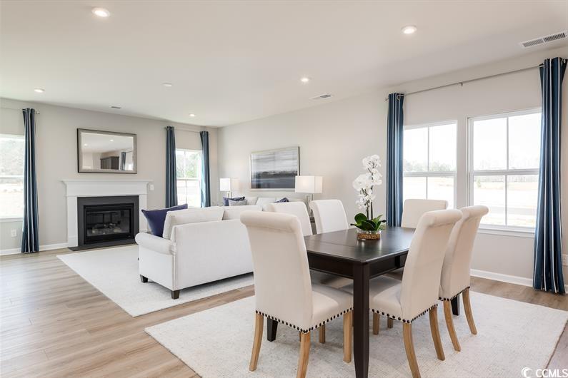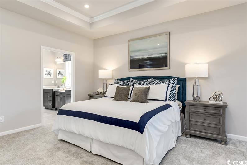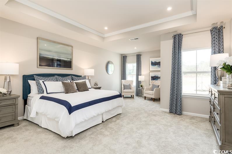 Indigo Bay offers a serene, gated community in the heart of Carolina Forest with tree-lined homesites and stunning views of a 50+ acre lake. Enjoy resort-style amenities including a saltwater pool, clubhouse, dog park, fitness center, pickleball courts, and kayak/paddleboard launch. Choose from coastal-inspired homes with James Hardie siding, masonry accents, and options from single-level ranch to spacious two-story designs. Personalize your home with luxury finishes and take advantage of the 3-car garage for extra storage, a gym, or golf cart space. Convenience is just minutes away—Marketplace at the Mill, local dining favorites, and Grand Strand beaches are all nearby, along with plenty of golf courses. Elevate your lifestyle at Indigo Bay—where custom homes meet vibrant living! The Palladio Ranch single-family home is a masterpiece of main-level living. A large foyer welcomes you, with a spacious bedroom and bath to one side. The gourmet kitchen with an island and walk-in pantry flow effortlessly to the dinette and family room, which has enough space for gatherings of all types. A versatile flex space can be converted to another bedroom. Your luxurious main-level owner's suite is a true retreat, with dual vanities and an enormous walk-in closet.