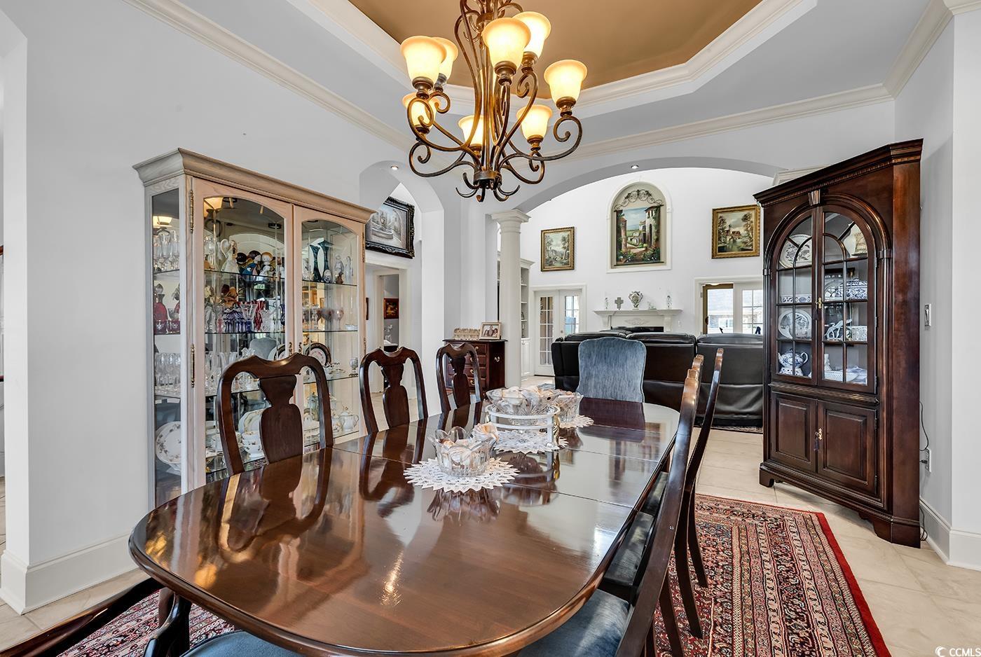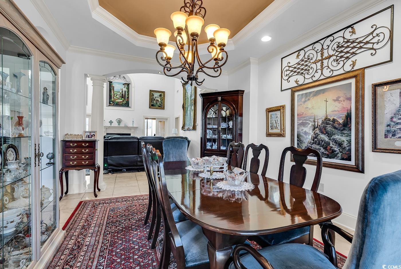 Positioned within the gated Bluffs on the Waterway community in the heart of Carolina Forest, this custom residence delivers refined coastal living with a thoughtful balance of elegance, comfort, and function. Curb appeal sets the tone immediately, with architectural detailing and craftsmanship that carry seamlessly throughout the home. Inside, expansive living spaces are filled with natural light, enhanced by soaring ceilings, detailed crown molding, and coffered accents that elevate every room. The open kitchen is designed for both daily living and entertaining, featuring granite countertops, stainless steel appliances, generous cabinetry, an oversized work island, and a large walk-in pantry. A breakfast area flows naturally into a beautifully appointed keeping room with custom cabinetry, wine storage, and a built-in wine cooler, creating a warm and inviting gathering space. The main living area is anchored by a fireplace and dramatic ceiling height, offering a welcoming yet elevated atmosphere. The primary suite is located on the main level and serves as a private retreat, complete with tray ceilings, dual vanities, a soaking tub, a walk-in shower with instant hot water circulation, and an expansive walk-in closet. Upstairs, two spacious bedrooms provide flexibility for guests or family, including a private ensuite guest suite. Additional storage is abundant, highlighted by an exceptionally large walk-in storage area. Outdoor living is equally impressive. The enclosed Carolina Room offers year-round enjoyment with a dedicated mini split system, while the outdoor summer kitchen added in 2019 enhances entertaining and relaxed coastal living. Recent updates include fresh interior paint, new flooring upstairs, a brand new roof, and newer HVAC systems, offering peace of mind and modern comfort. Residents of this sought-after community enjoy access to resort-style amenities, including a private Intracoastal Waterway boat launch, clubhouse, pool, tennis and pickleball courts, playground, and scenic walking trails. Ideally located near top-rated schools, dining, shopping, and just minutes from the beach, this home presents a rare opportunity to enjoy luxury living in one of Myrtle Beach’s most desirable gated communities.
