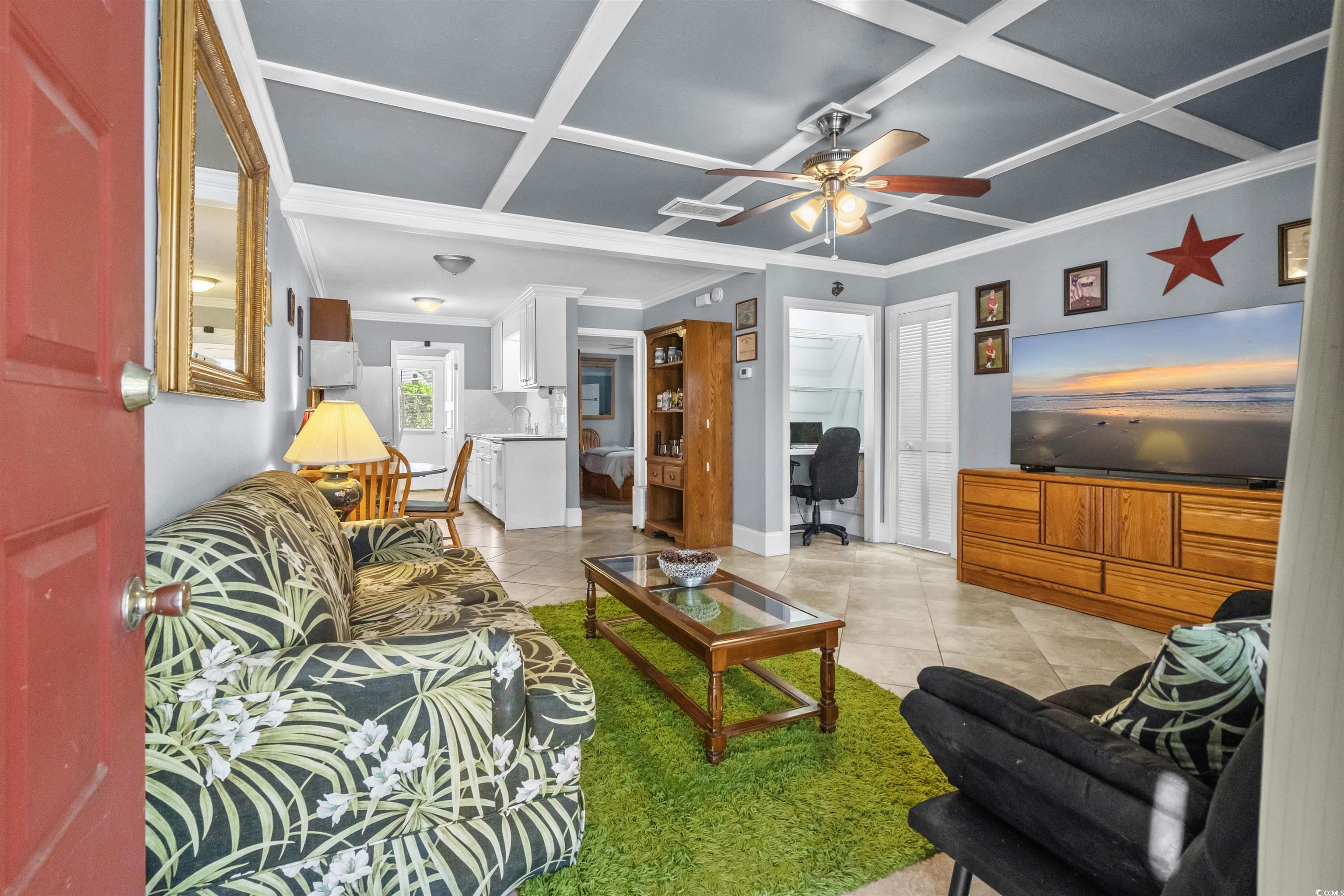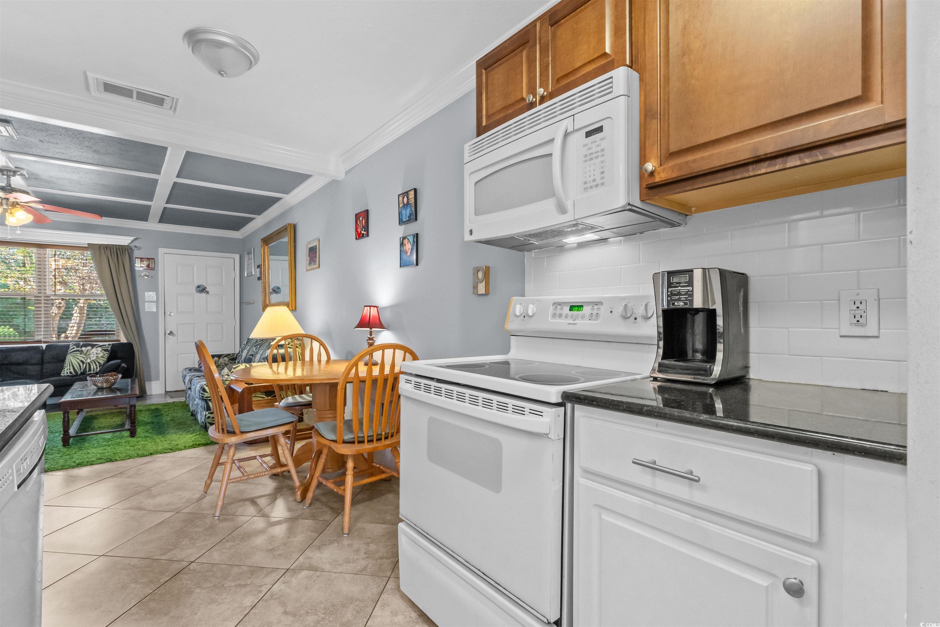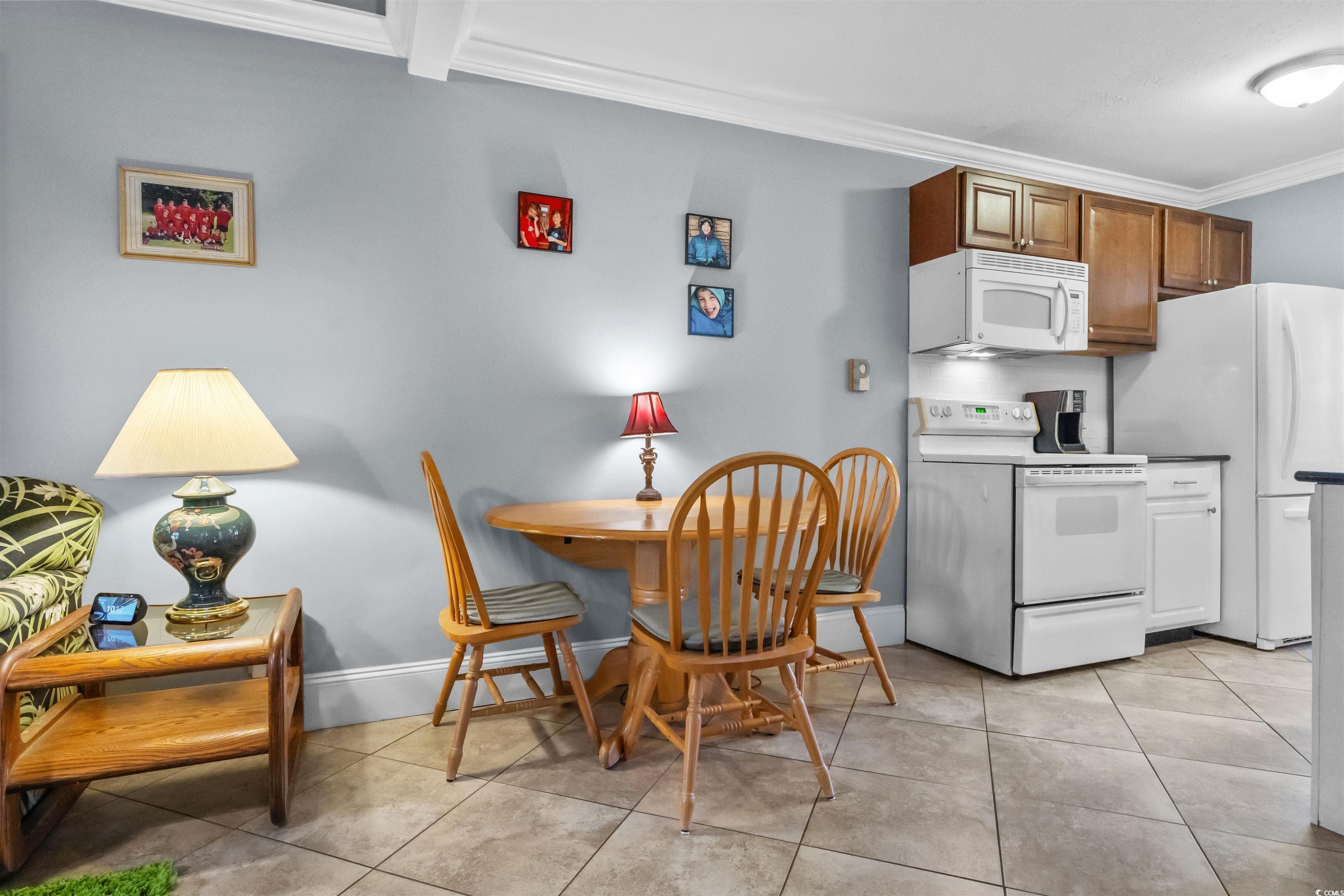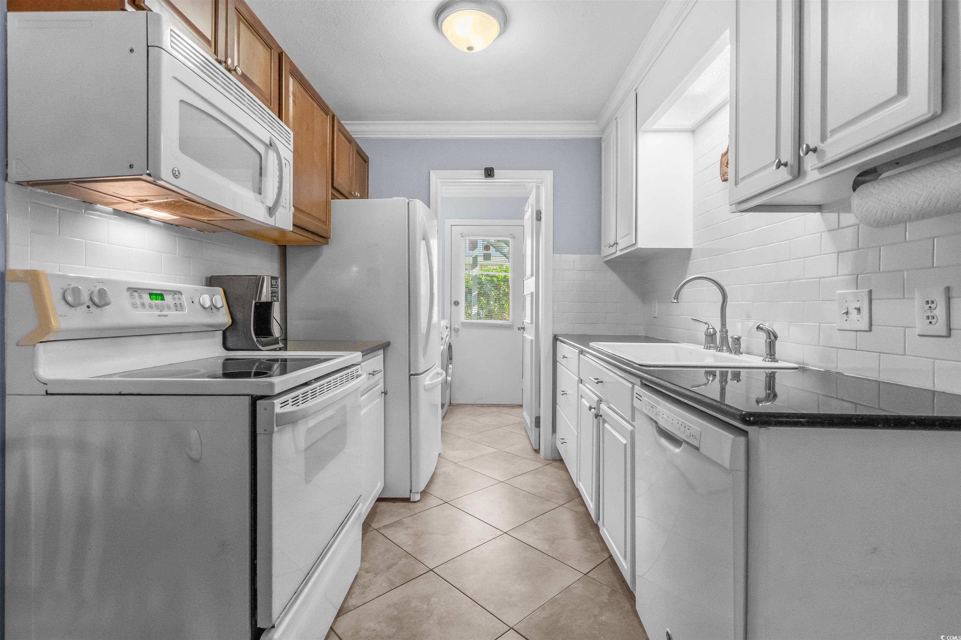 Welcome to this lovely 1-bedroom, 1-bathroom unit nestled in the Courtyard at Yardam community. Enjoy peaceful mornings on your inviting front porch, the perfect spot to sip coffee and start your day. Step inside to find tile flooring throughout for easy maintenance and a clean, modern look. The kitchen features granite countertops, a tiled backsplash, and ample cabinet space—ideal for storing all your cooking essentials. A dedicated laundry room includes overhead cabinets for additional storage, helping keep everything organized and making laundry day a breeze. This unit has a new Water Heater and fresh paint throughout. Also the exterior building insurance is included in the low HOA amount. Conveniently located in central Myrtle Beach, this unit is close to shopping, dining, entertainment, the airport, and just minutes from the beach. This unit offers comfort, style, and unbeatable accessibility!